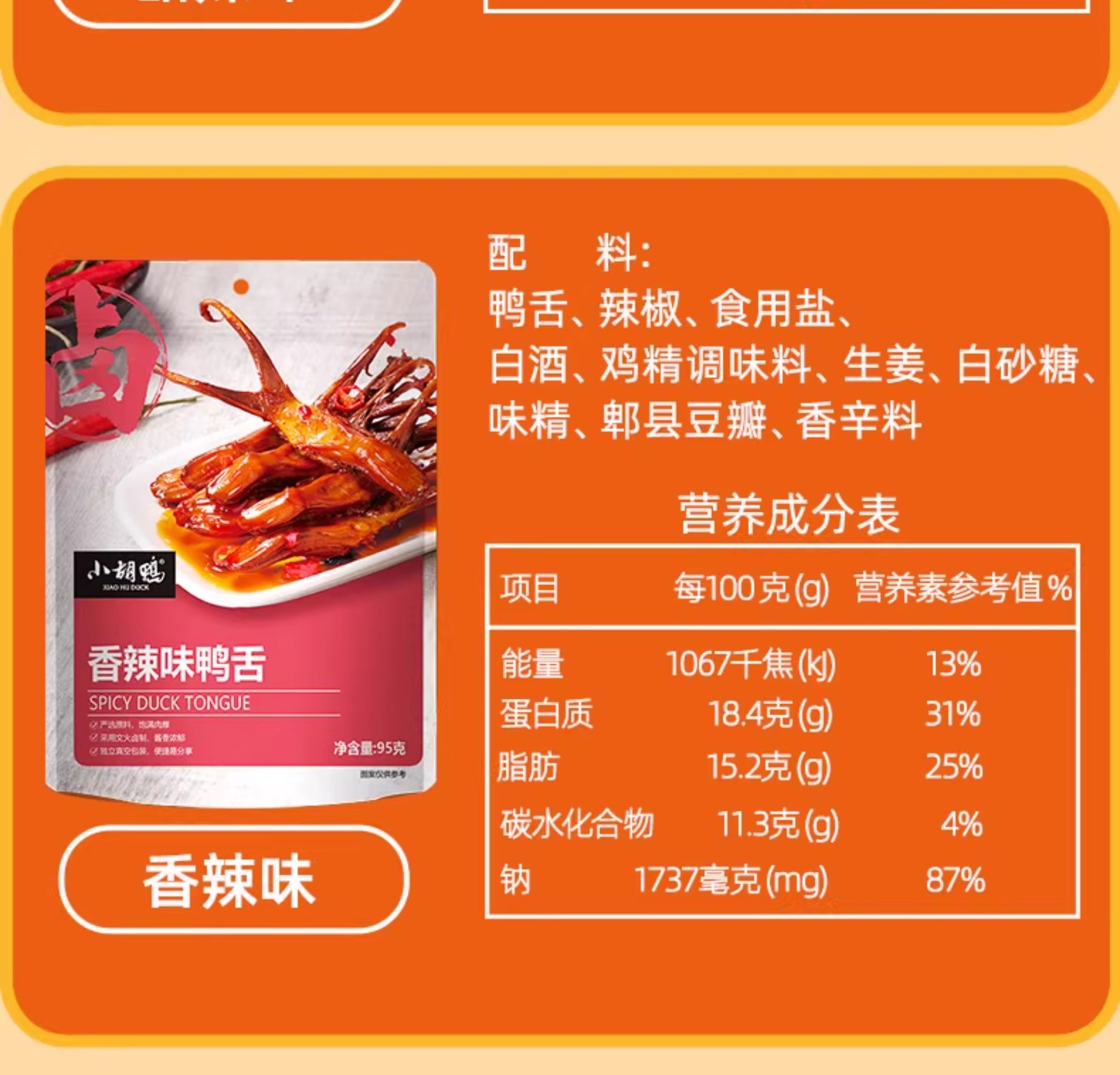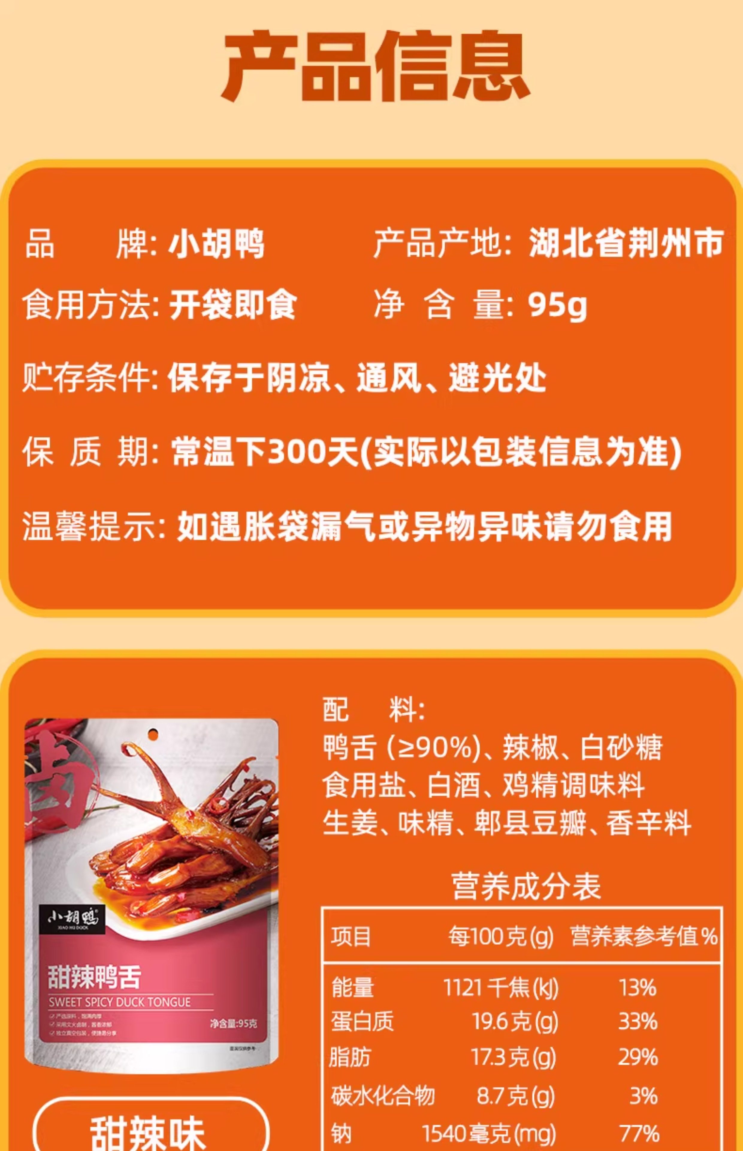 小胡鸭鸭舌甜辣卤味香辣小吃休闲熟食办公室追剧解馋夜宵