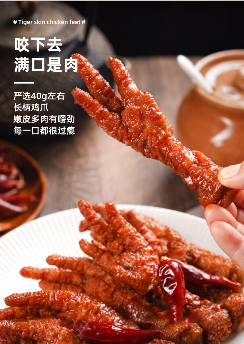 小胡鸭虎皮凤爪卤味小吃凤爪零食即食虎皮鸡爪休闲零食麻辣鸡爪