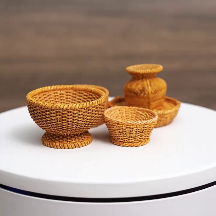 创意仿真藤编篮子竹编筐 diy装饰品配件迷你拍摄造景收纳框小摆件