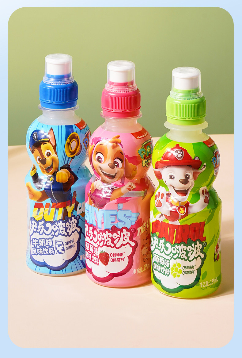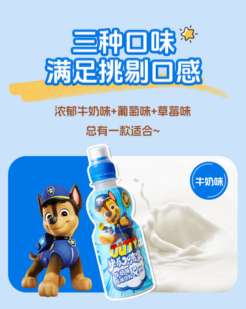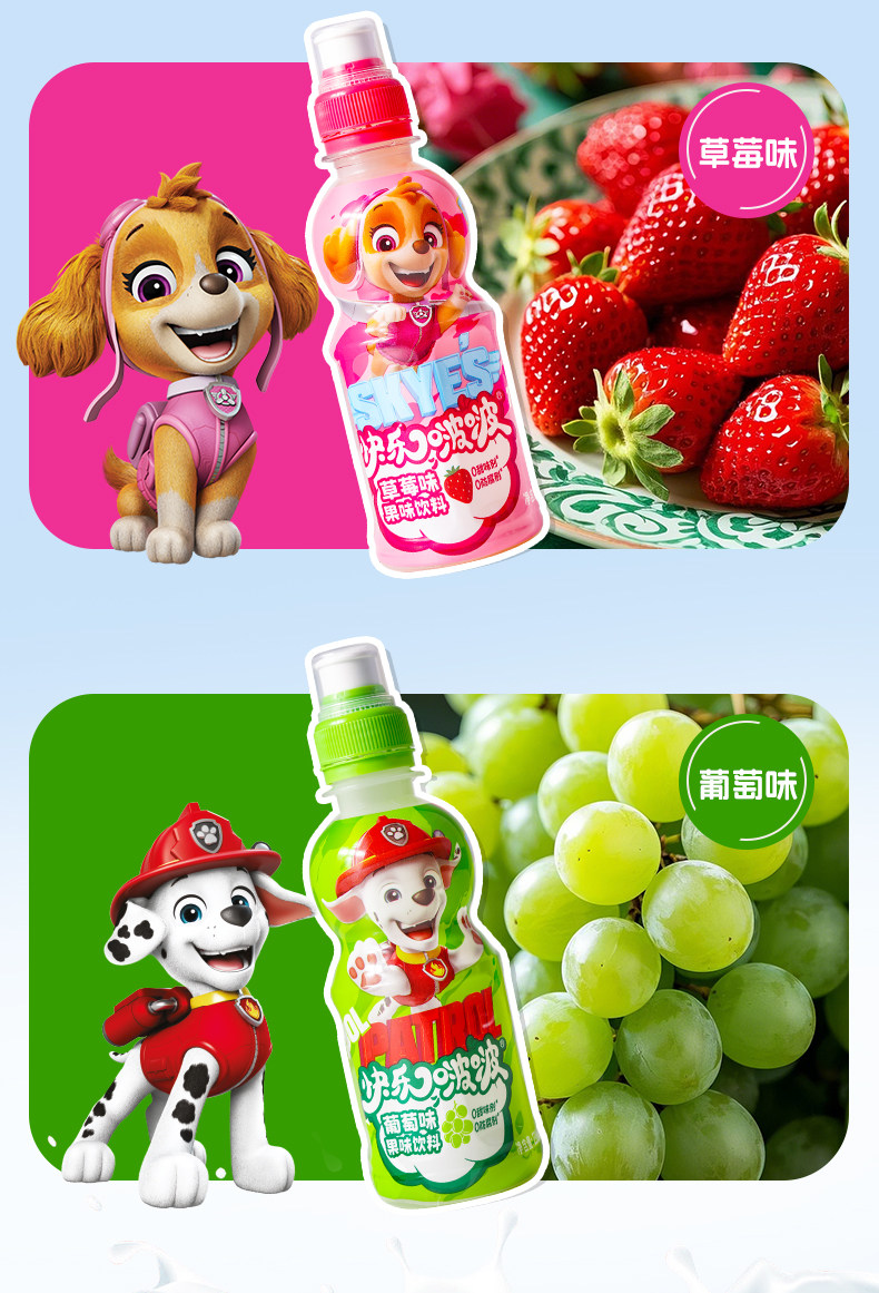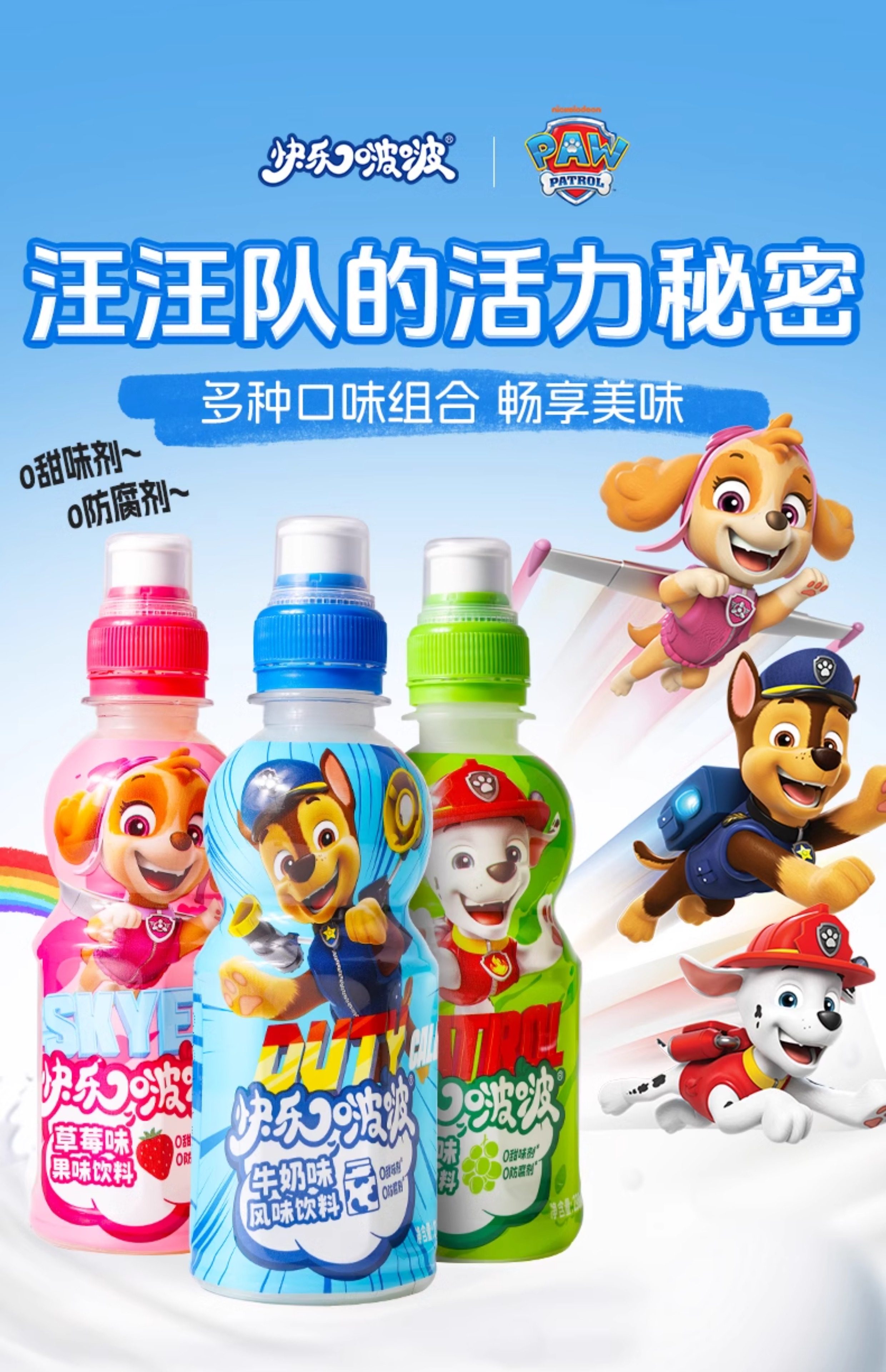 快乐啵啵果味儿童饮料235ml草莓味葡萄味牛奶味汪汪队组合口味