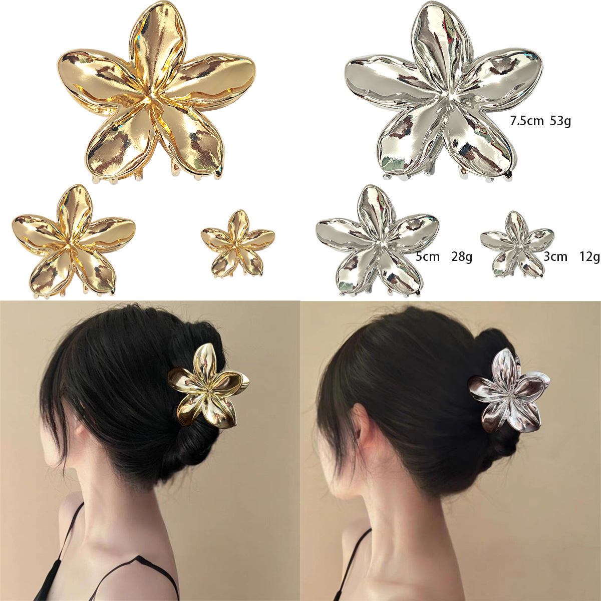 亚马逊跨境发夹电镀亮面合金抓夹百搭发夹半扎马尾盘抓夹女