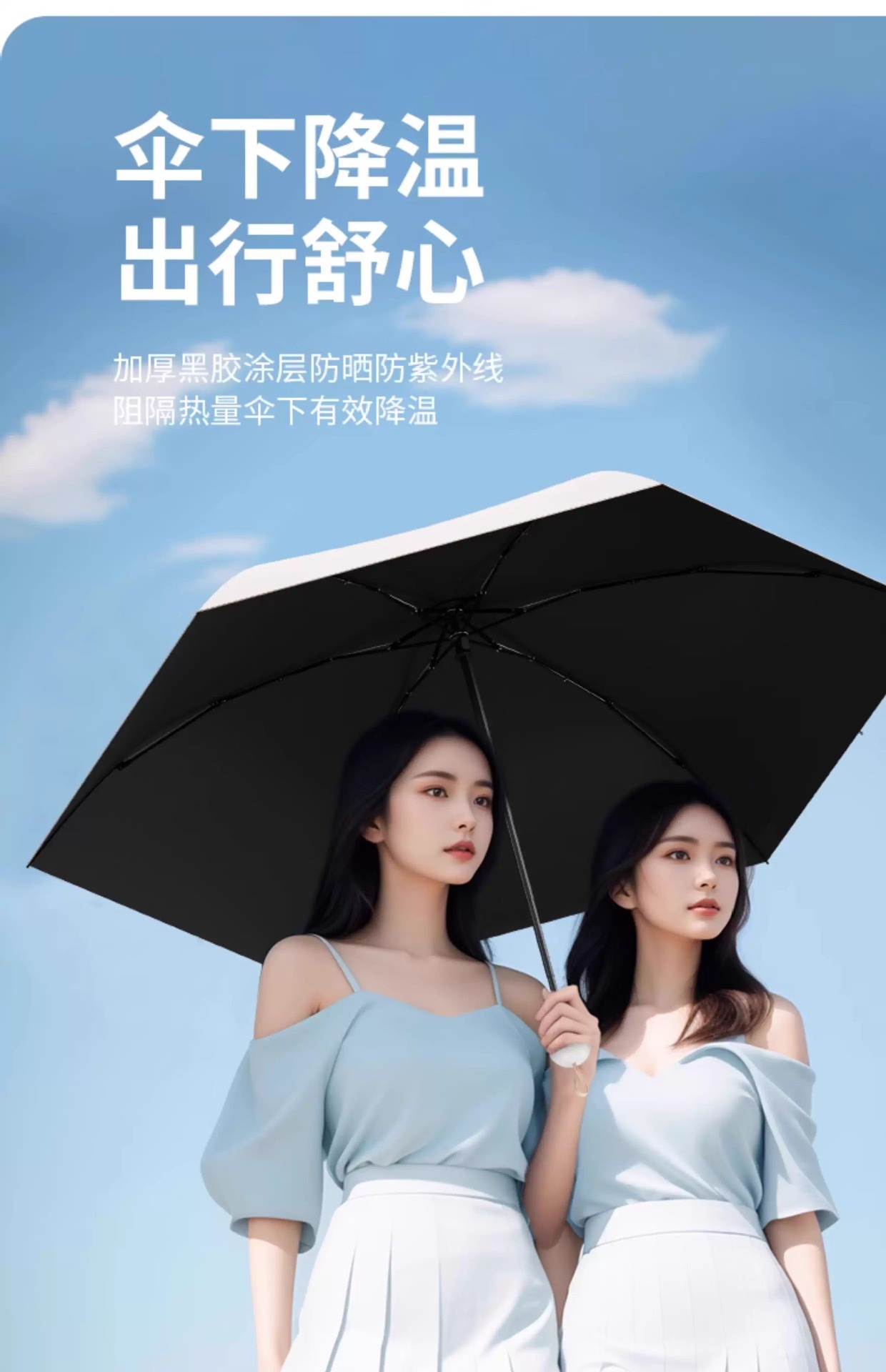伞小巧便携晴雨两用遮阳伞女防晒伞防紫外线五折伞户外黑胶太阳伞