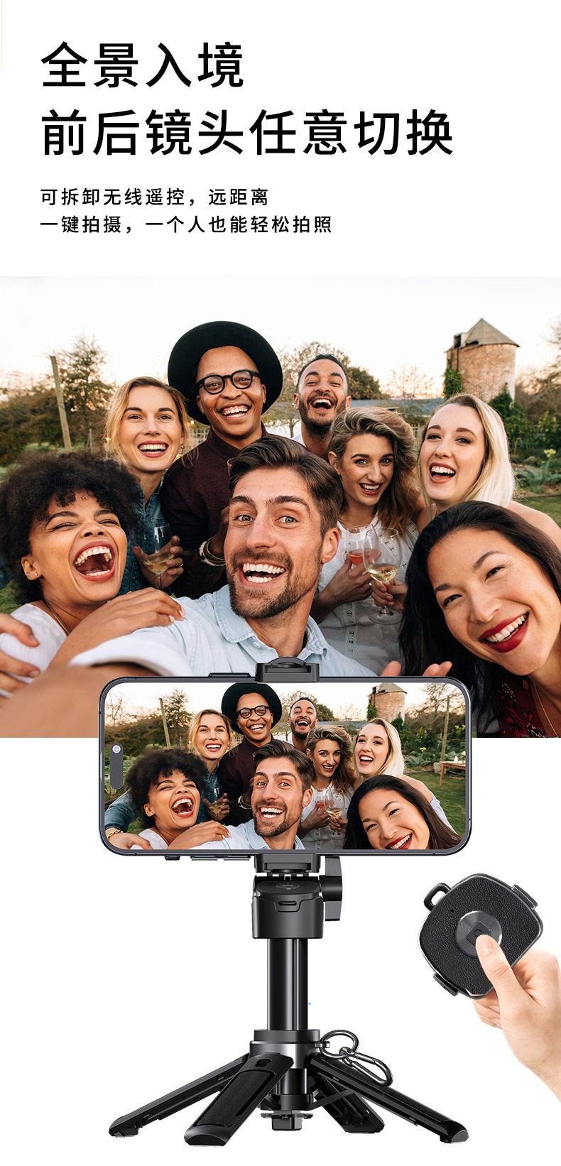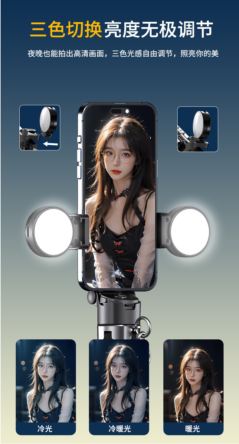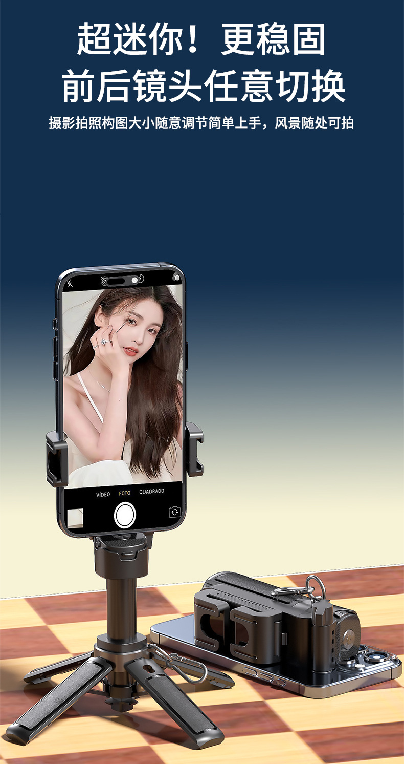 变焦迷你自拍杆四脚架手机助推器手机自拍杆支架三脚架铝合金充电