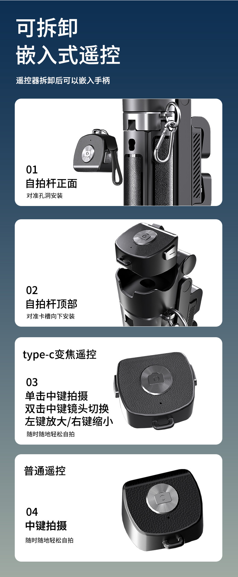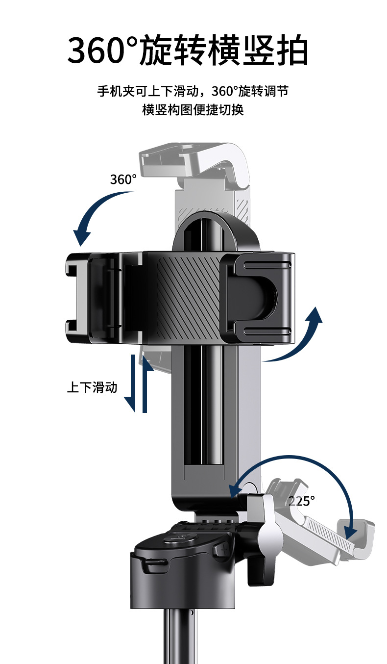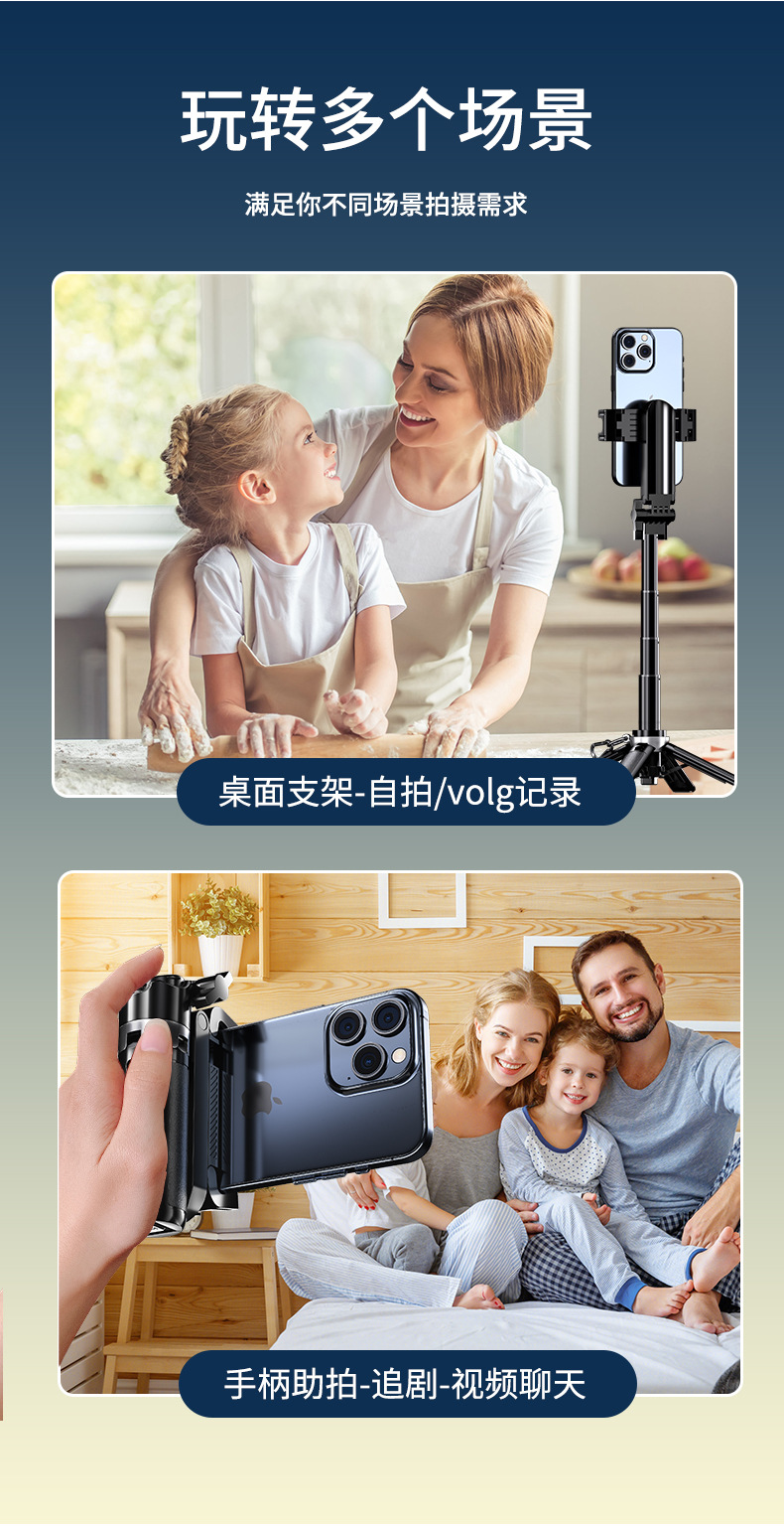变焦迷你自拍杆四脚架手机助推器手机自拍杆支架三脚架铝合金充电