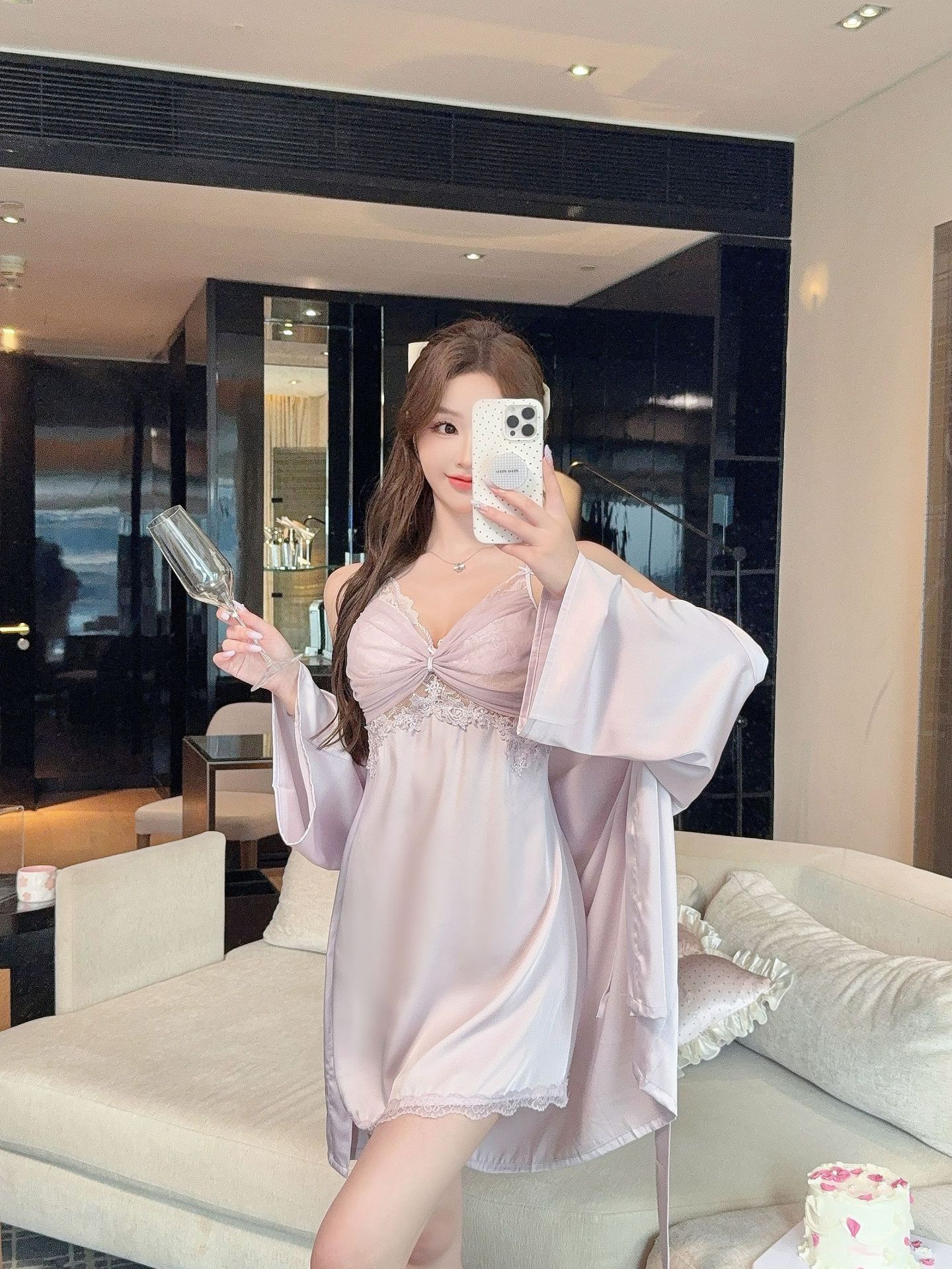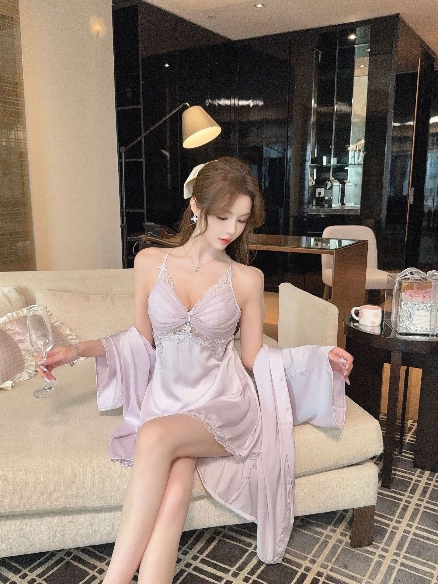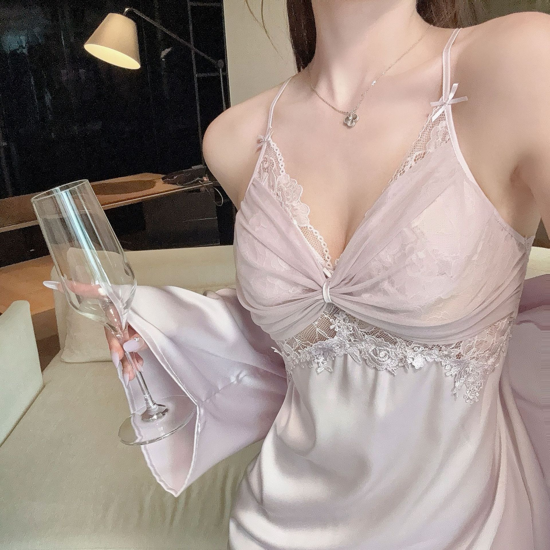 性感吊带睡衣女冰丝带胸垫纯欲风2025新款蕾丝睡裙两件套家居服