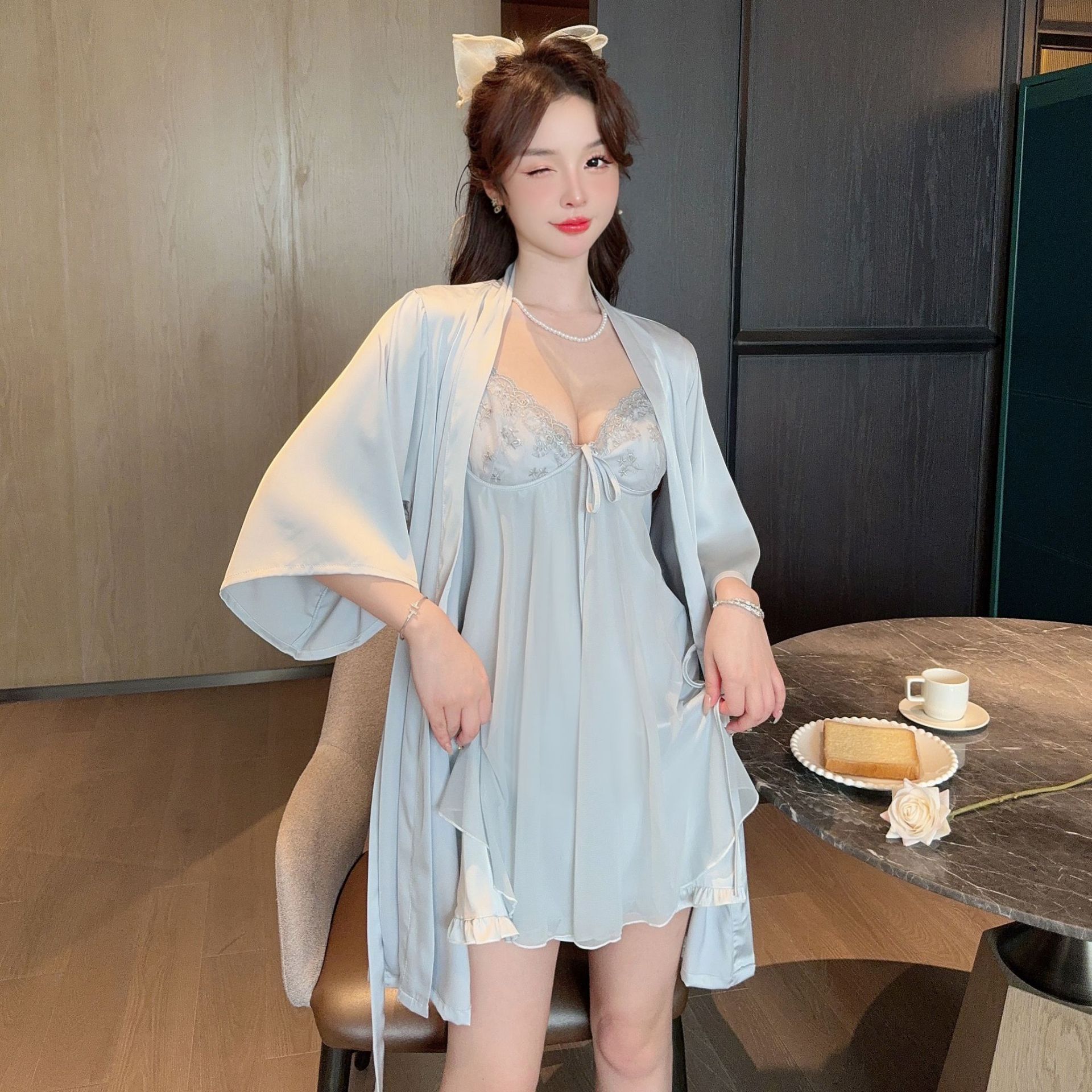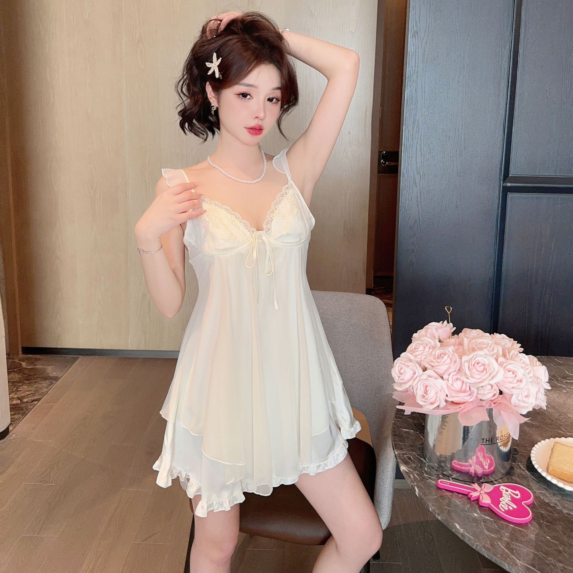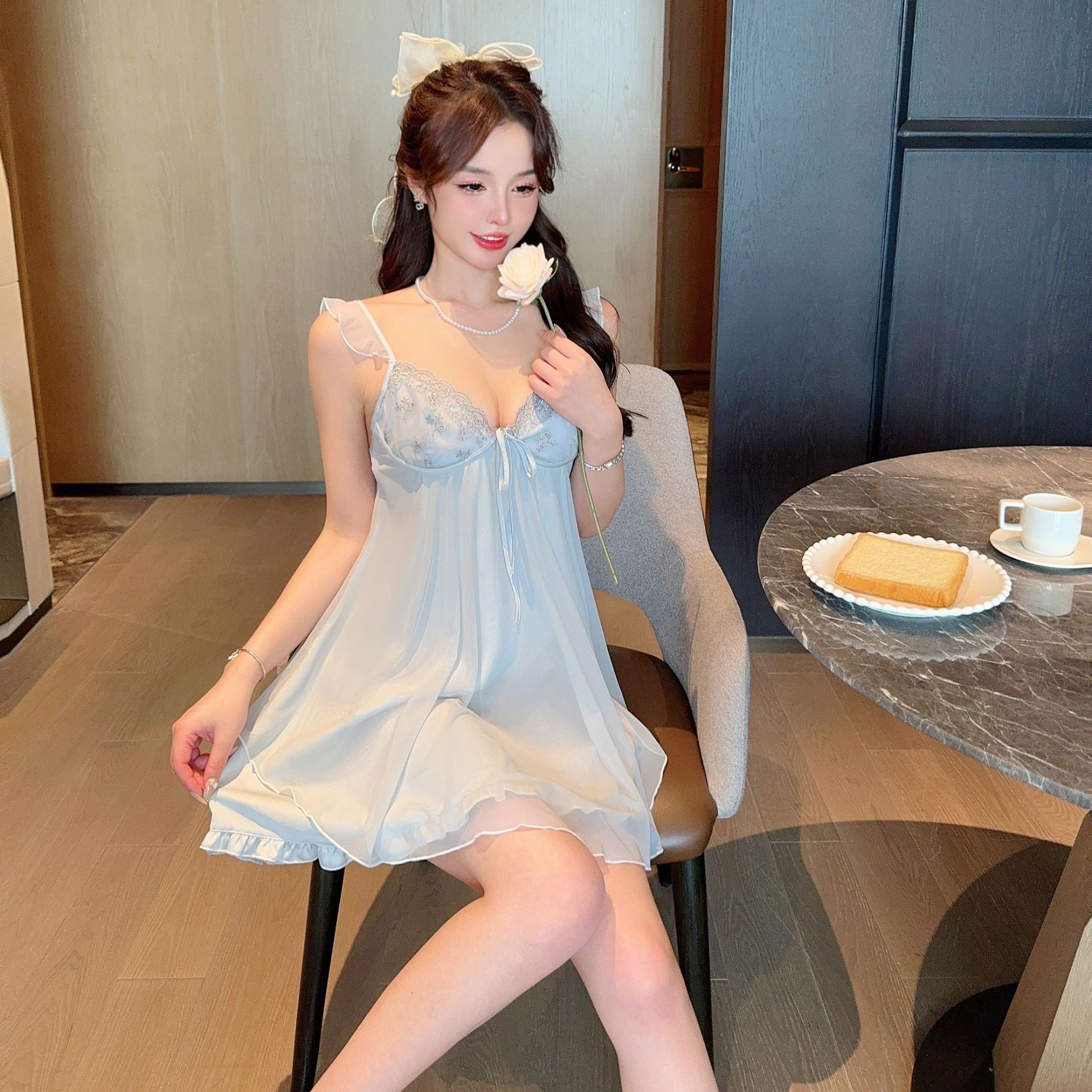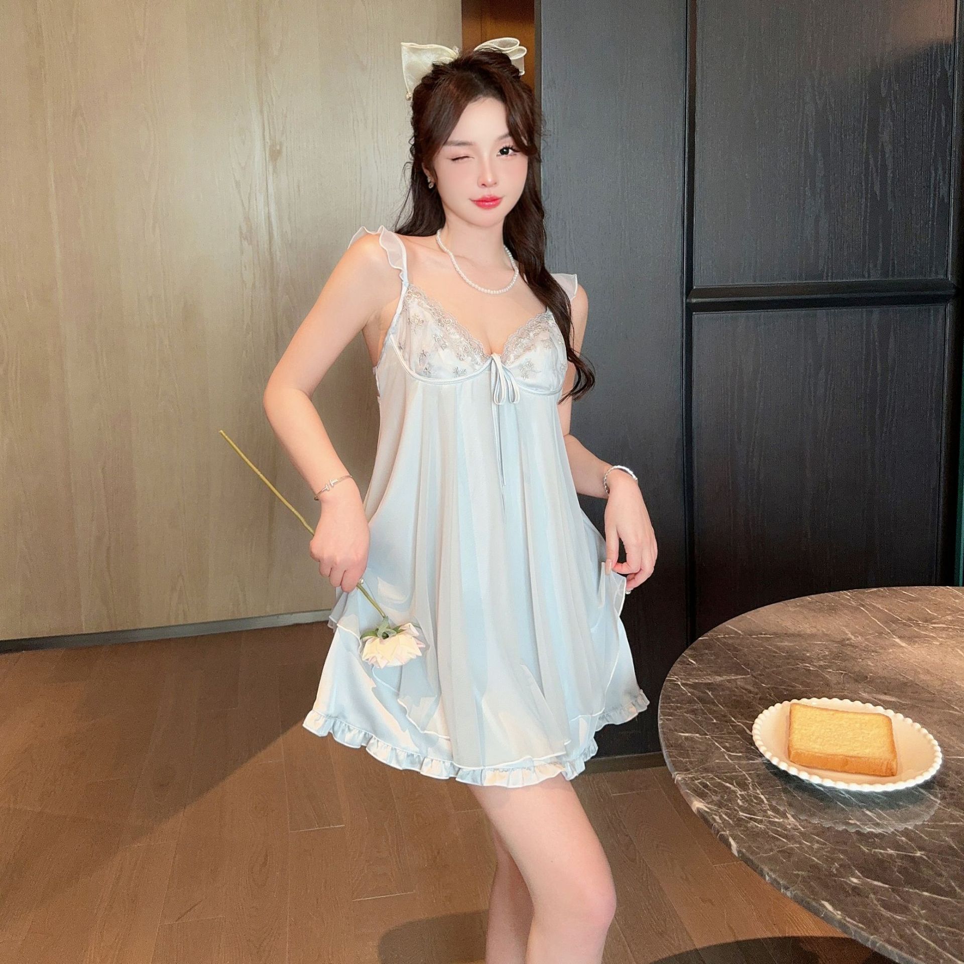 性感睡衣女冰丝2025新款带胸垫吊带睡裙美背网纱蕾丝纯欲风家居服