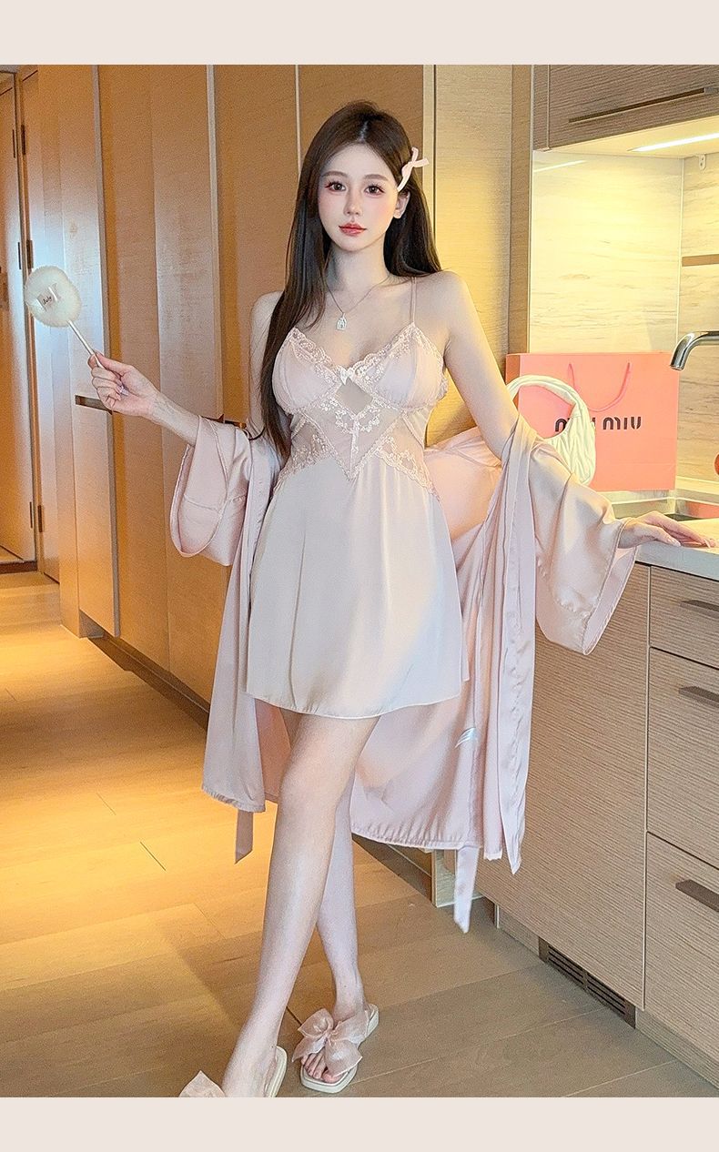 性感睡衣女冰丝吊带睡裙夏季2025新款纯欲风高级美背蕾丝家居服