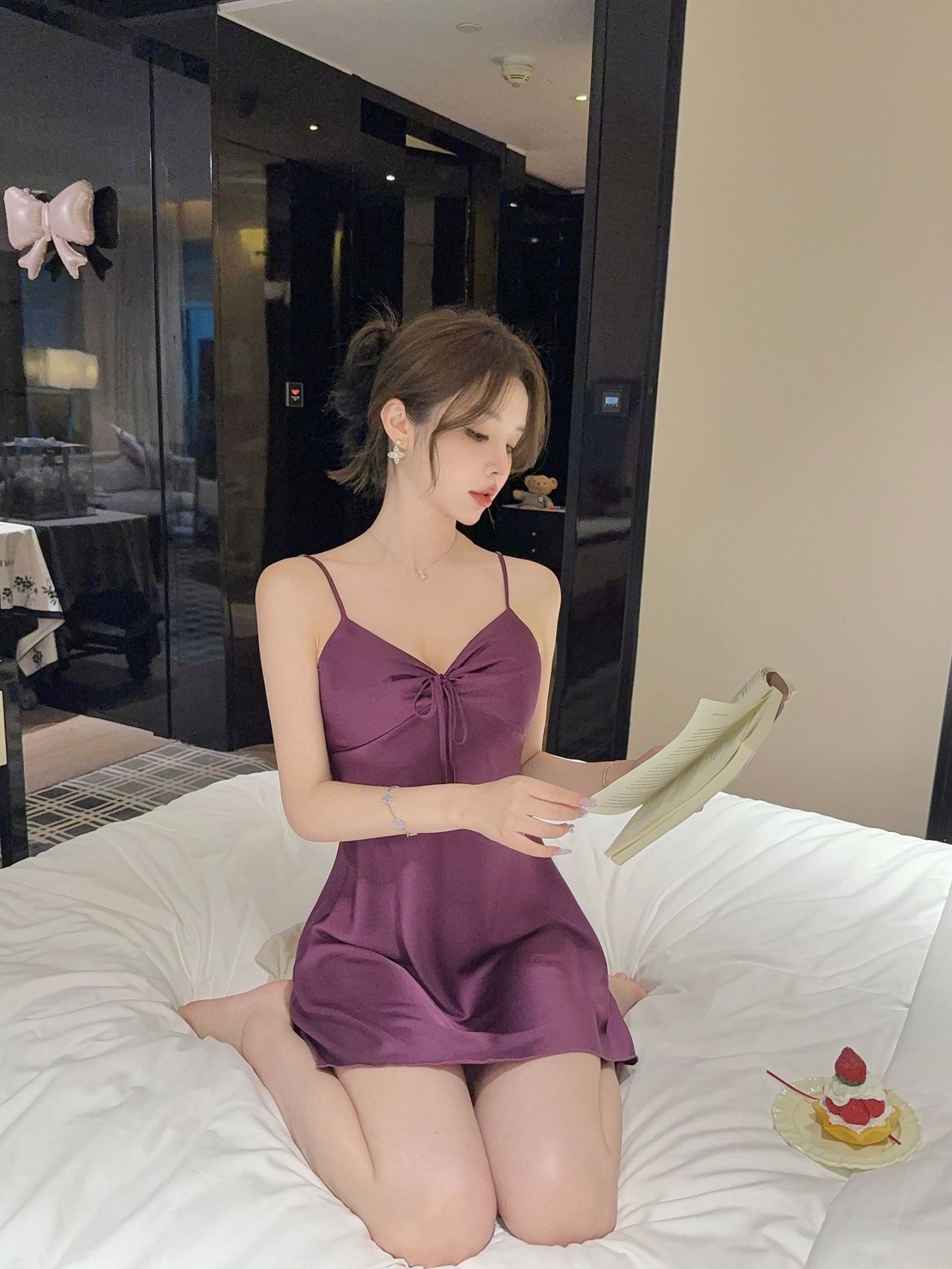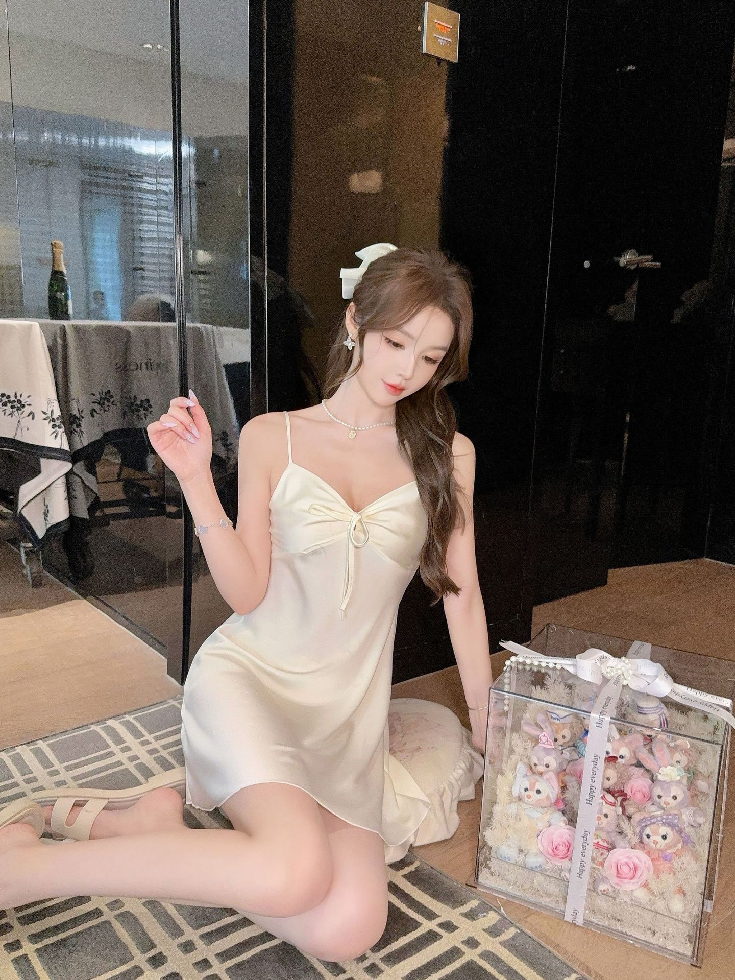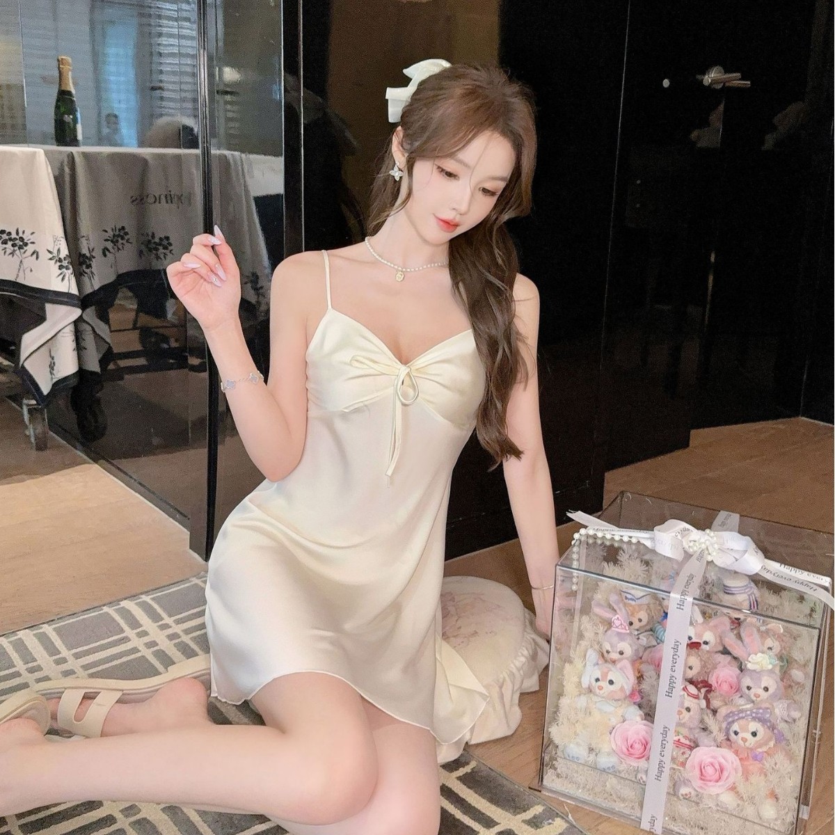 性感睡衣女冰丝纯欲风蝴蝶结吊带睡裙带胸垫2025新款家居服可跨境