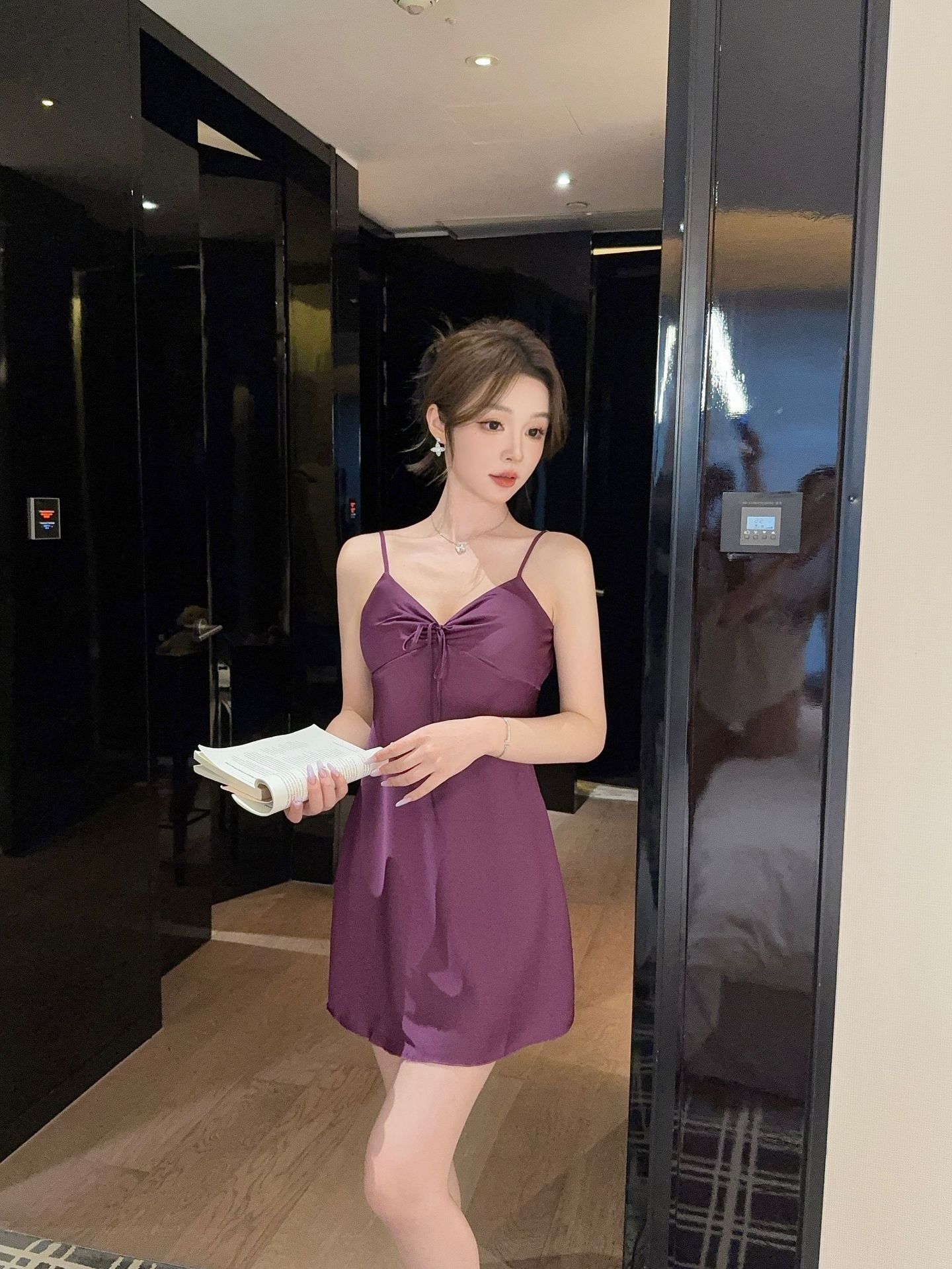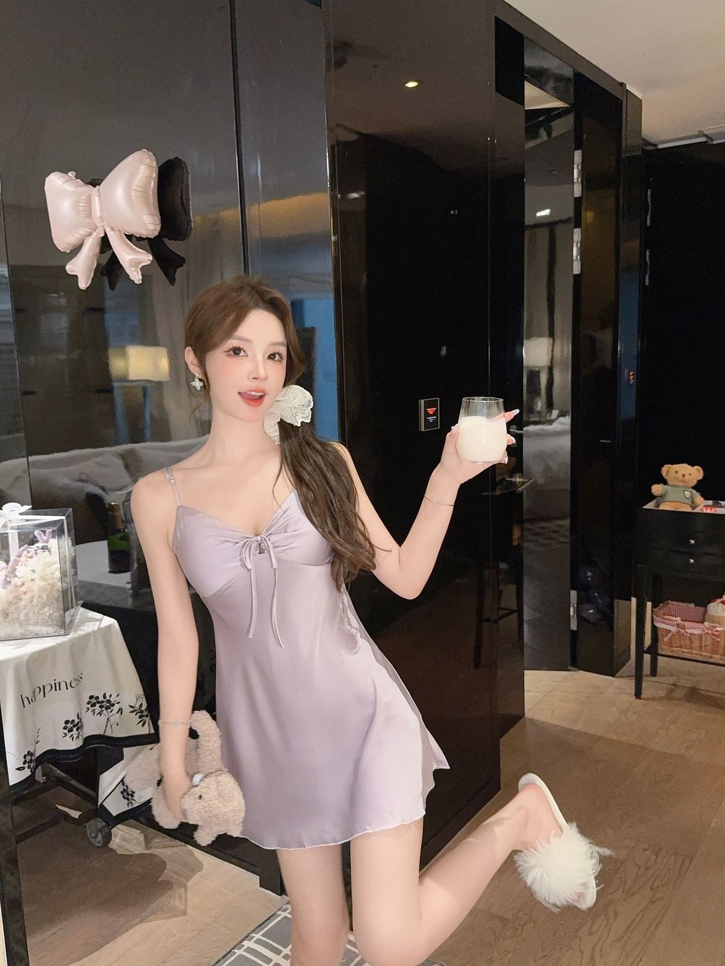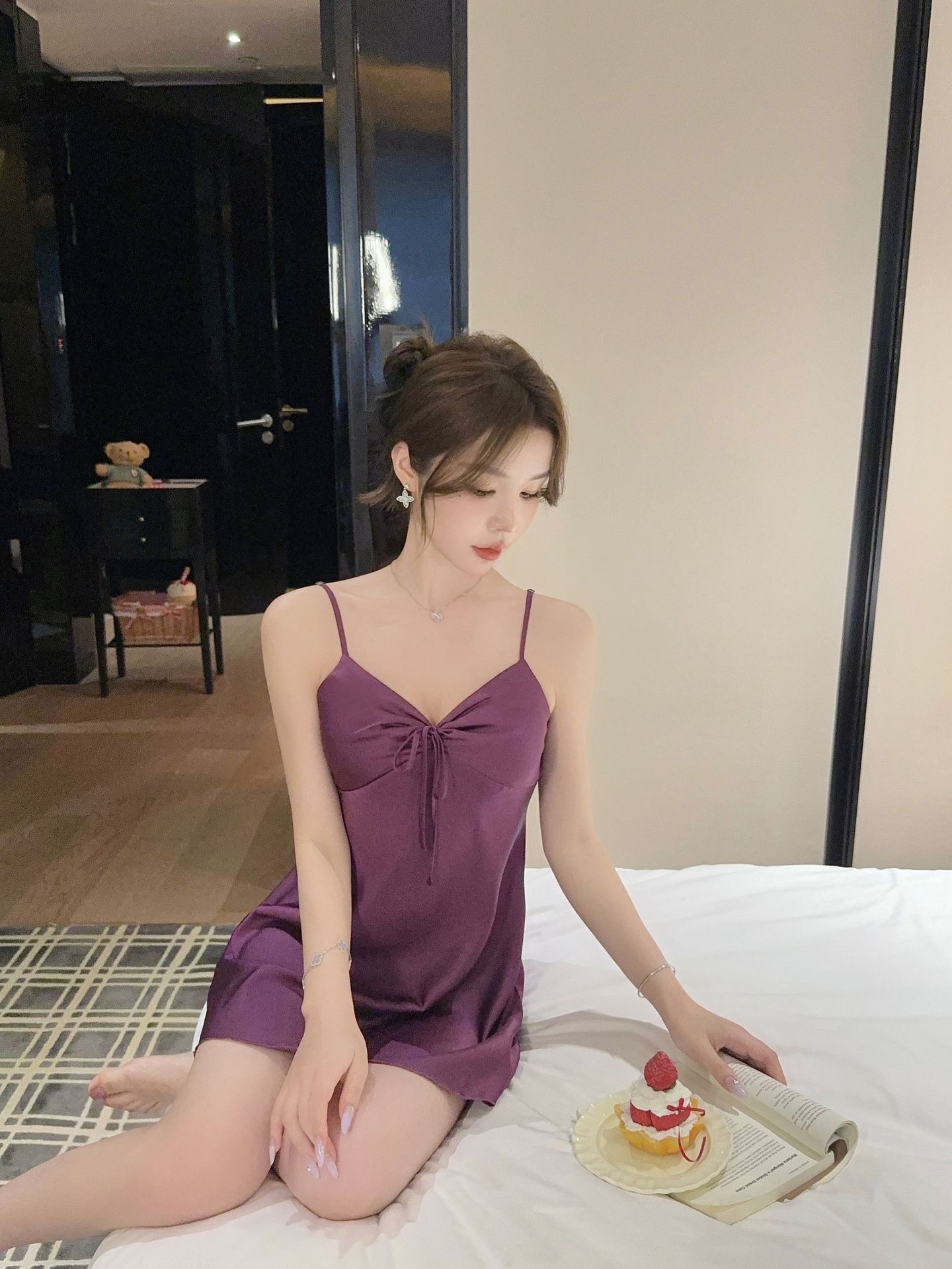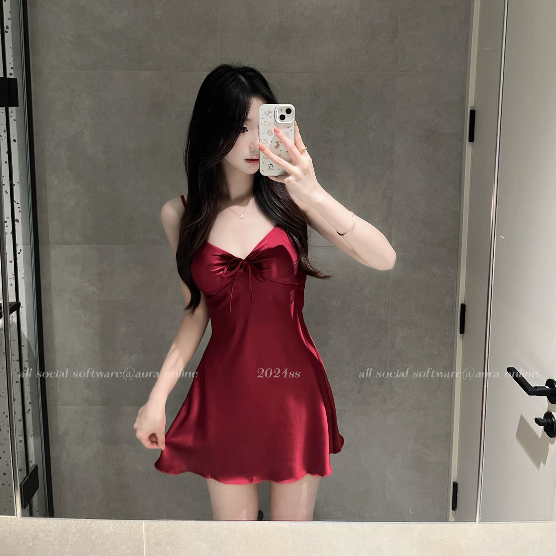 性感睡衣女冰丝纯欲风蝴蝶结吊带睡裙带胸垫2025新款家居服可跨境