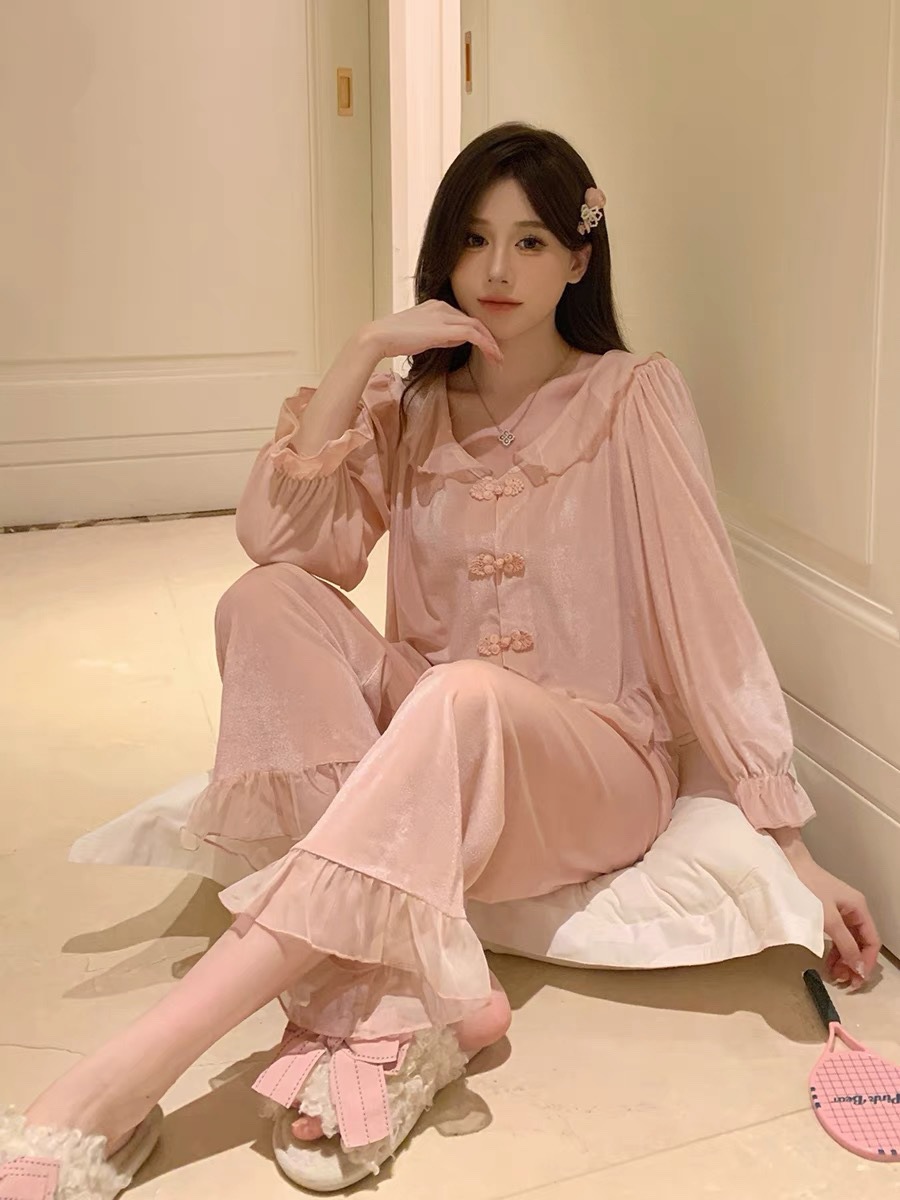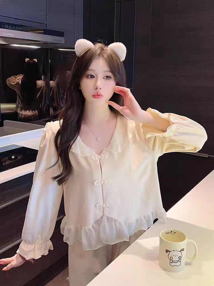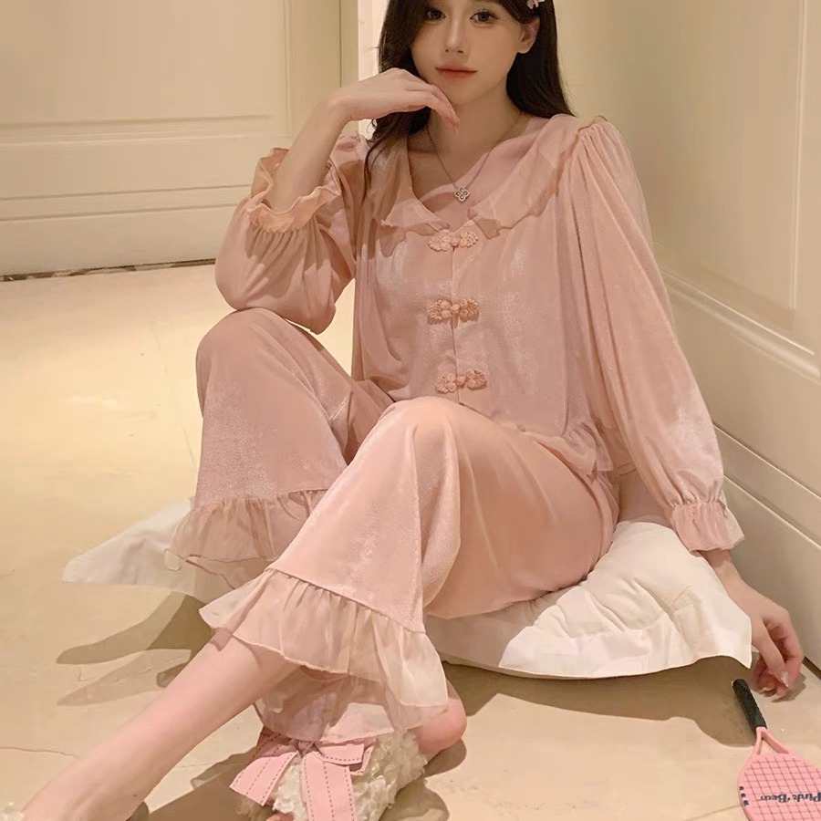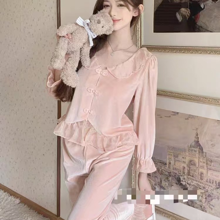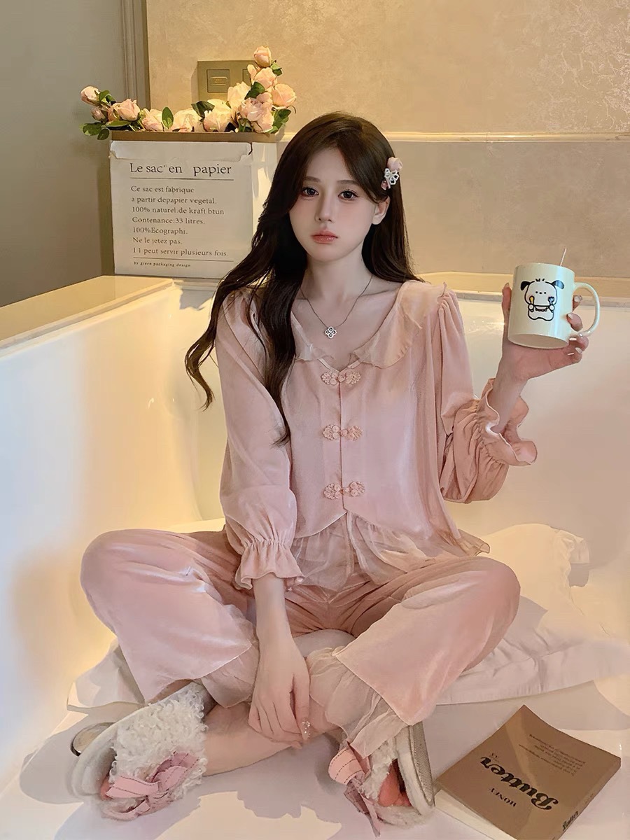 2024秋季新款睡衣女士金丝绒长袖开衫国风新中式纯欲家居服可外穿