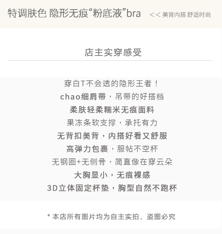 隐形无痕粉底液内衣白T不透细肩带收副乳防下垂美背运动文胸女