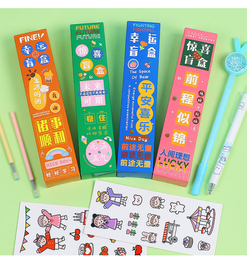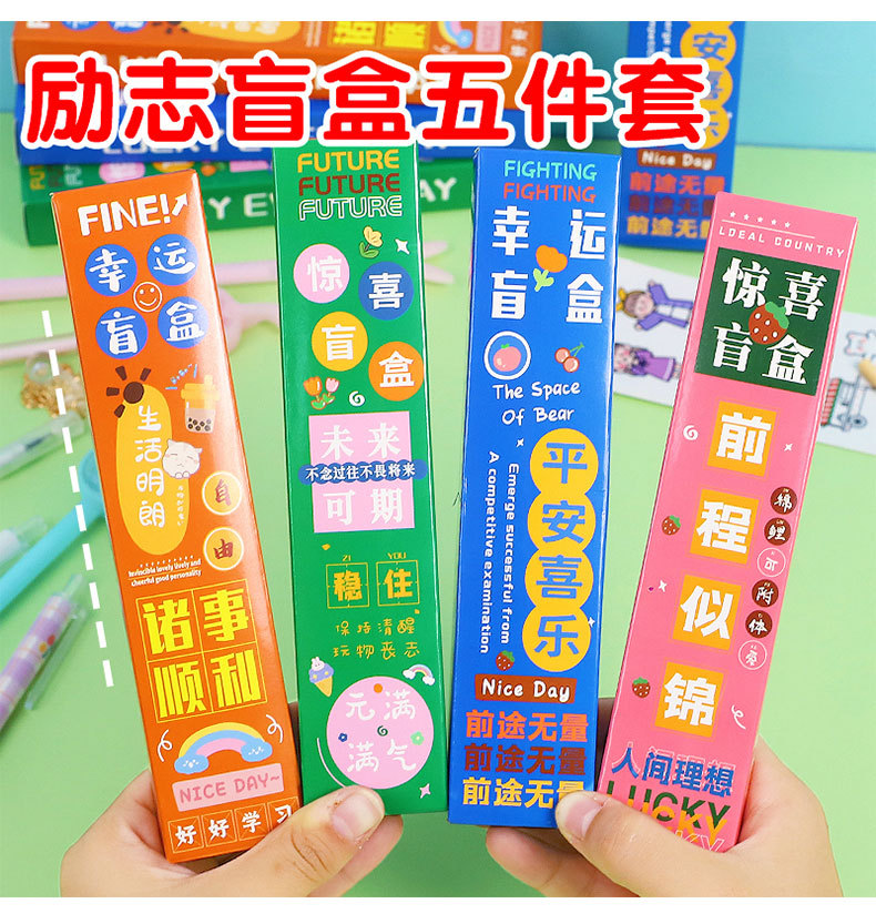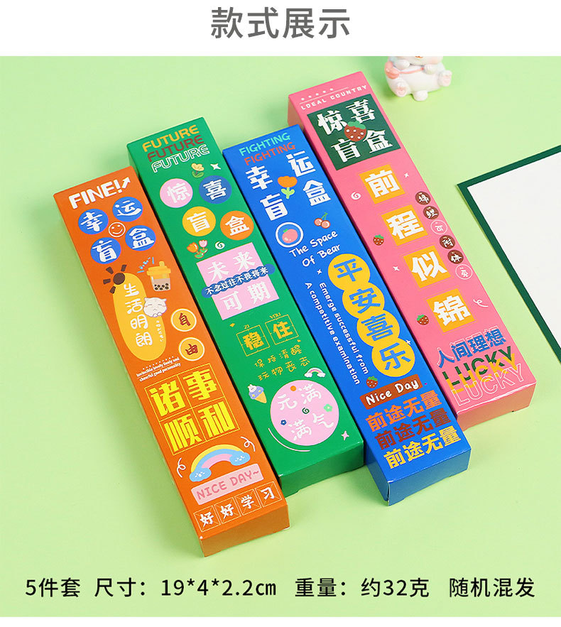 励志文字五件套盲盒笔 小学生中性笔幸运盒子卡通签字笔文具套装