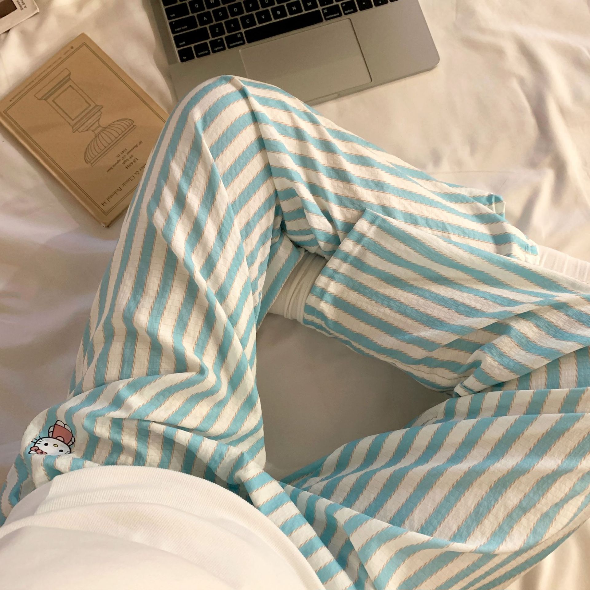 网红遛弯睡裤女长裤ins风甜美少女学生宿舍显瘦阔腿可外穿家居裤