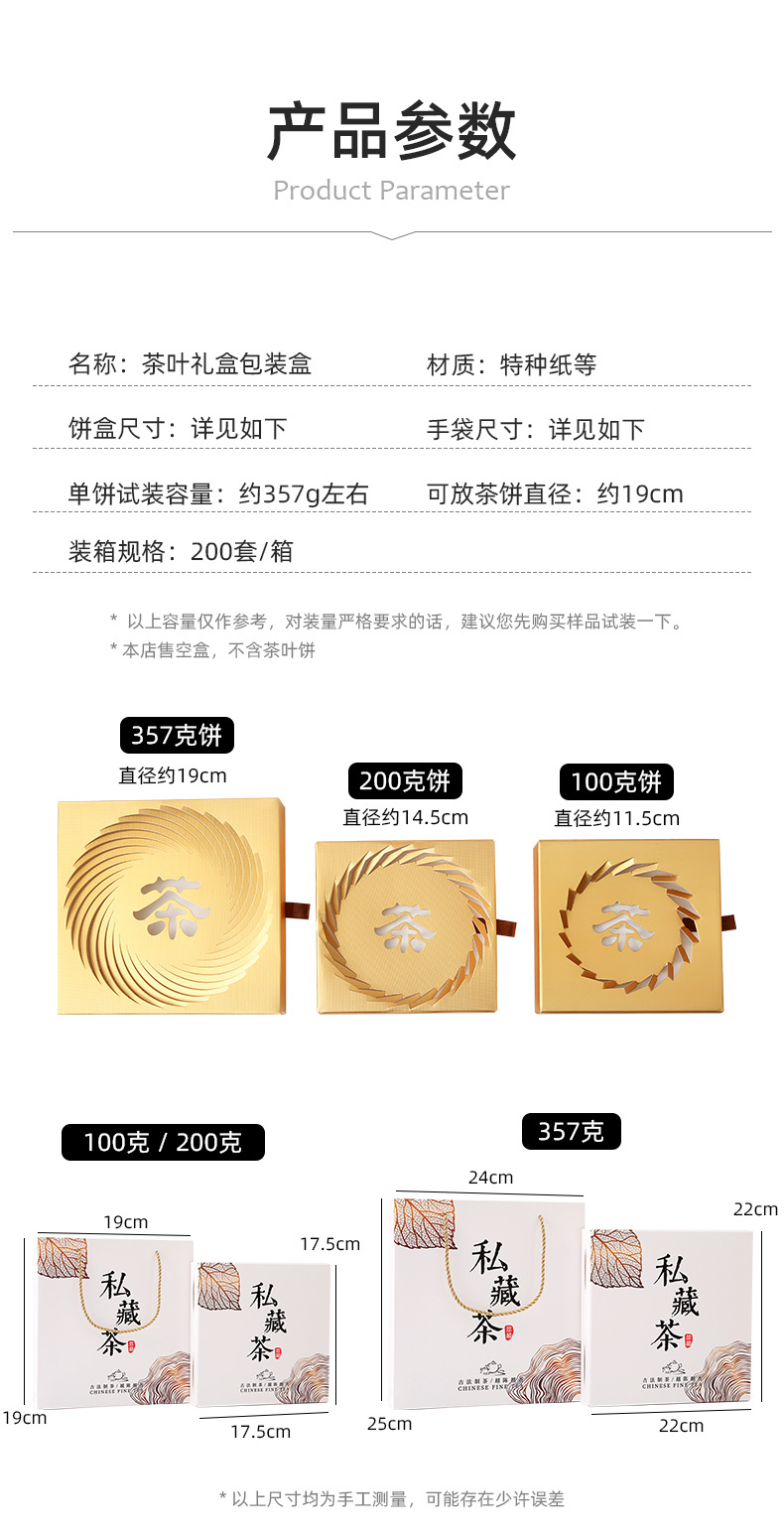 现货通用简易普洱茶茶叶礼盒200克357克私藏茶福鼎白茶饼包装盒