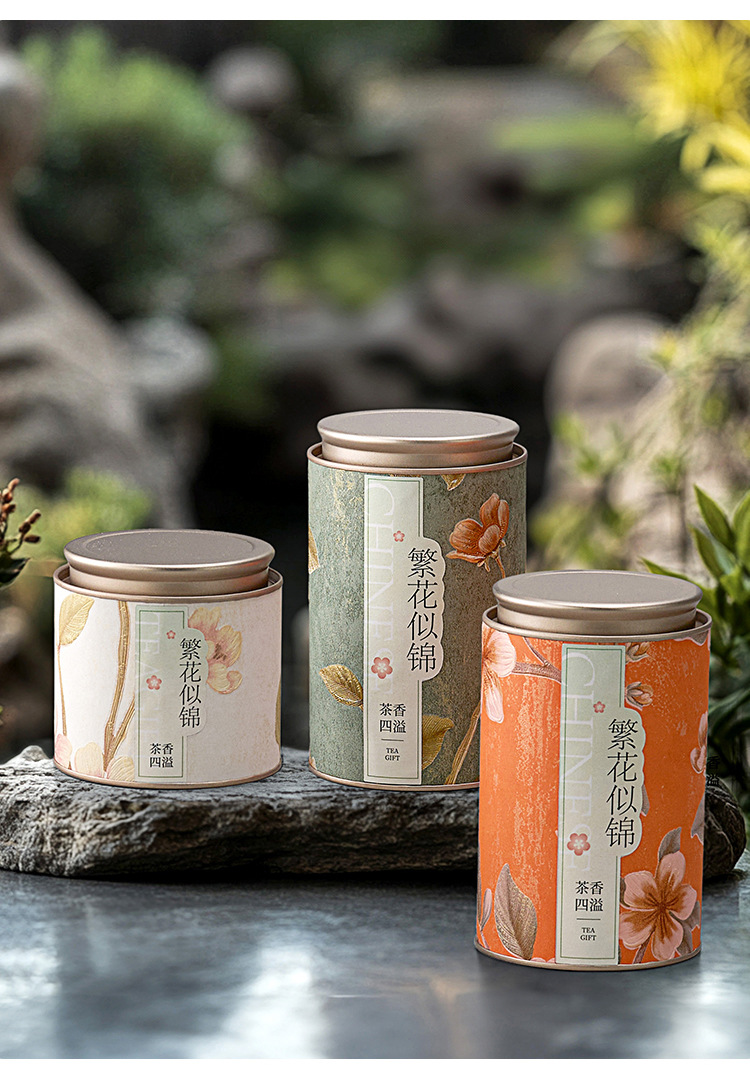 新款小号50克二两装茶叶罐圆形密封纸罐茶叶罐红茶绿茶茶叶包装盒