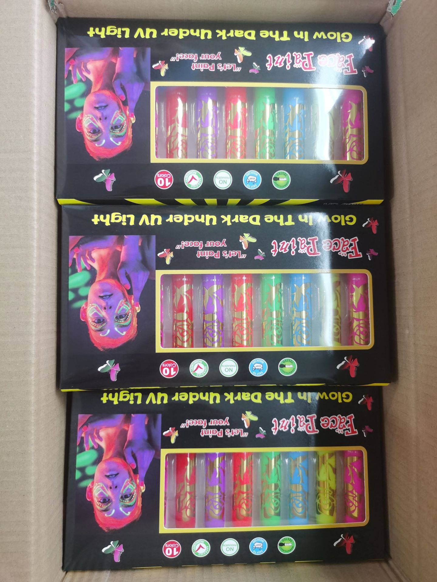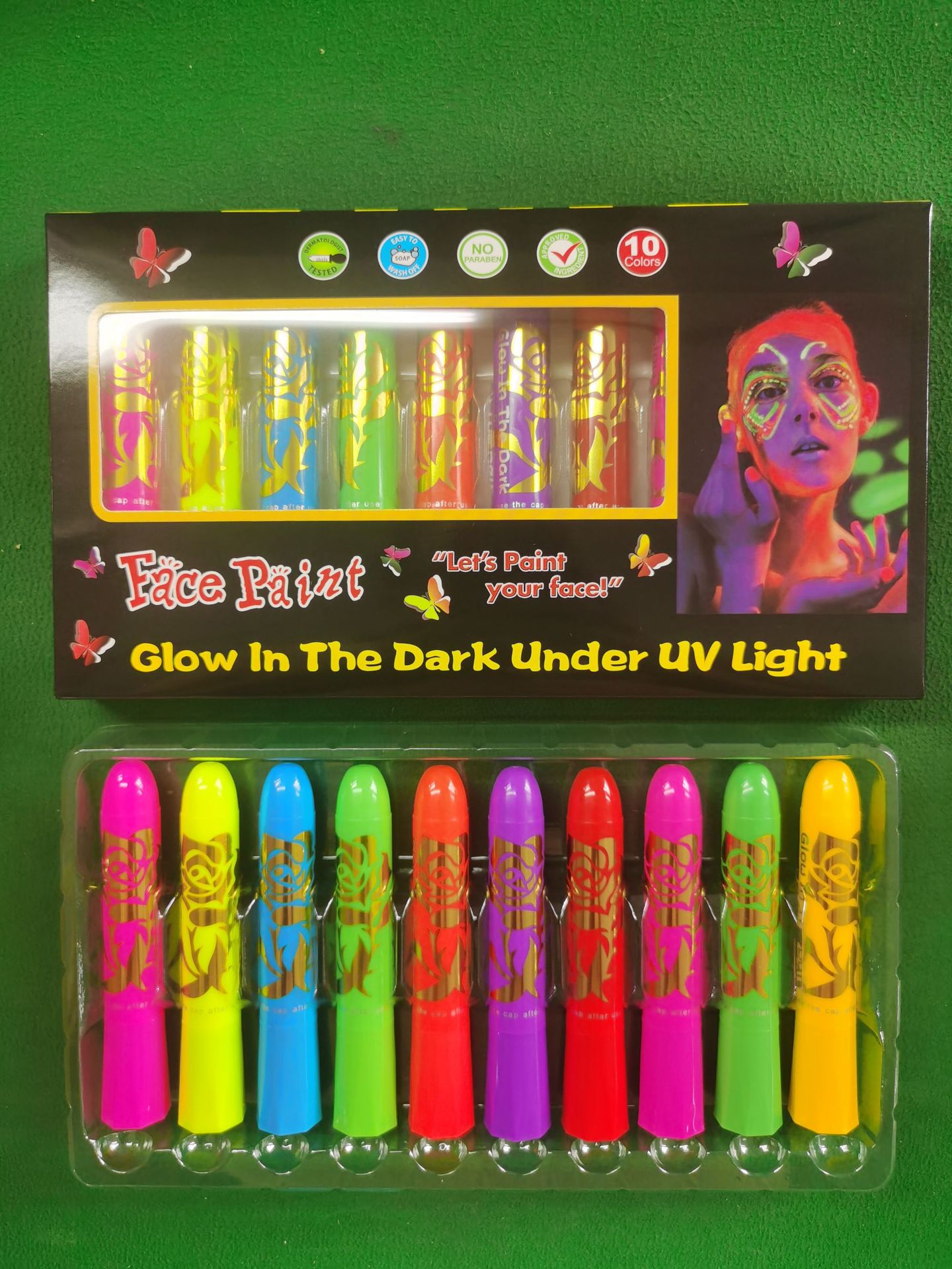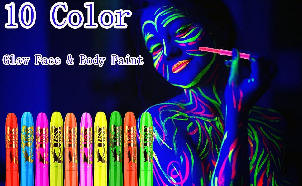 10色夜光脸彩人体彩绘面部彩绘万圣节水性蜡笔节日化妆颜料跨境