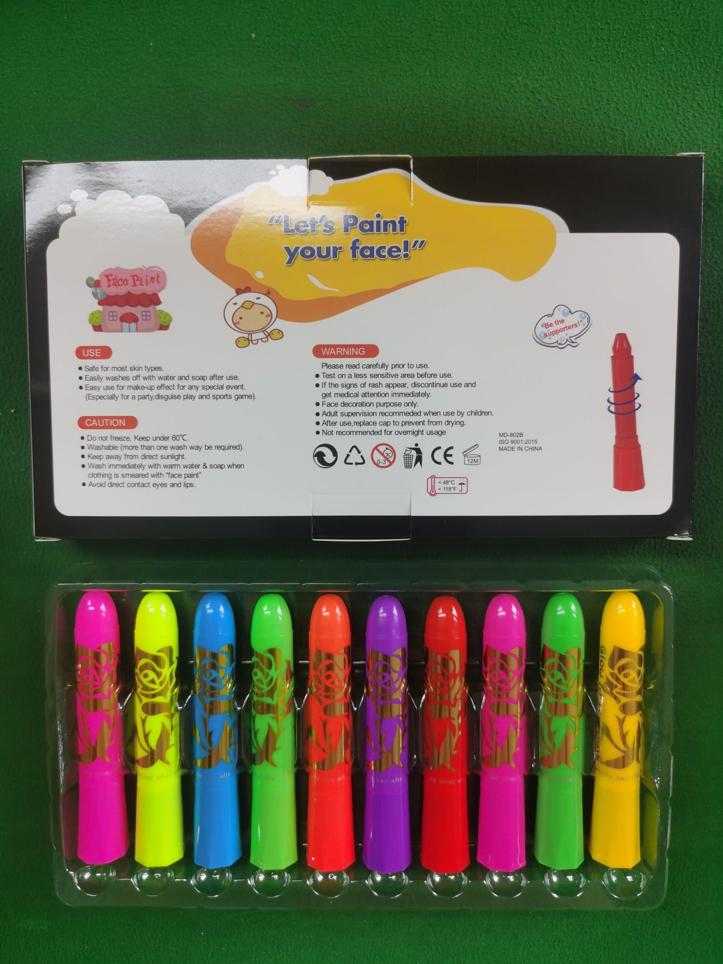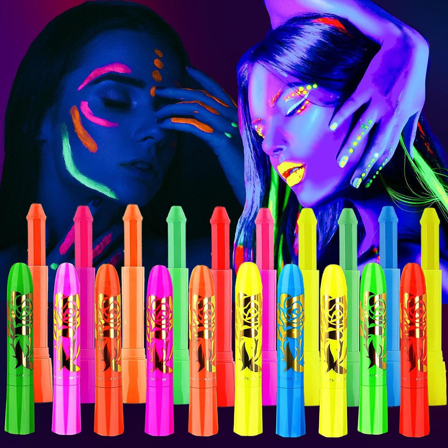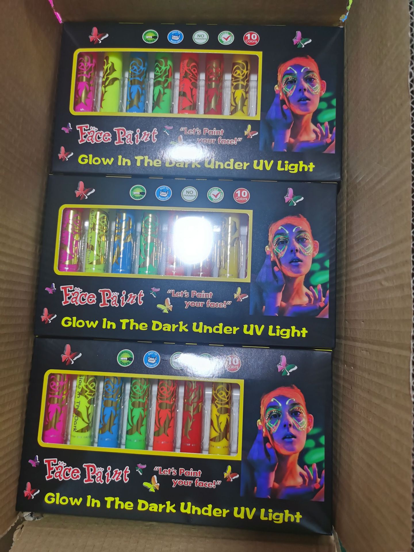 10色夜光脸彩人体彩绘面部彩绘万圣节水性蜡笔节日化妆颜料跨境