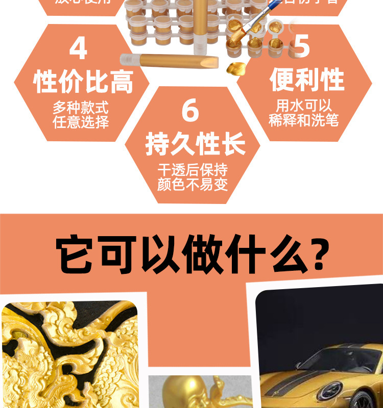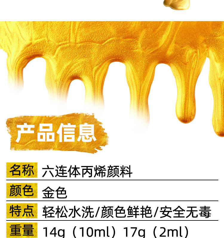 金色丙烯10ml金色3d立体勾线笔diy手绘描边防水金属绘画丙烯颜料