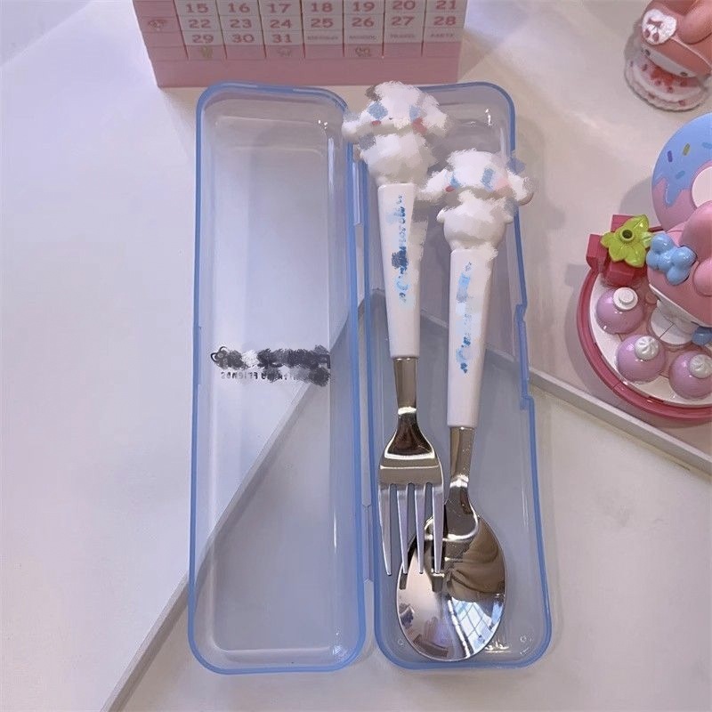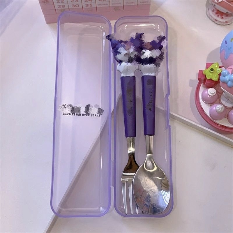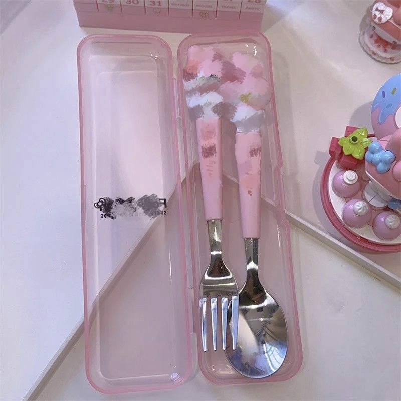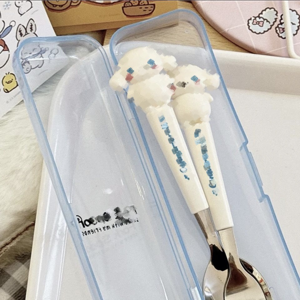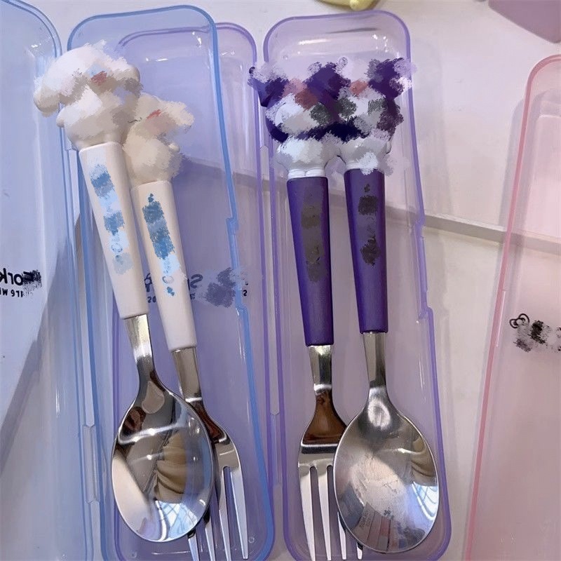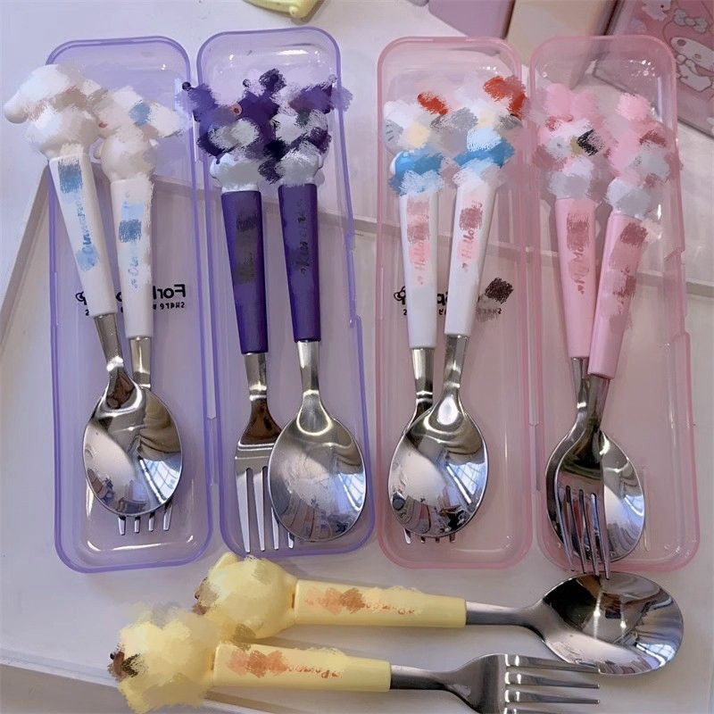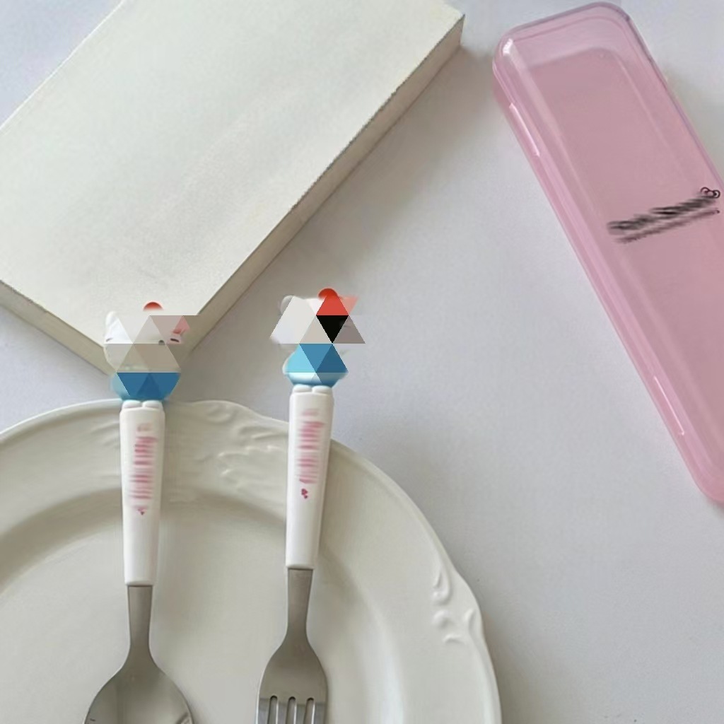 不锈钢便携餐具套装可爱卡通儿童餐具学生户外旅行勺子叉子两件套