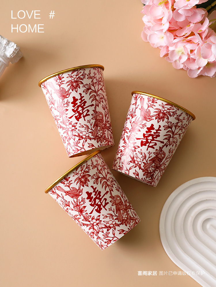 结婚金箔杯一次性纸杯敬茶敬酒婚礼宴席加厚喜杯子高级感婚庆用品