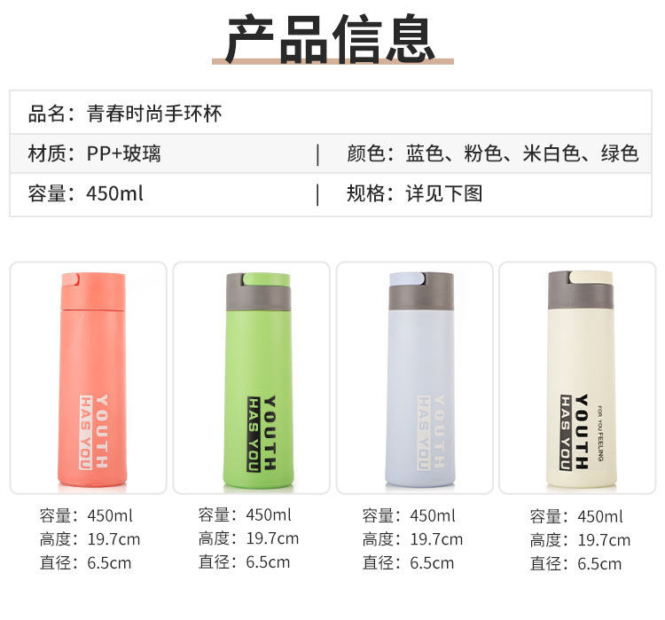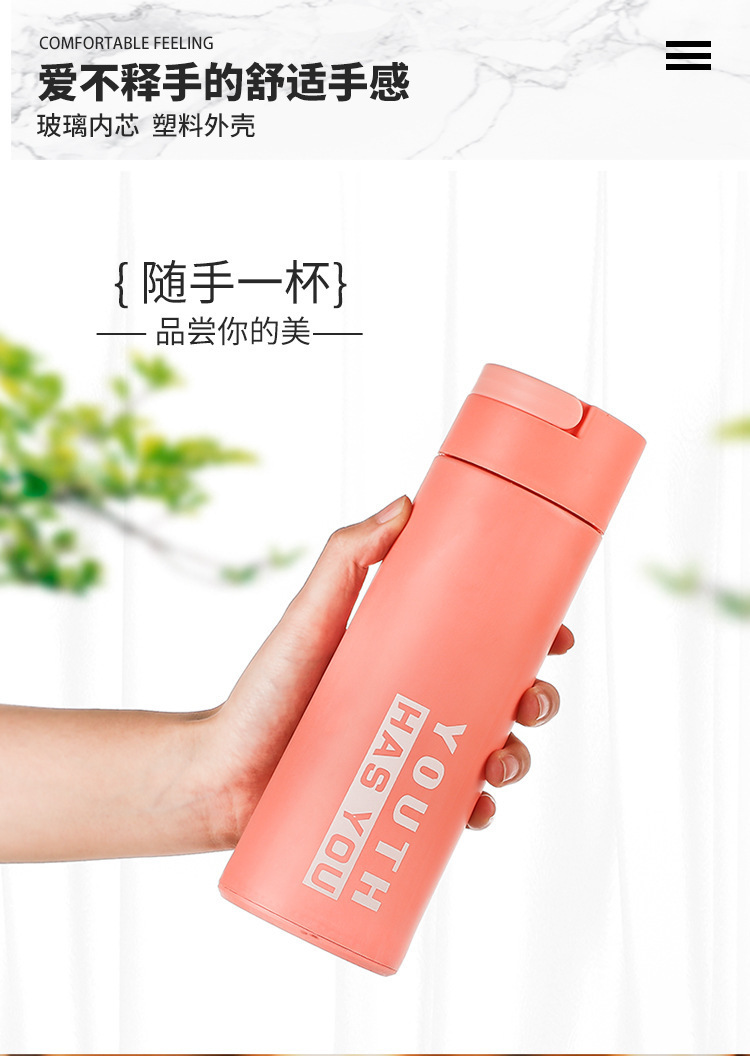 青春杯双层隔热塑玻杯便携随手杯广告礼品杯子批发创意玻璃水印制