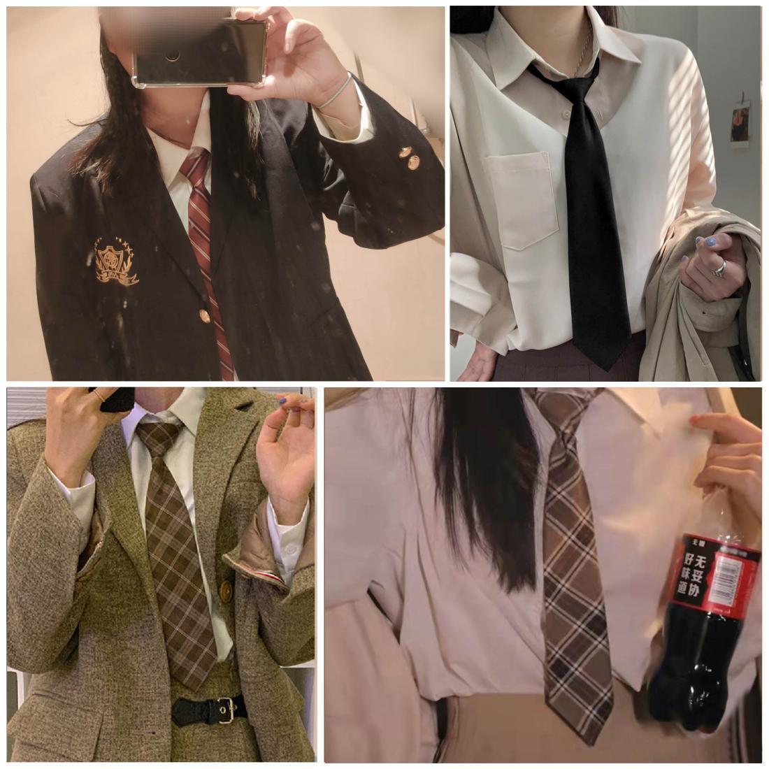 棕色日系学生学院风酒懒人免打结jk领带女红色dk衬衫装饰小领带