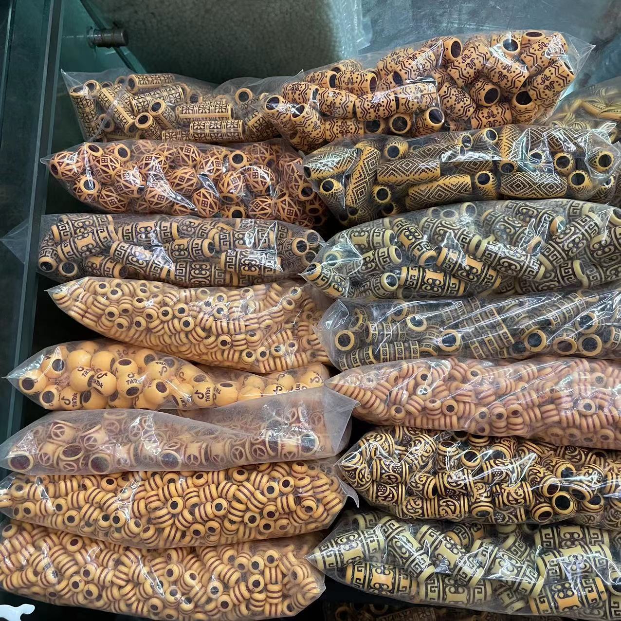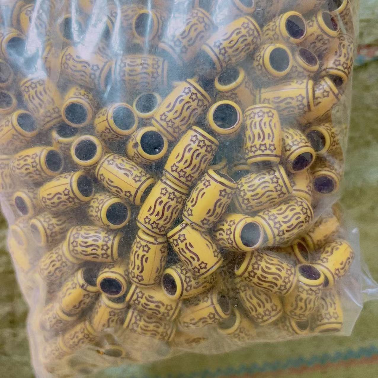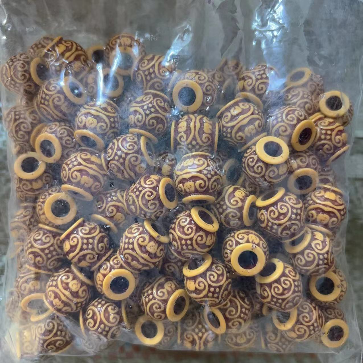 新款外贸塑料大孔复古仿木珠脏辫珠子Large hole wood hair beads