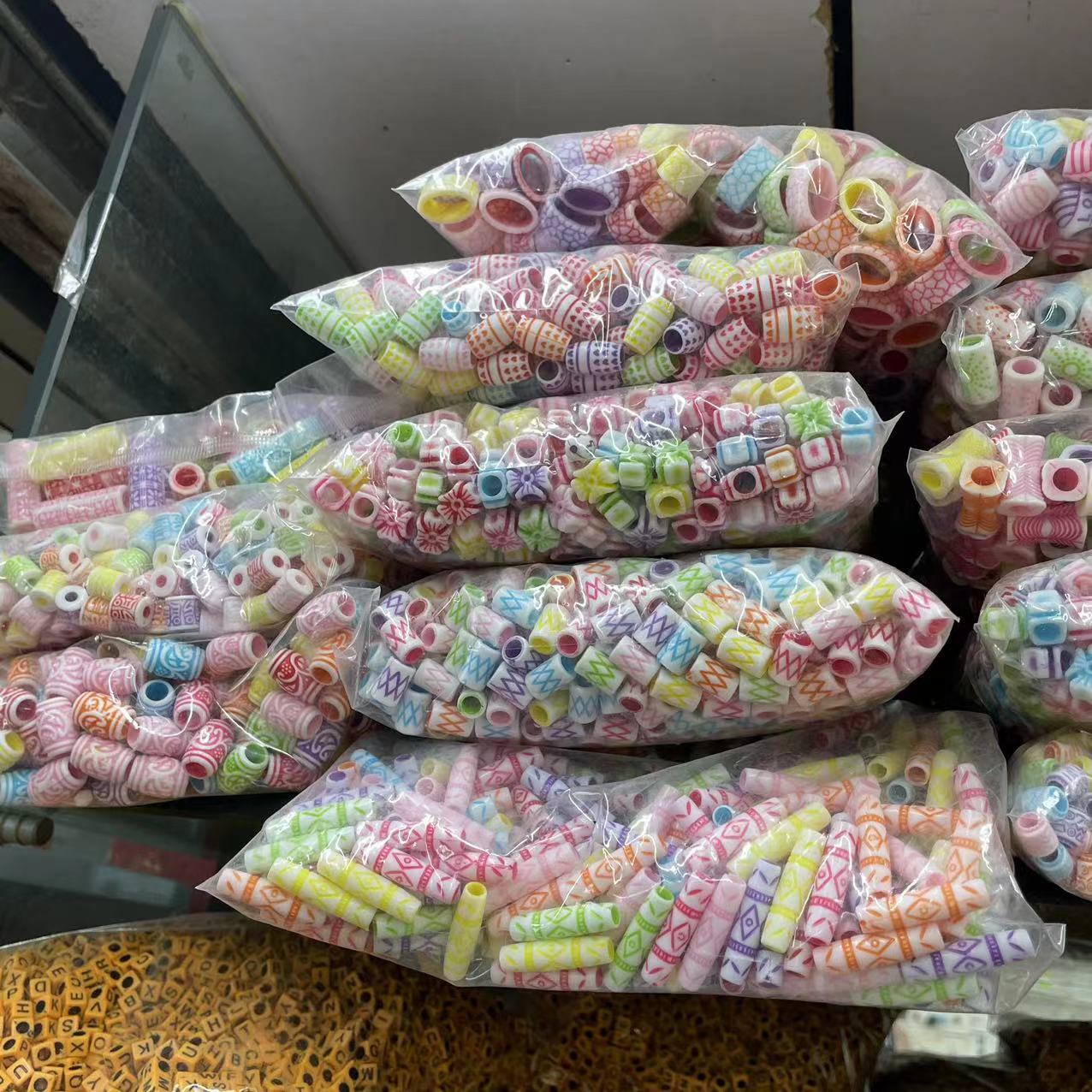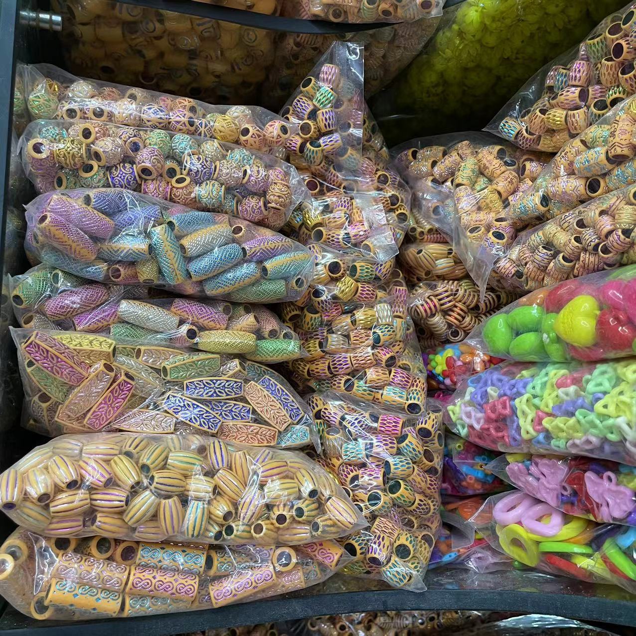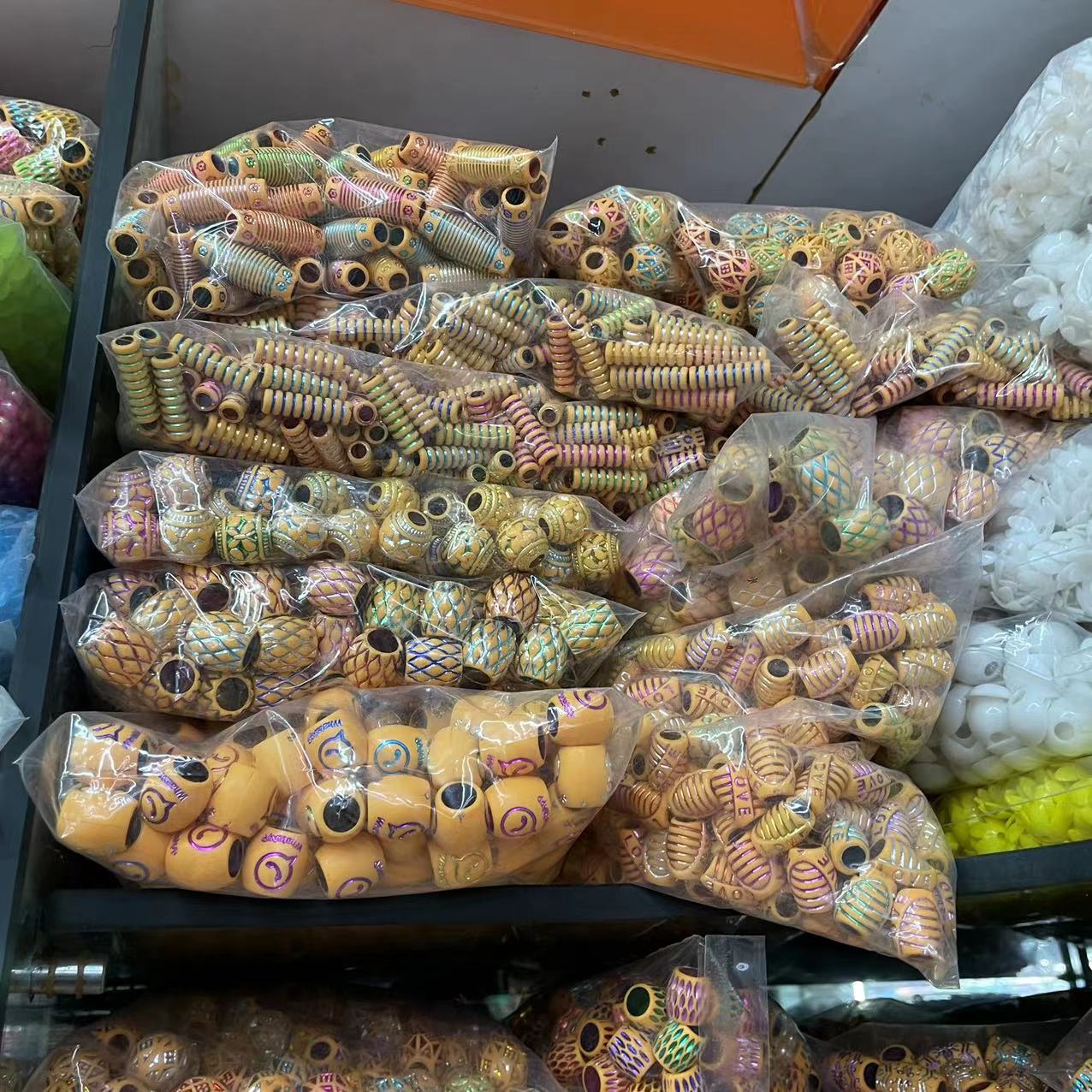 新款外贸塑料大孔复古仿木珠脏辫珠子Large hole wood hair beads