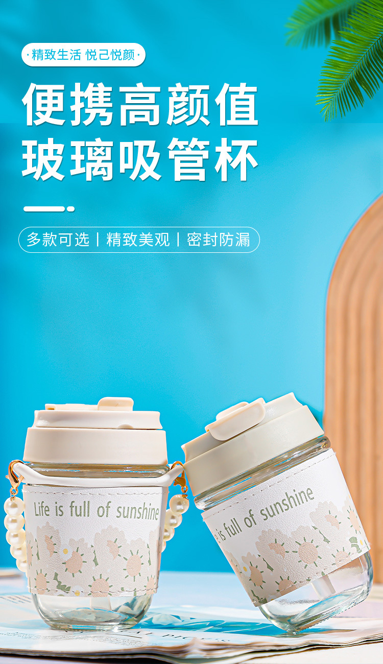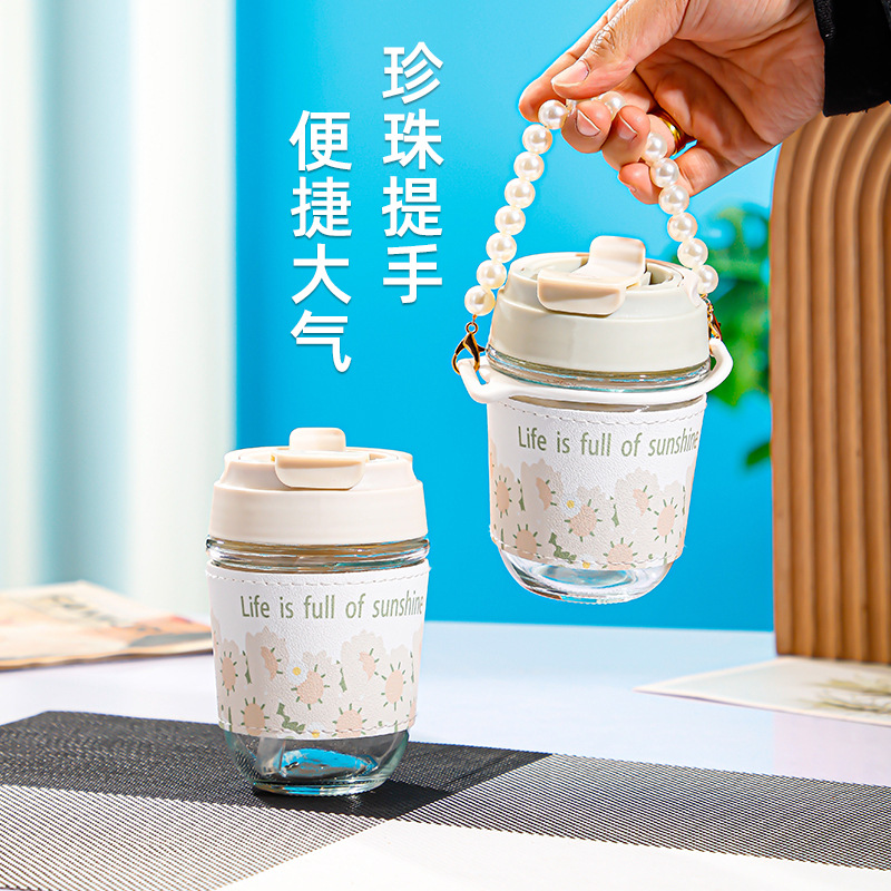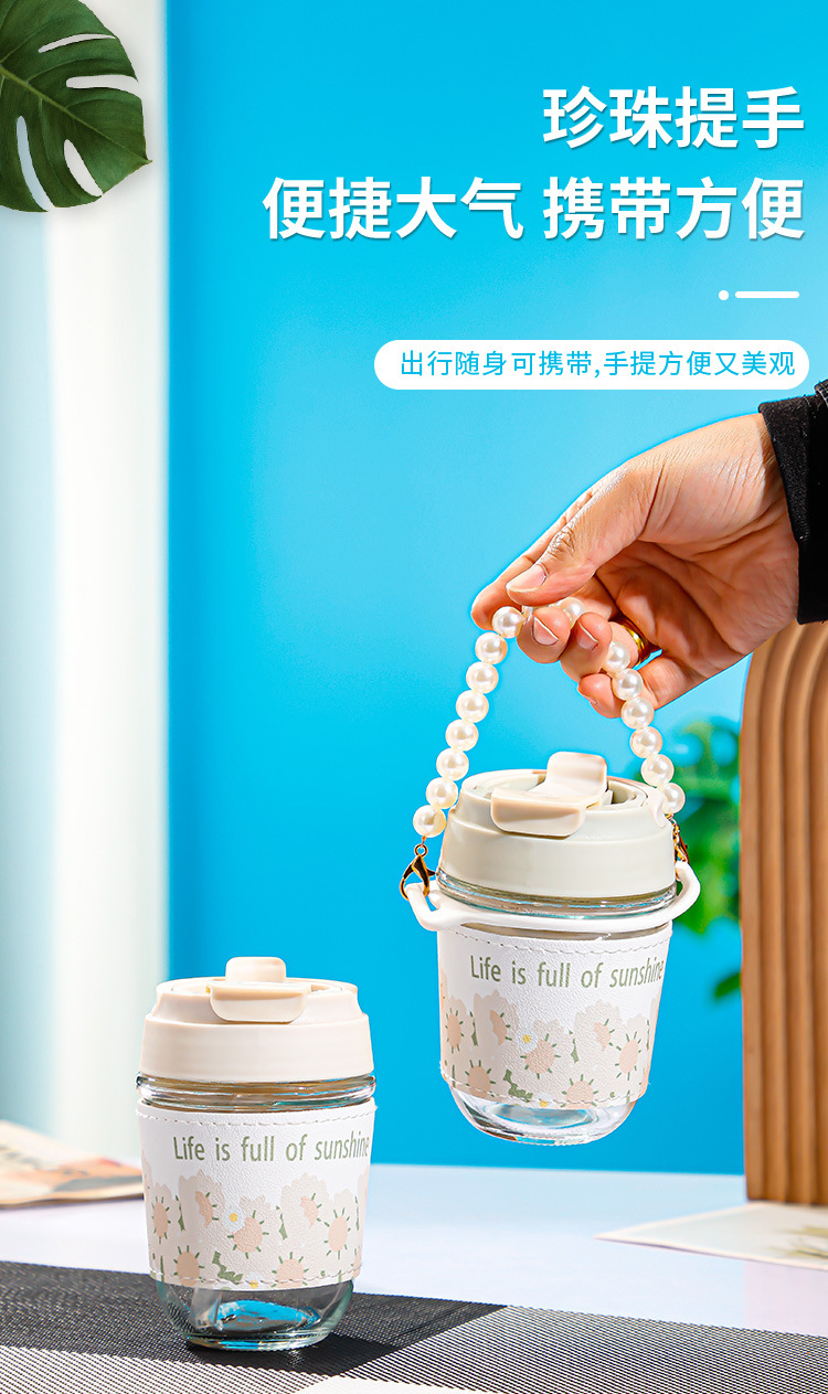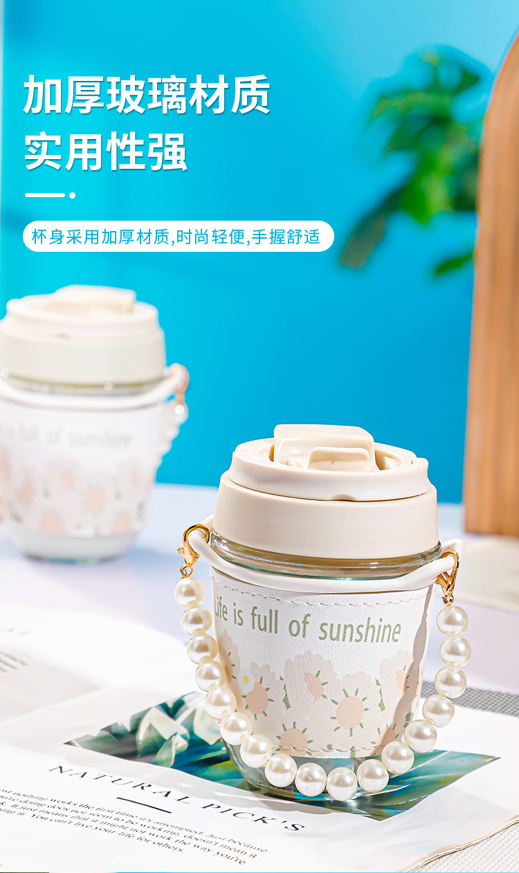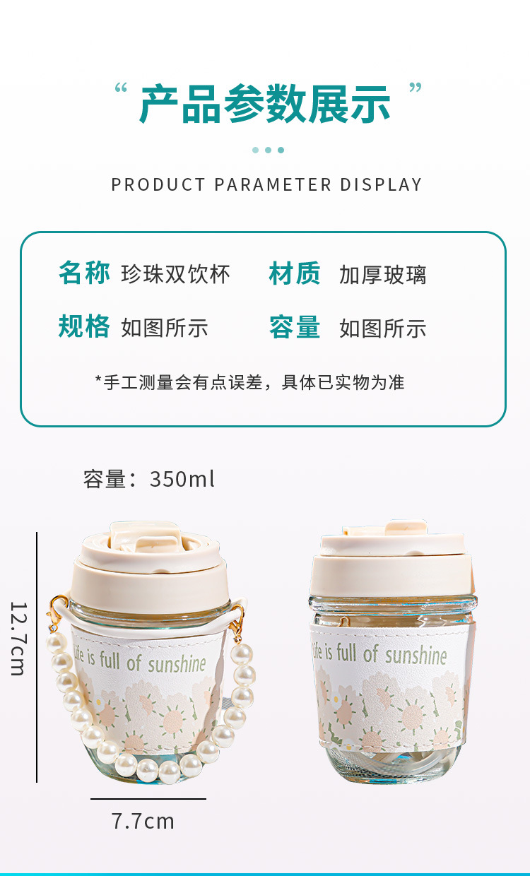 珍珠双饮杯高颜值网红玻璃水杯便携加厚学生伴手礼水杯礼品广告杯