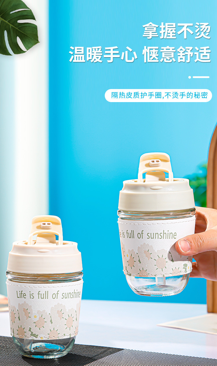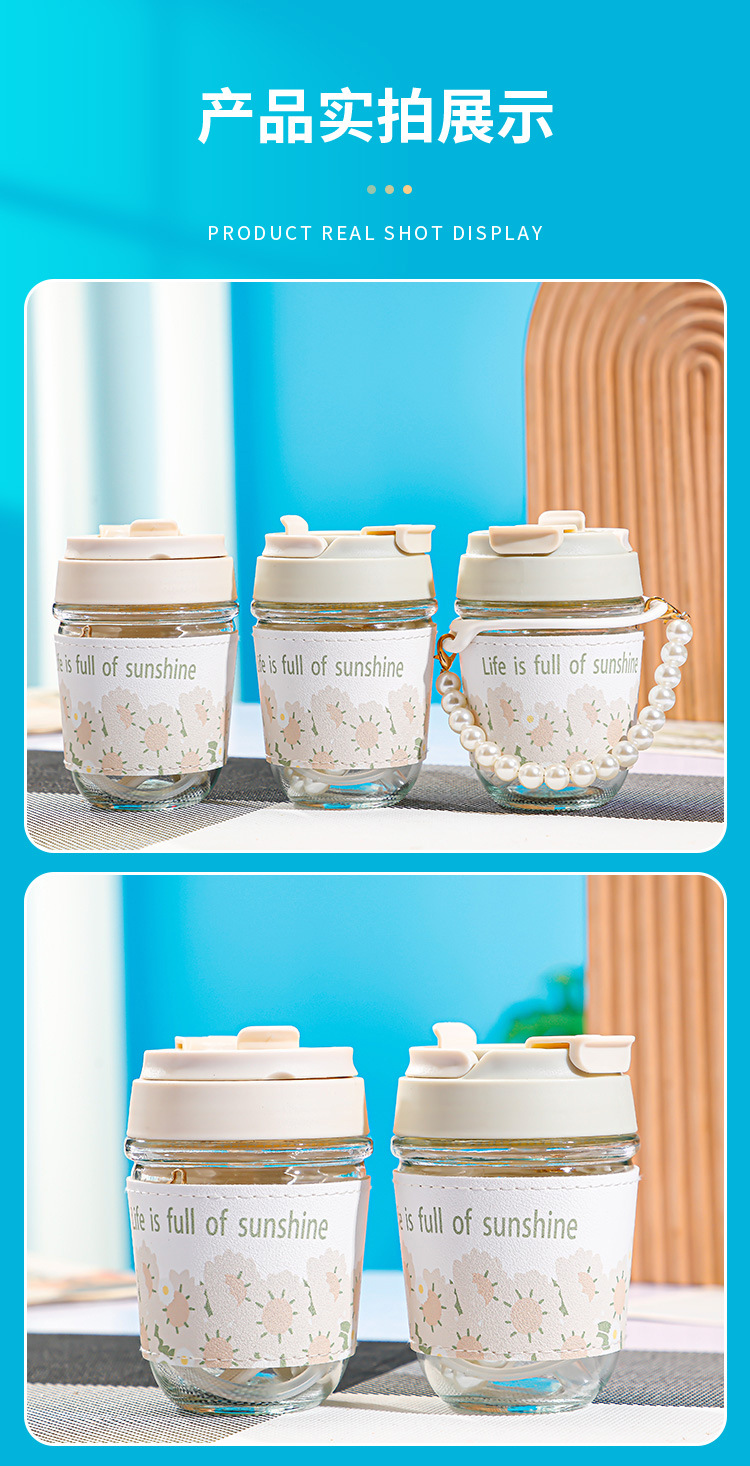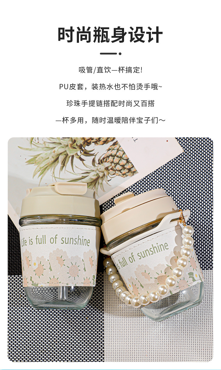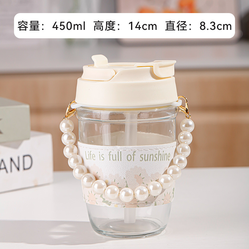 珍珠双饮杯高颜值网红玻璃水杯便携加厚学生伴手礼水杯礼品广告杯