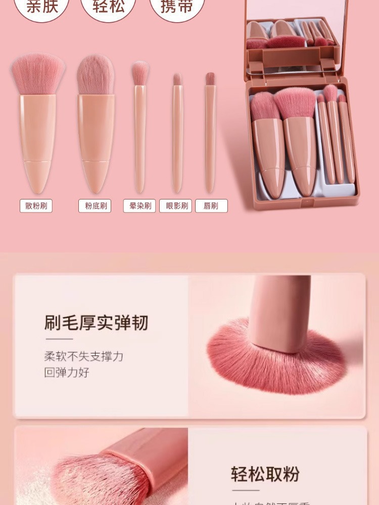 5支迷你便携旅行套刷带镜子化妆刷腮红刷眼影刷散粉刷沧州化妆刷