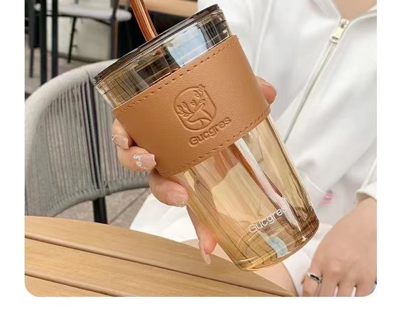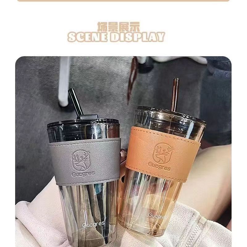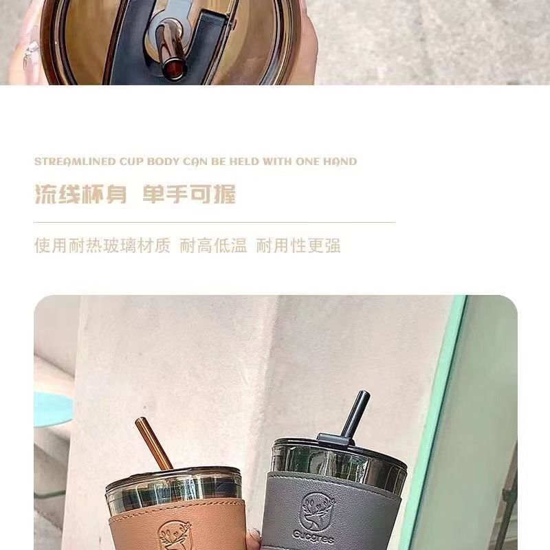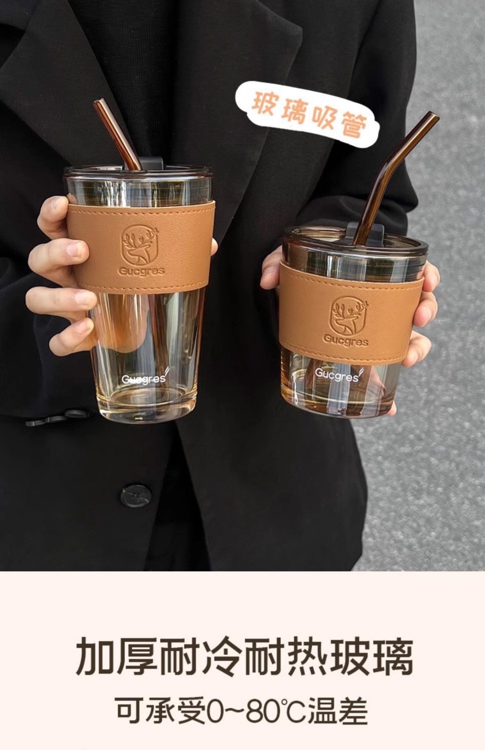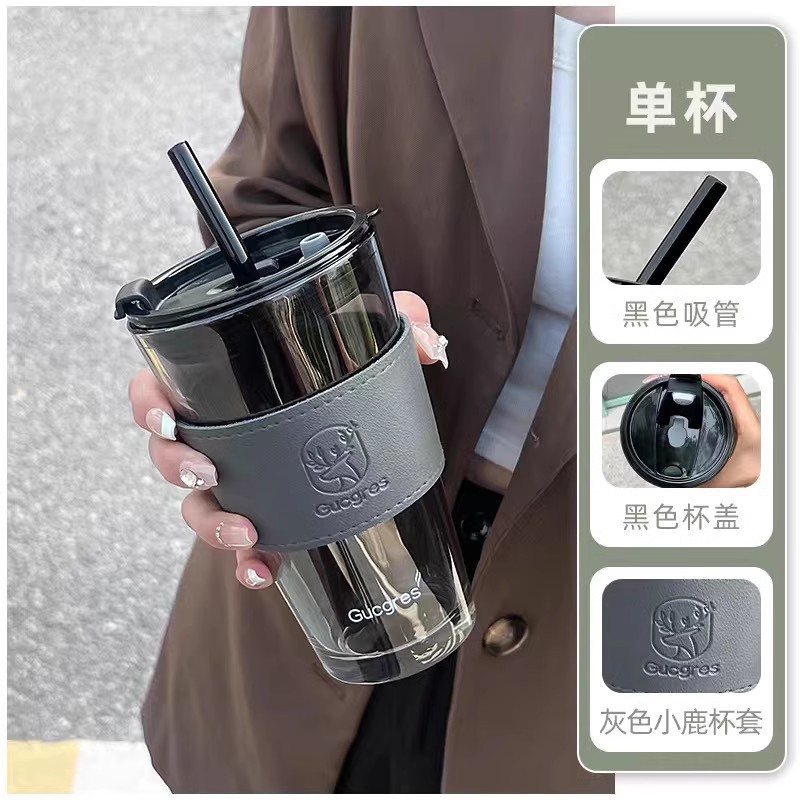 网红ins带吸管玻璃竹节杯高颜值咖啡杯直筒大容量小鹿开业礼品杯