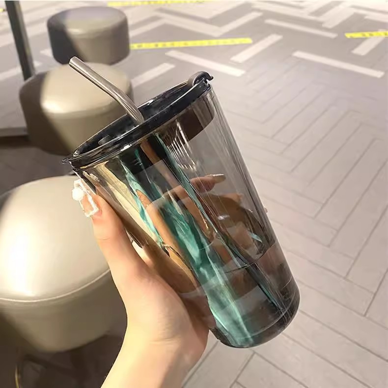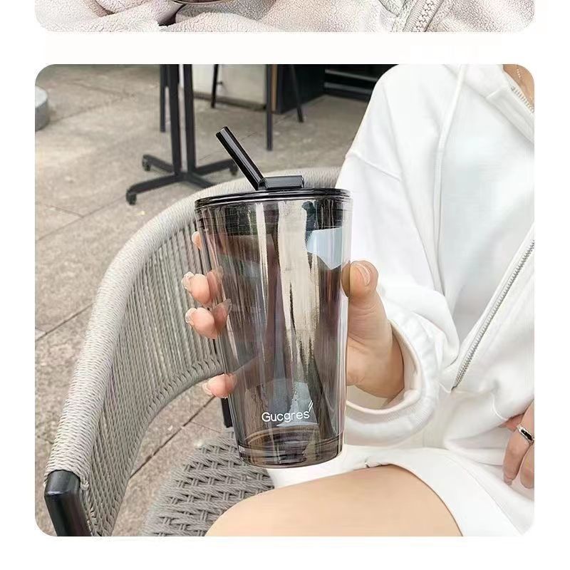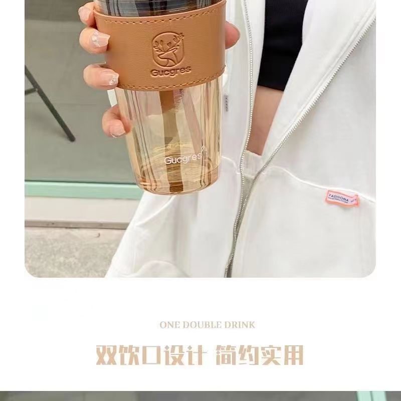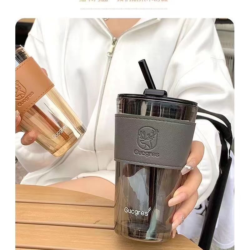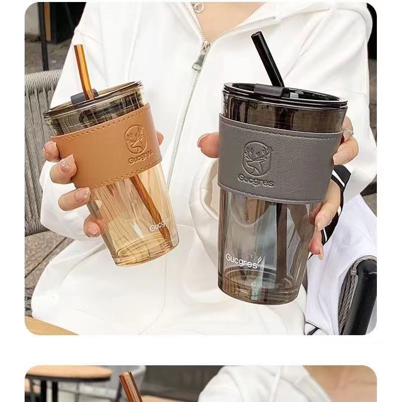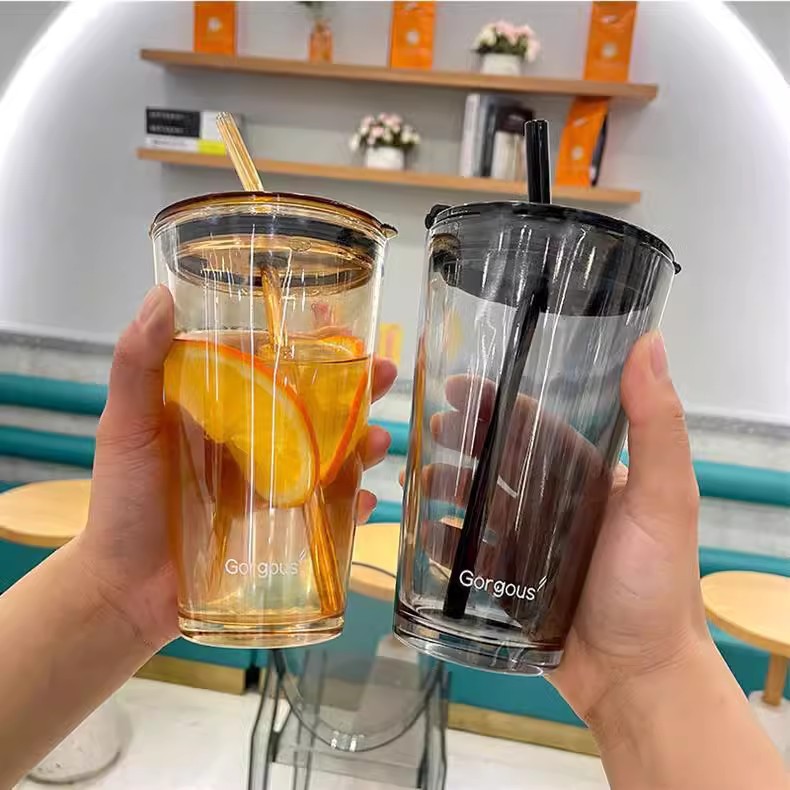 网红ins带吸管玻璃竹节杯高颜值咖啡杯直筒大容量小鹿开业礼品杯