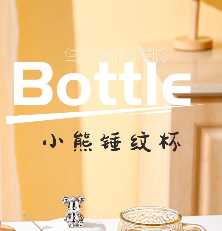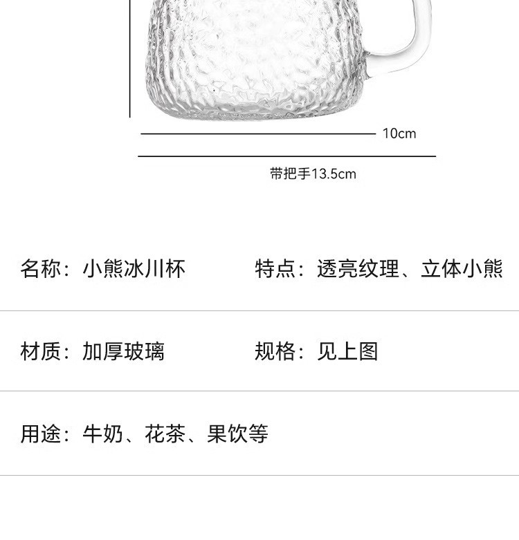 小熊玻璃杯锤纹杯咖啡杯广告定制logo杯子手把印字杯创意水杯