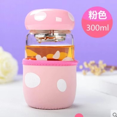 创意便携带盖过滤茶漏茶杯学生情侣男女水杯子蘑菇玻璃杯礼品广告