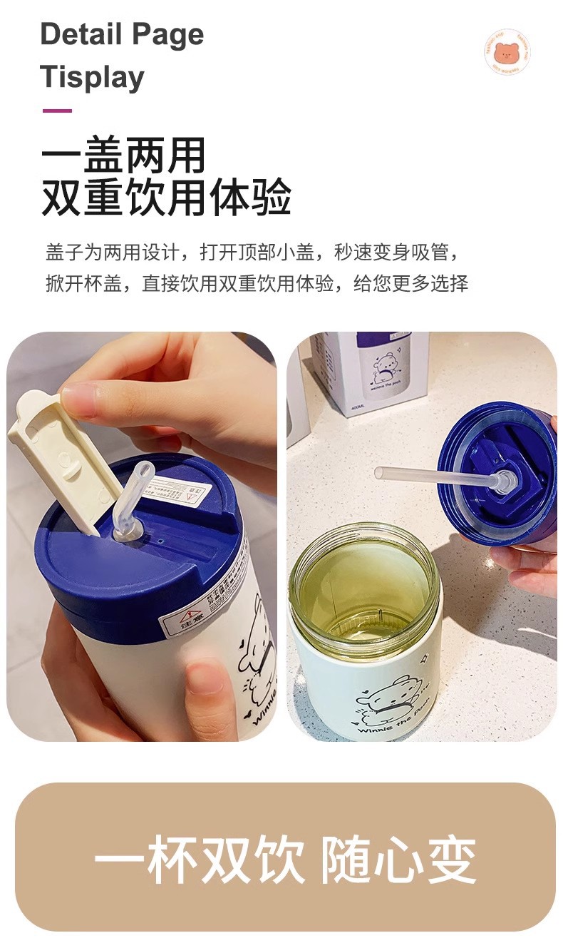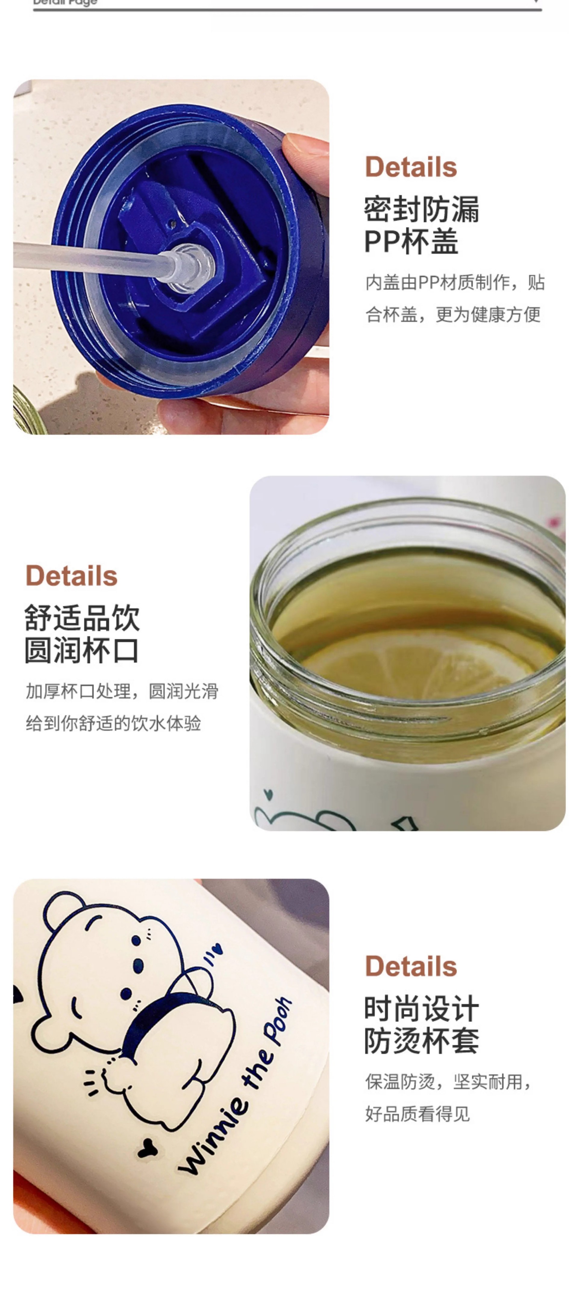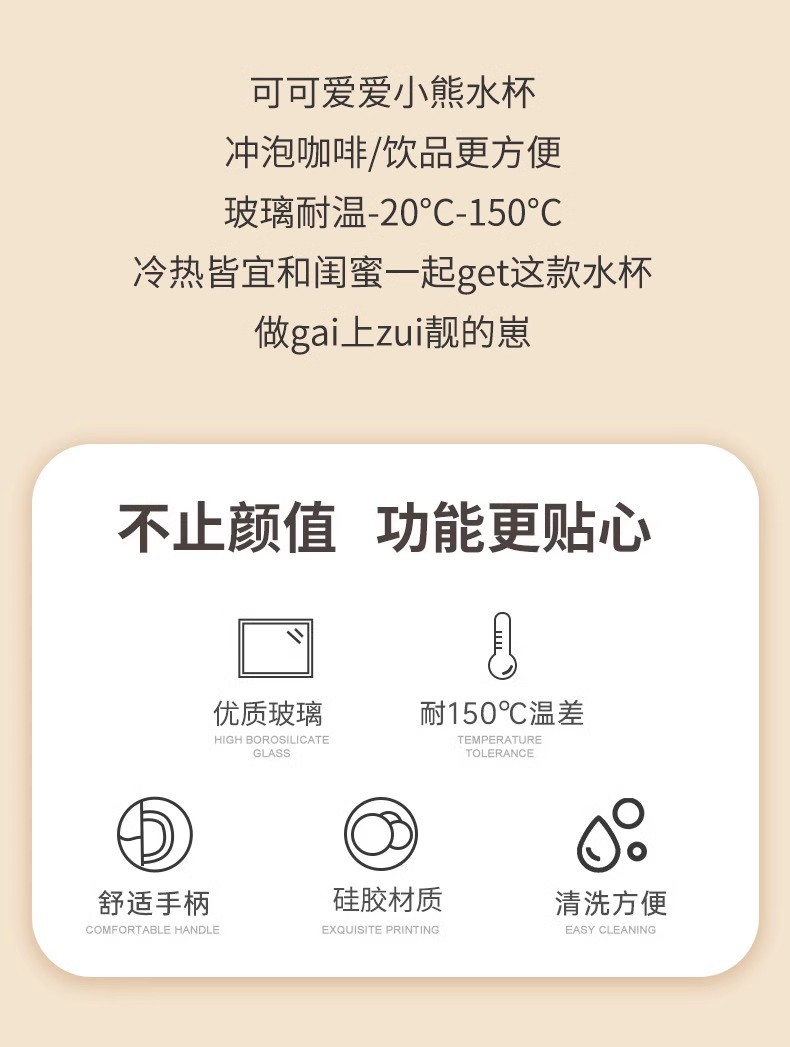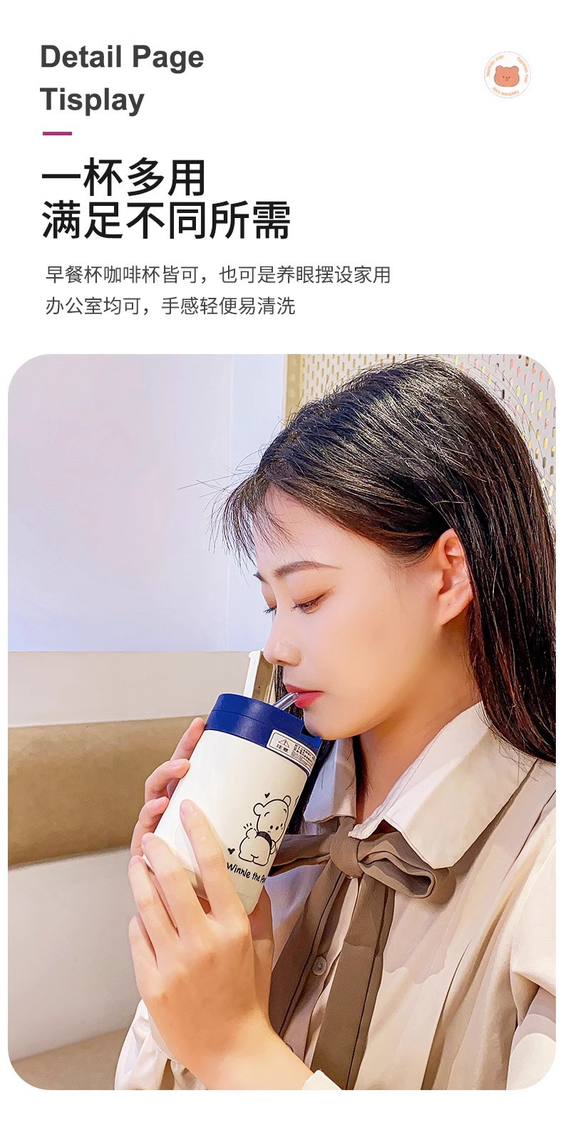 可爱时尚ins小熊吸管杯高颜值水杯家用玻璃水杯随手杯