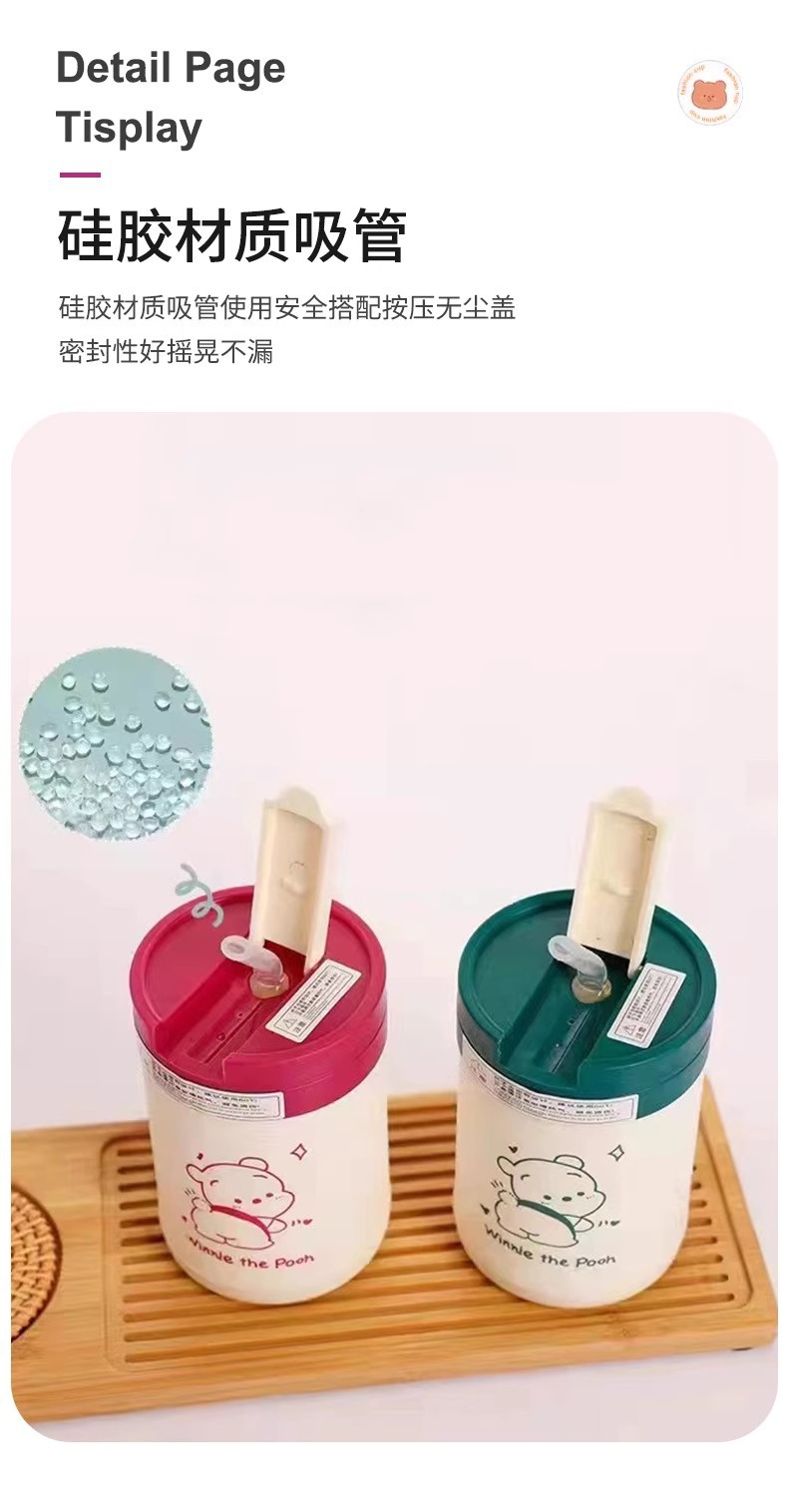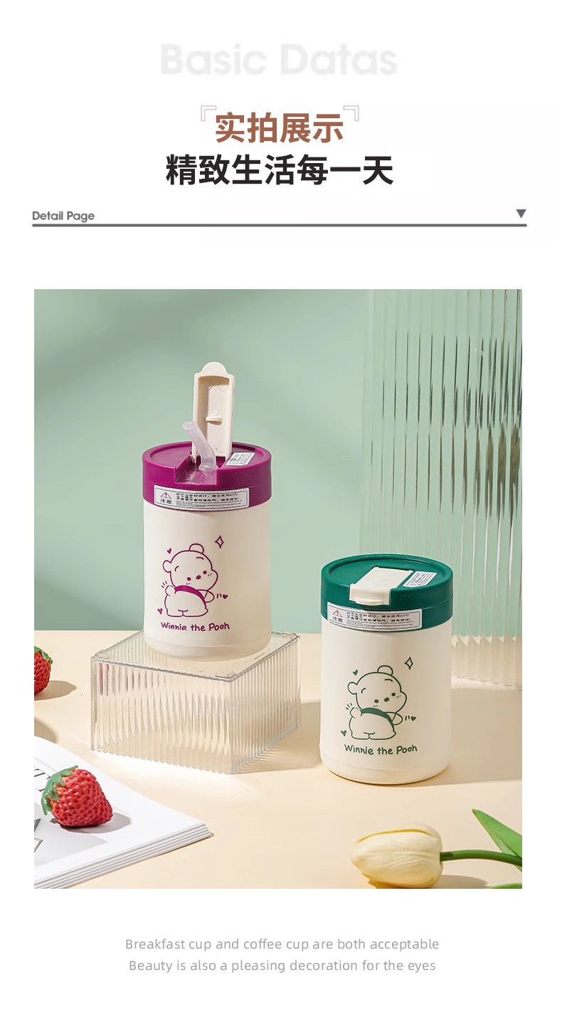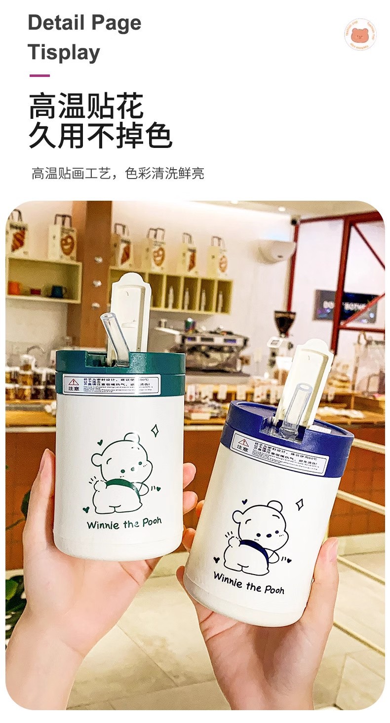 可爱时尚ins小熊吸管杯高颜值水杯家用玻璃水杯随手杯