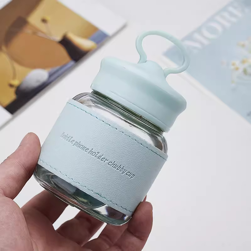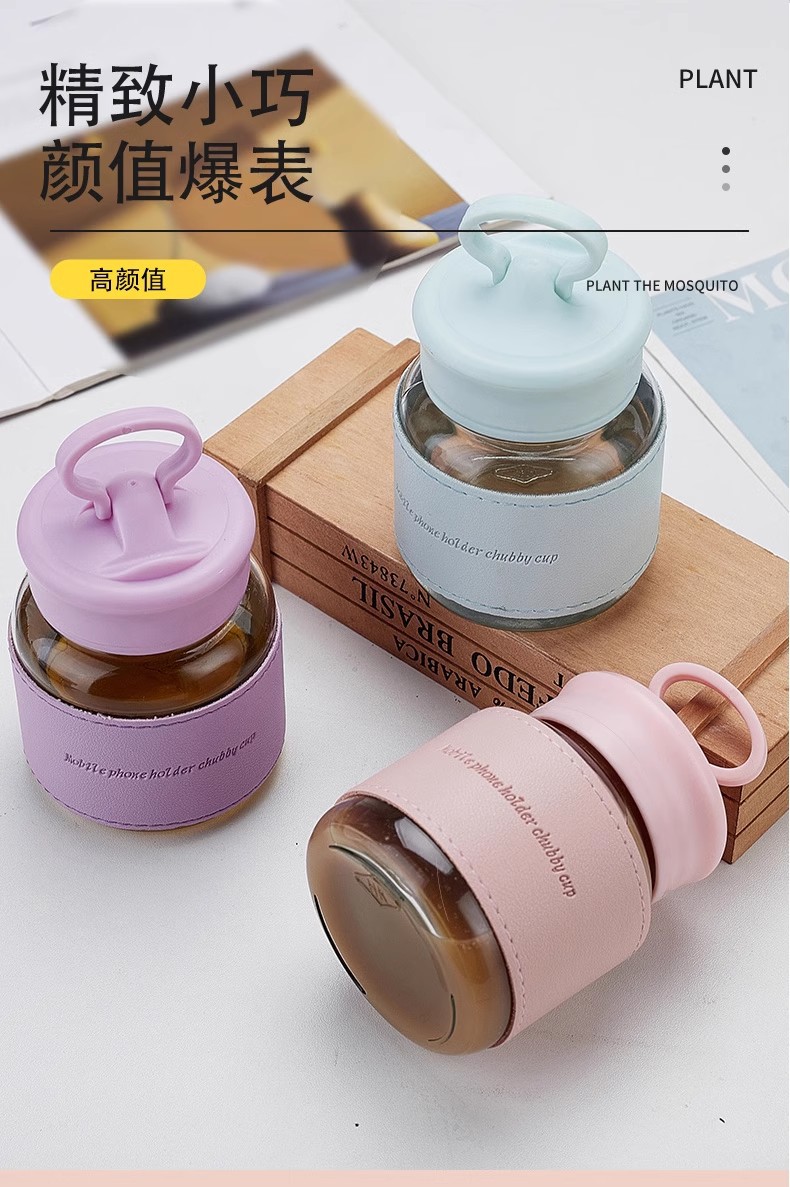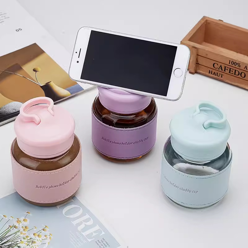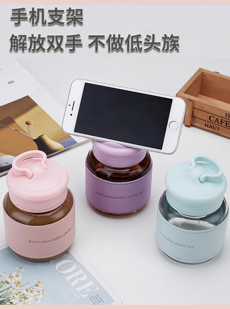 网红迷你玻璃水杯豆浆杯奶茶杯手机支架杯胖胖杯便携式可爱摇摇杯