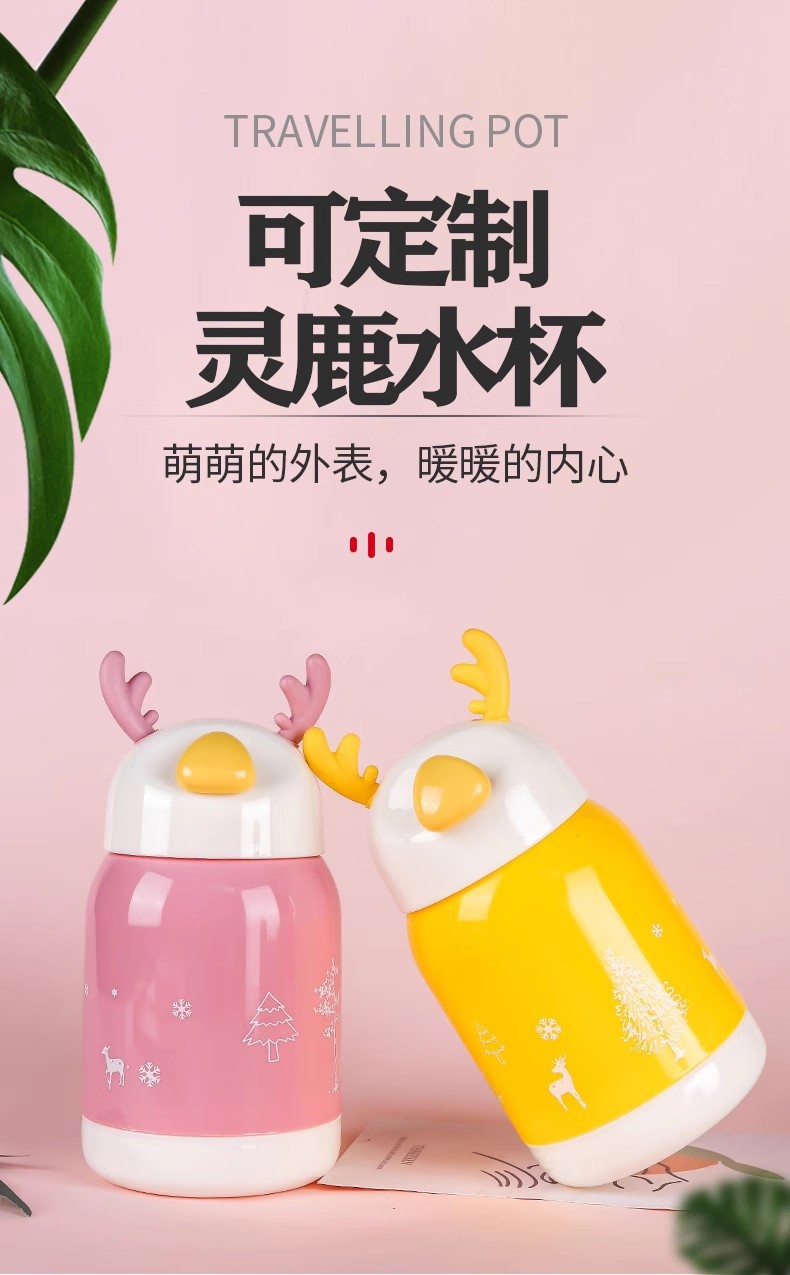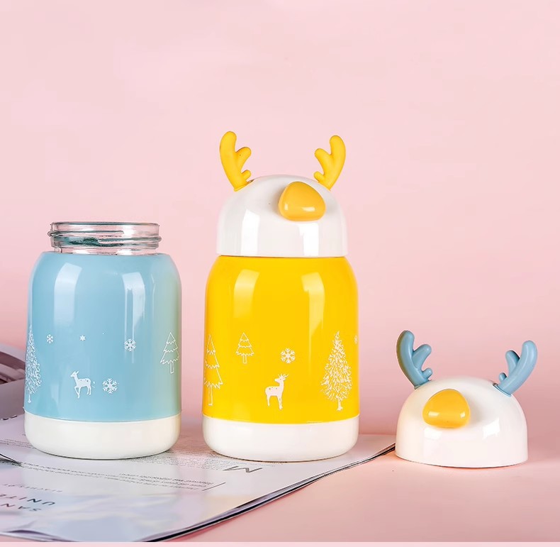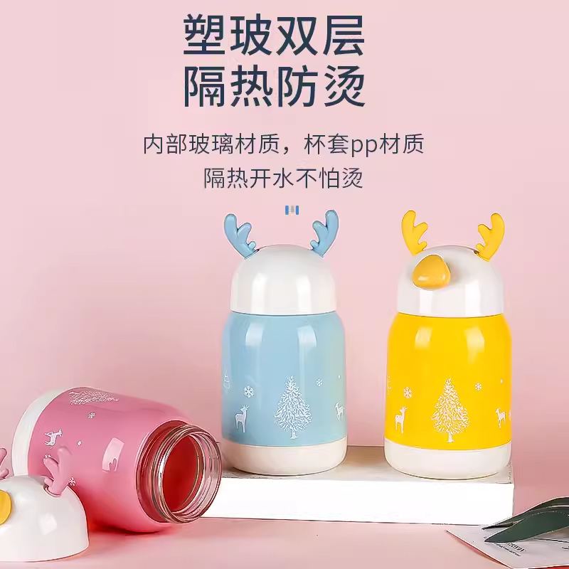 新款灵鹿杯玻璃水杯防烫防摔可爱圣诞礼物杯便携男女礼品定制水杯