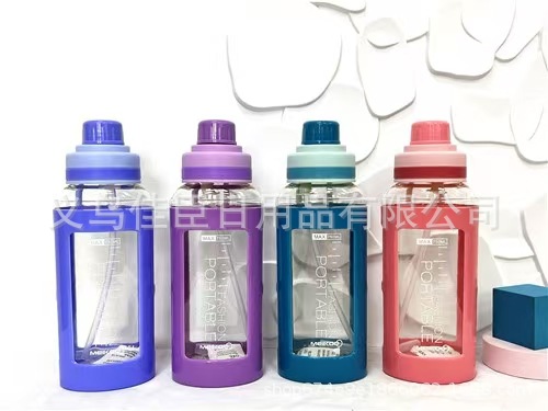 跨境热销运动水壶夏季大容量吸管杯弹跳盖学生软硅胶嘴运动太空杯
