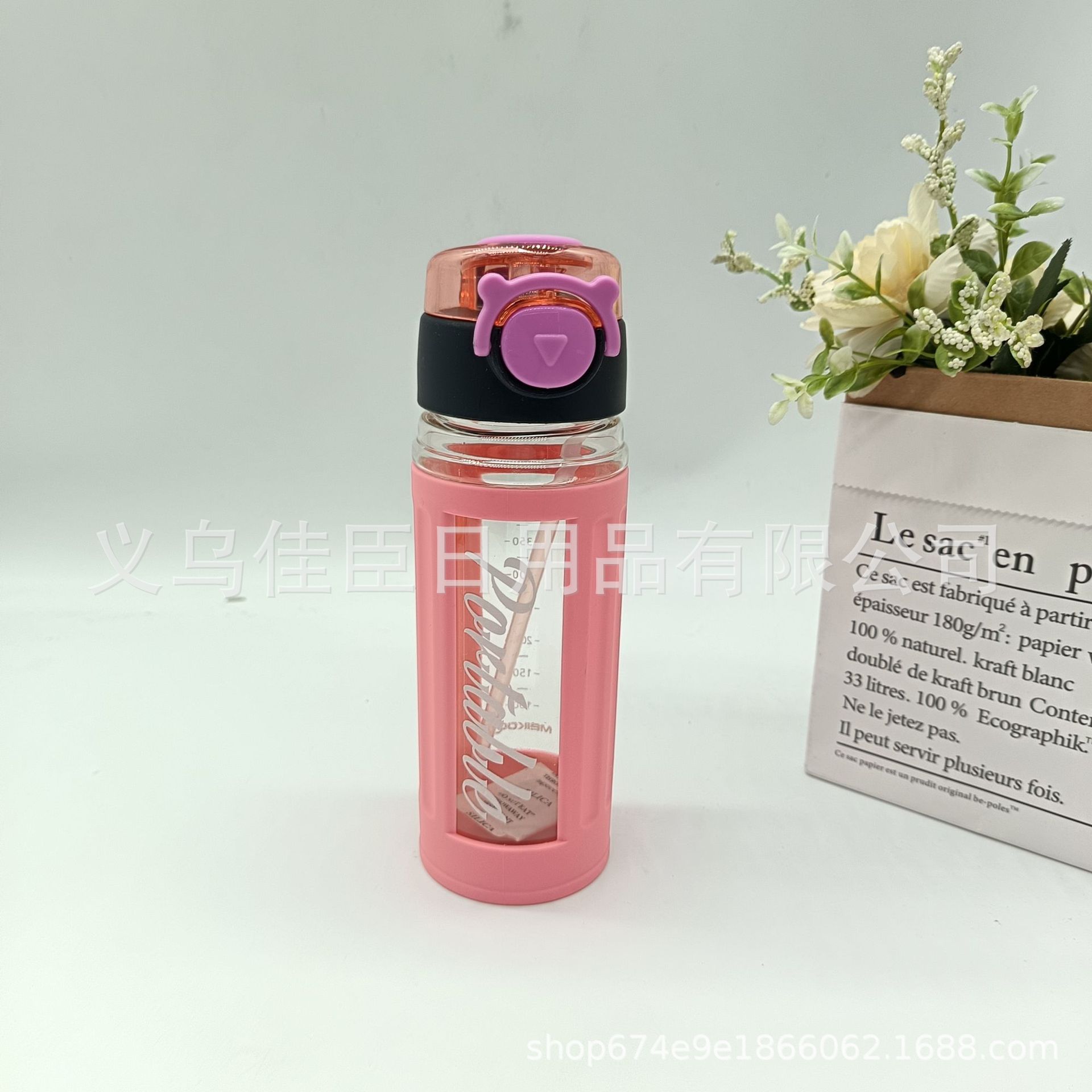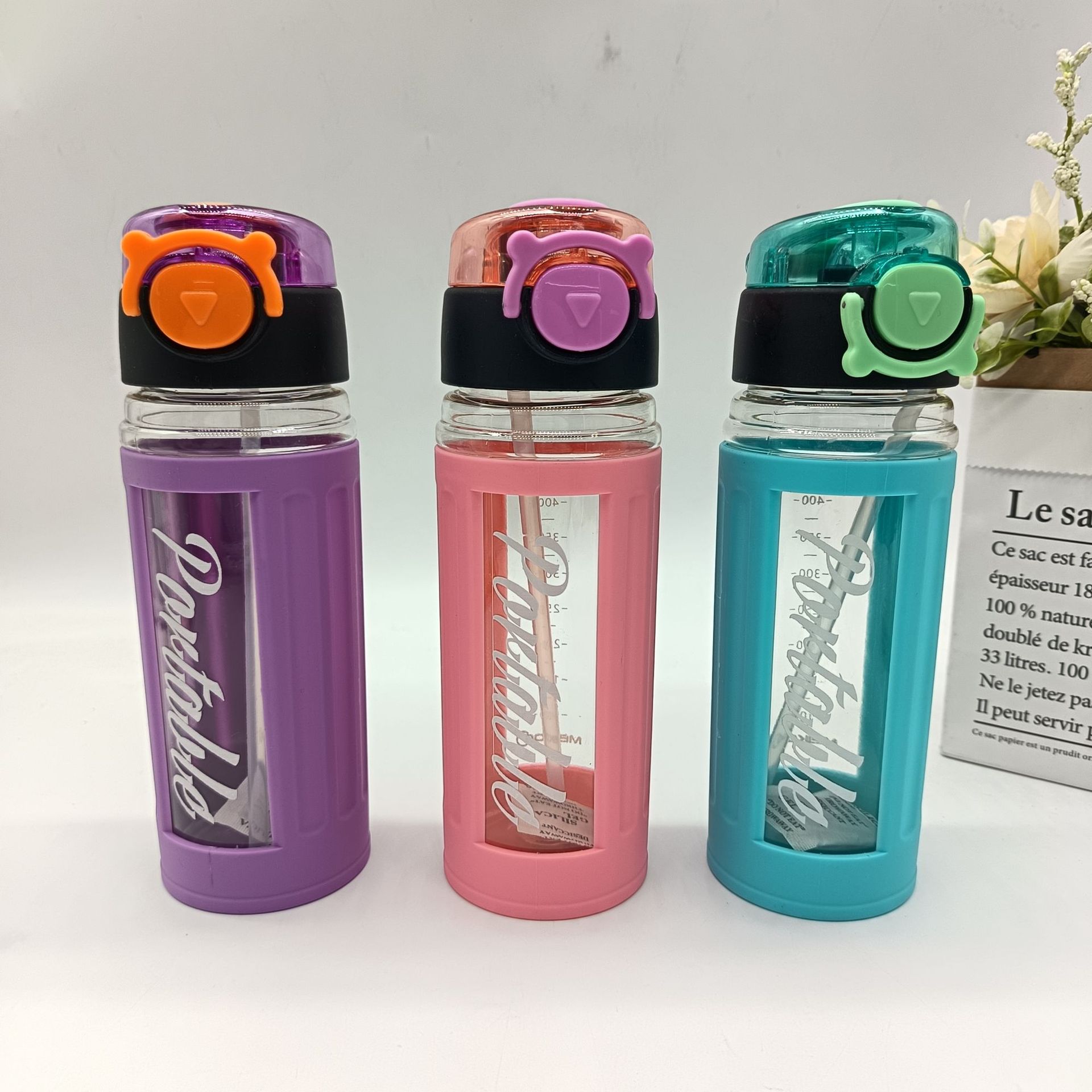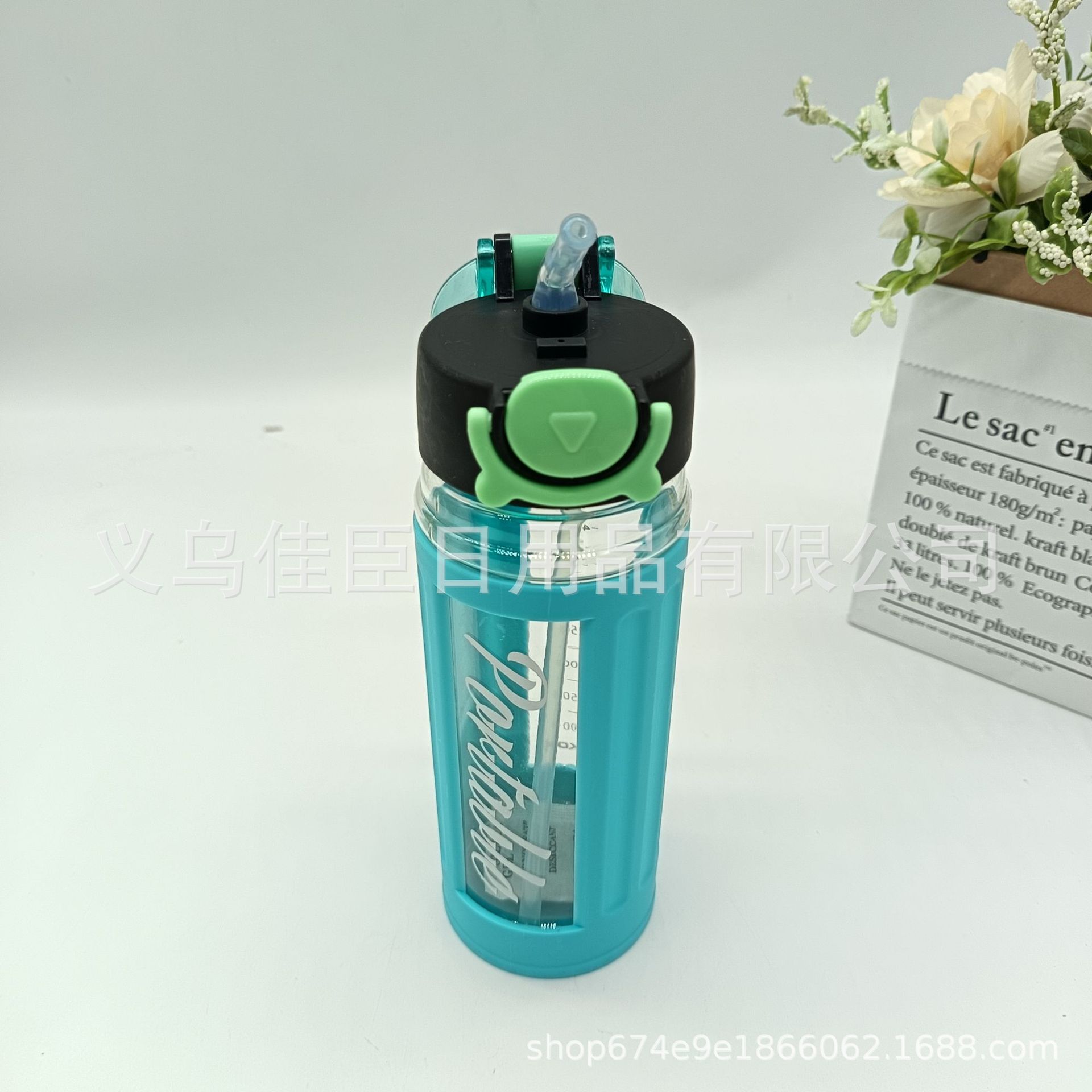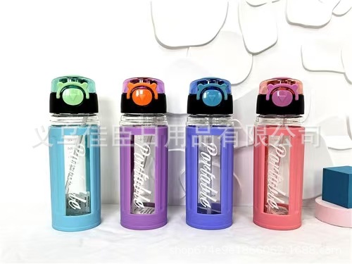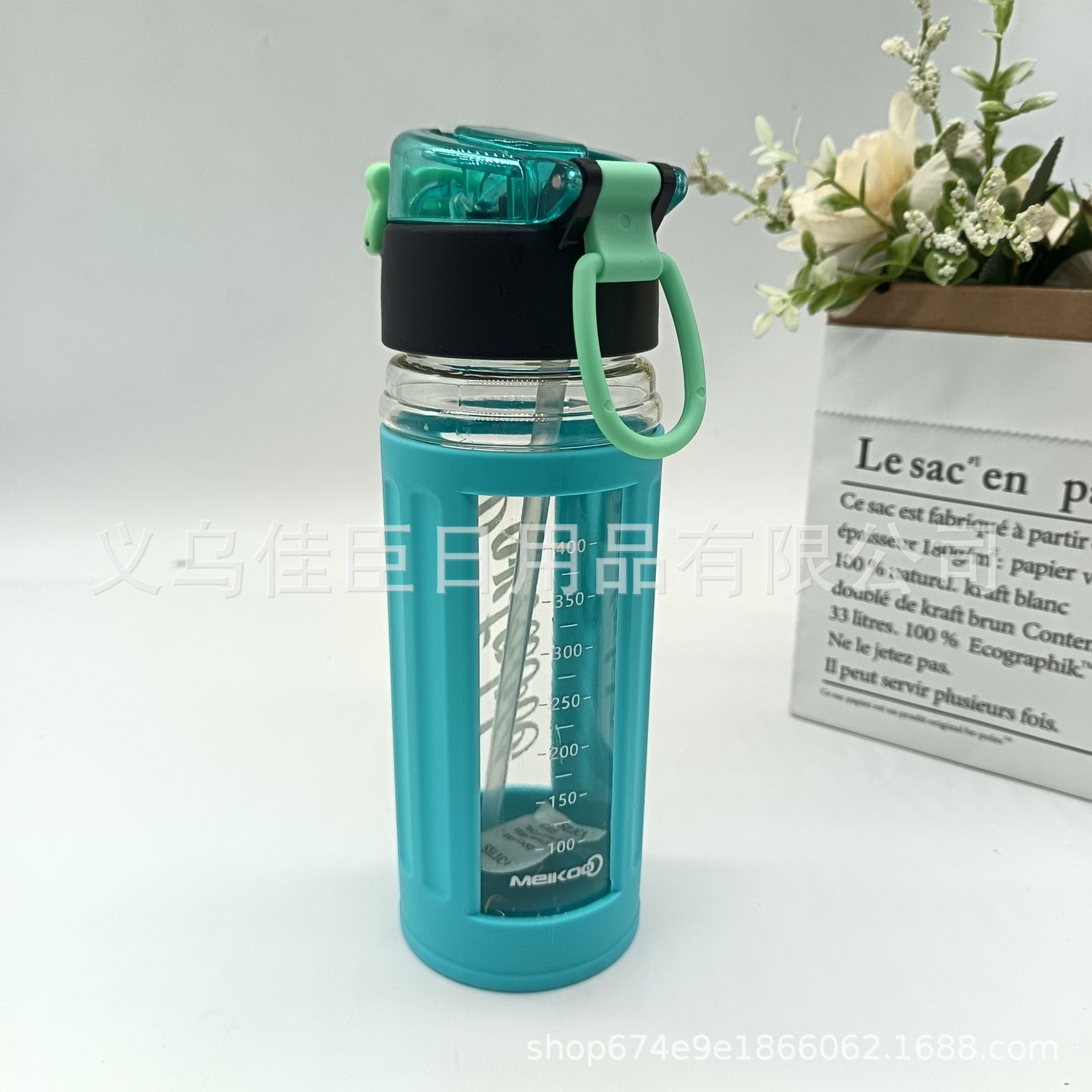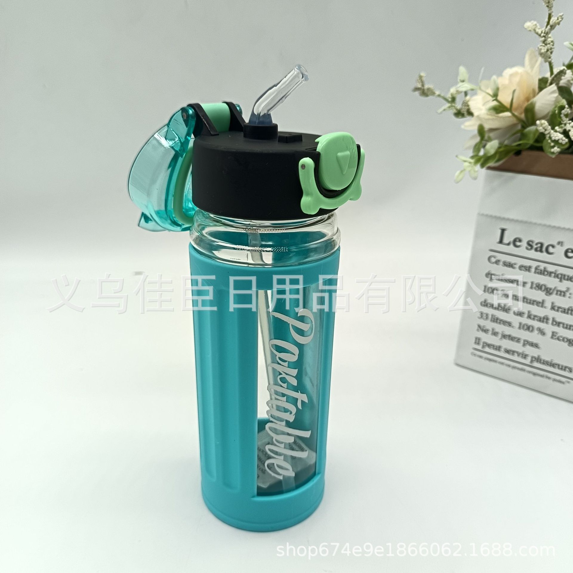 外销创意水杯折叠吸管盖手提方形水杯隔热套户外运动水壶学生太空