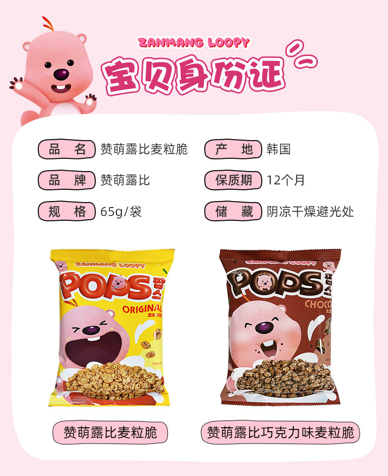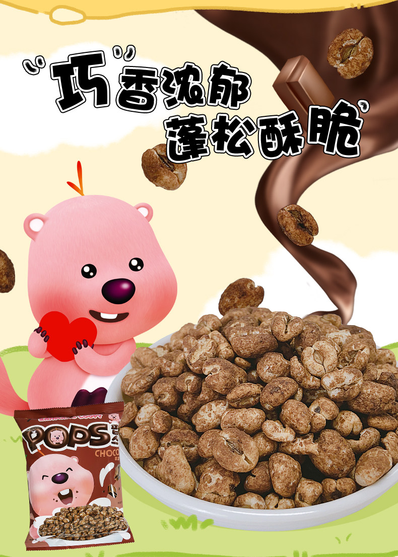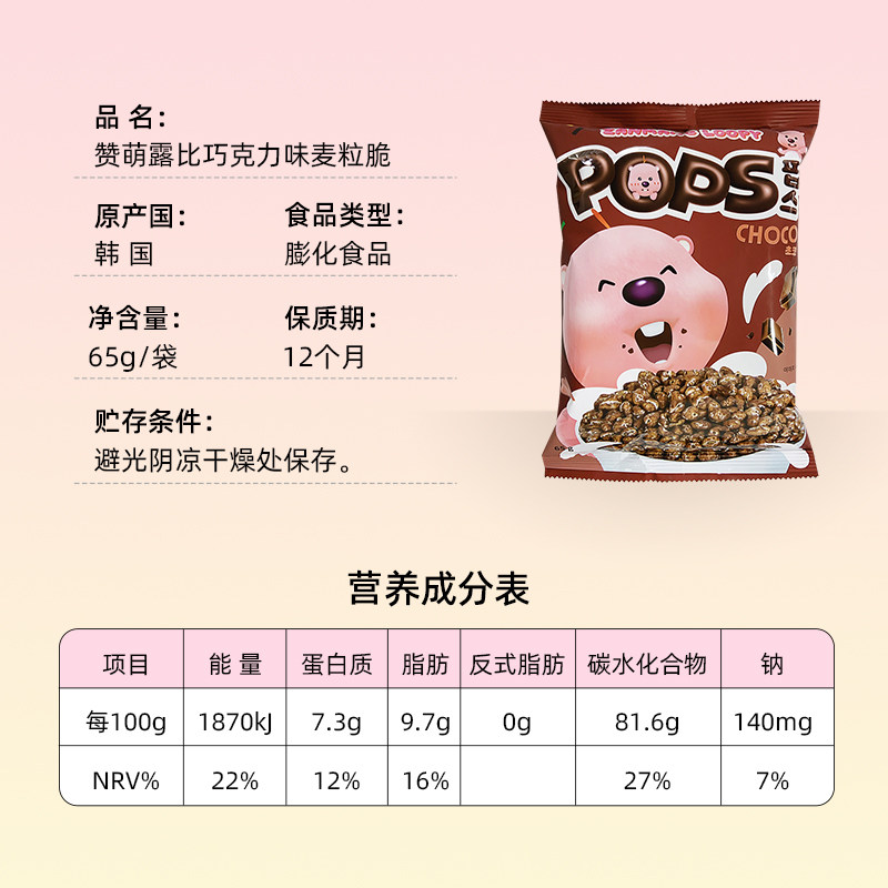 韩国赞萌露比巧克力原味麦粒脆爆米花大麦粒膨化麦仁甜天麦零食