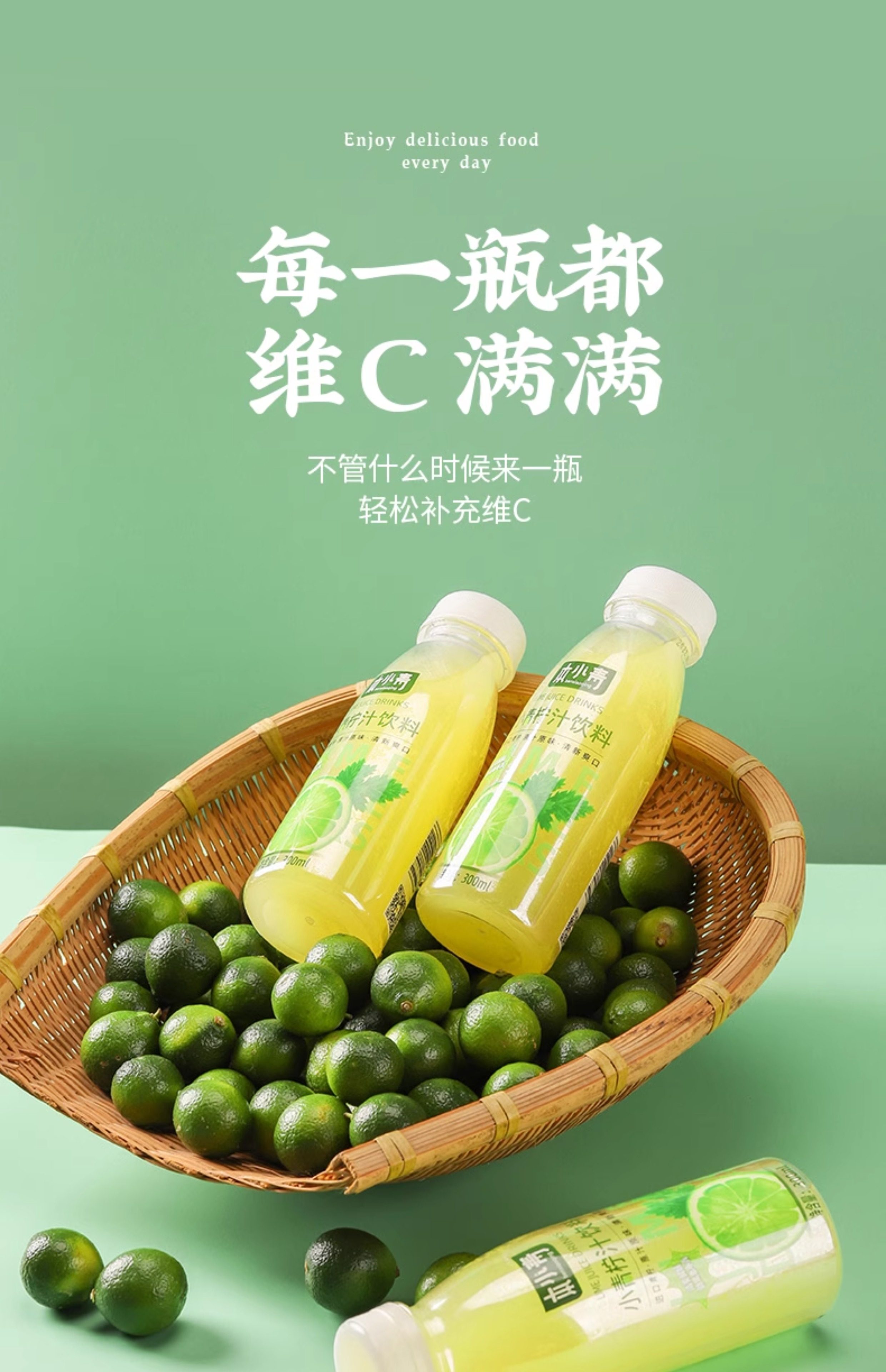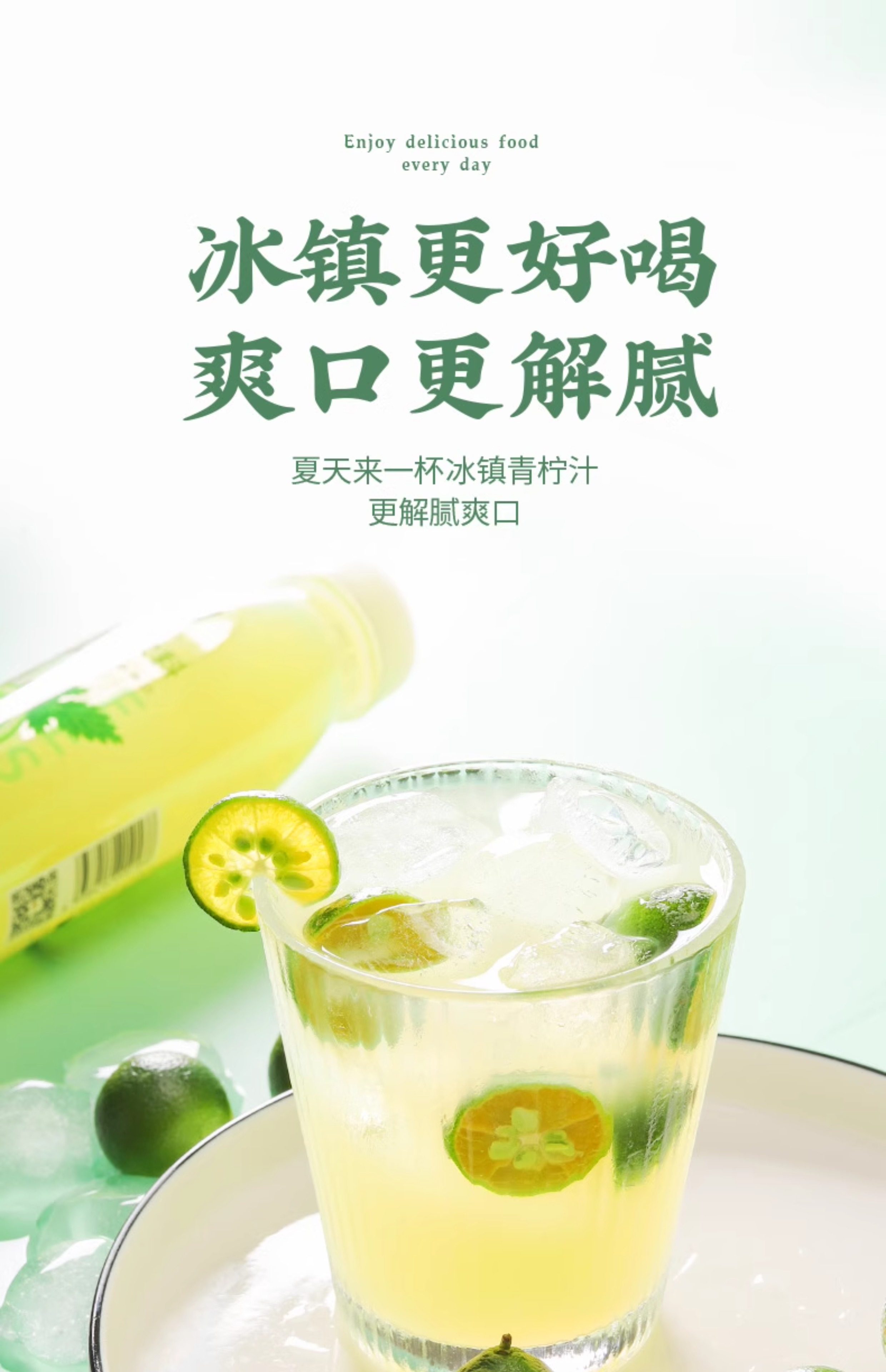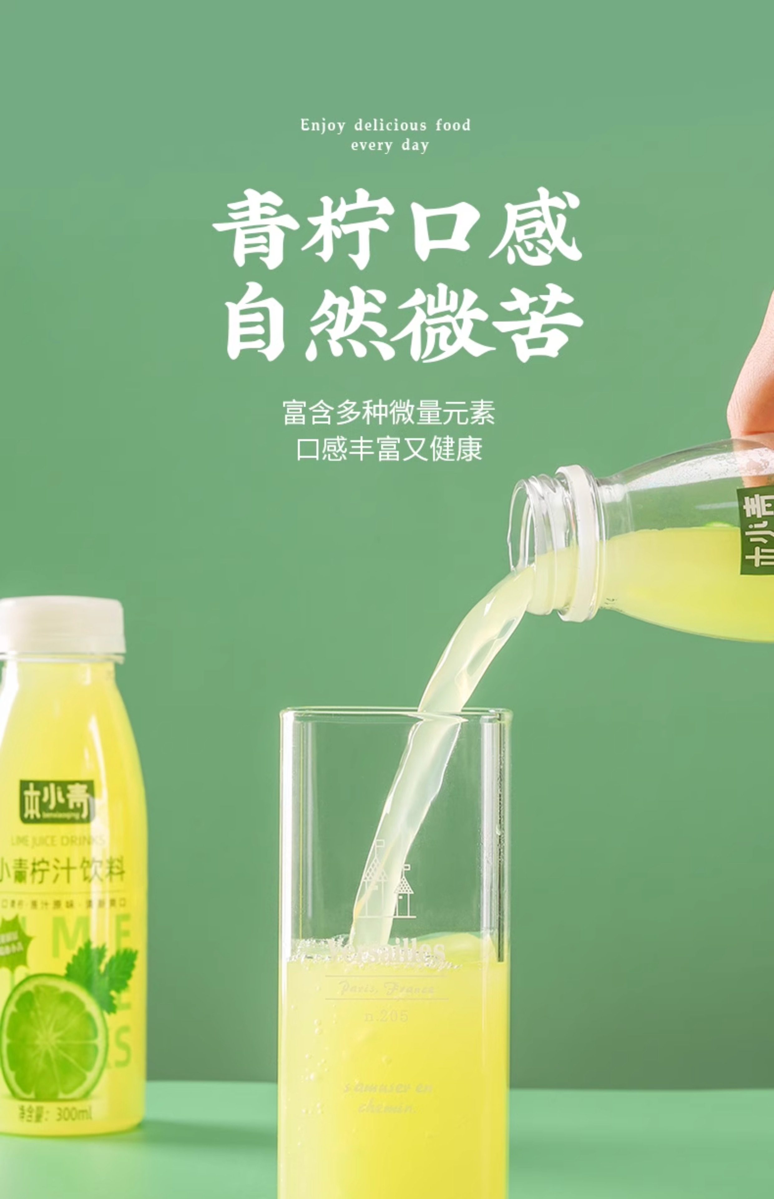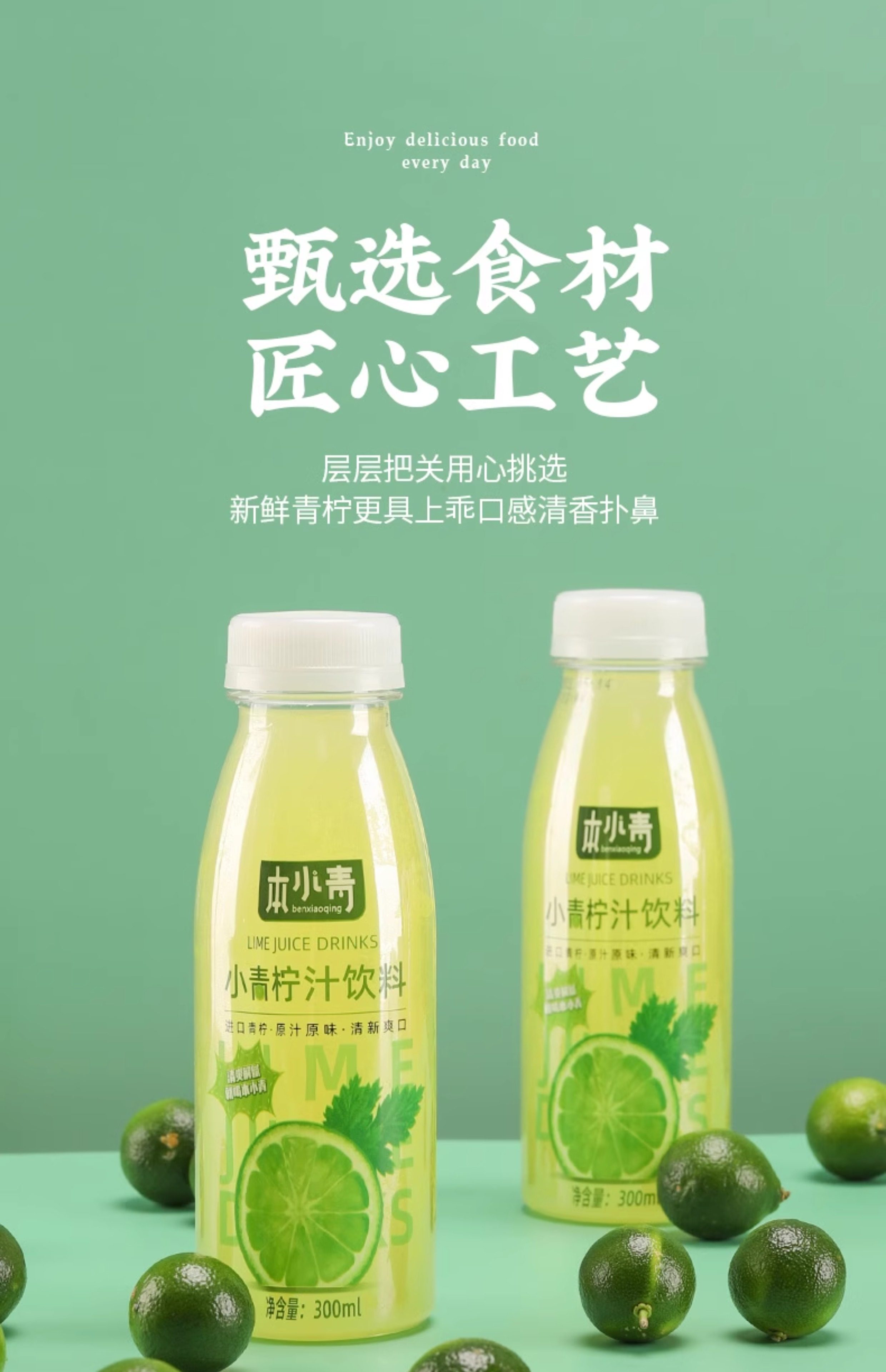 小青柠汁饮料柠檬汁新鲜进口维C果汁清爽解腻网红饮品西柚汁300ml