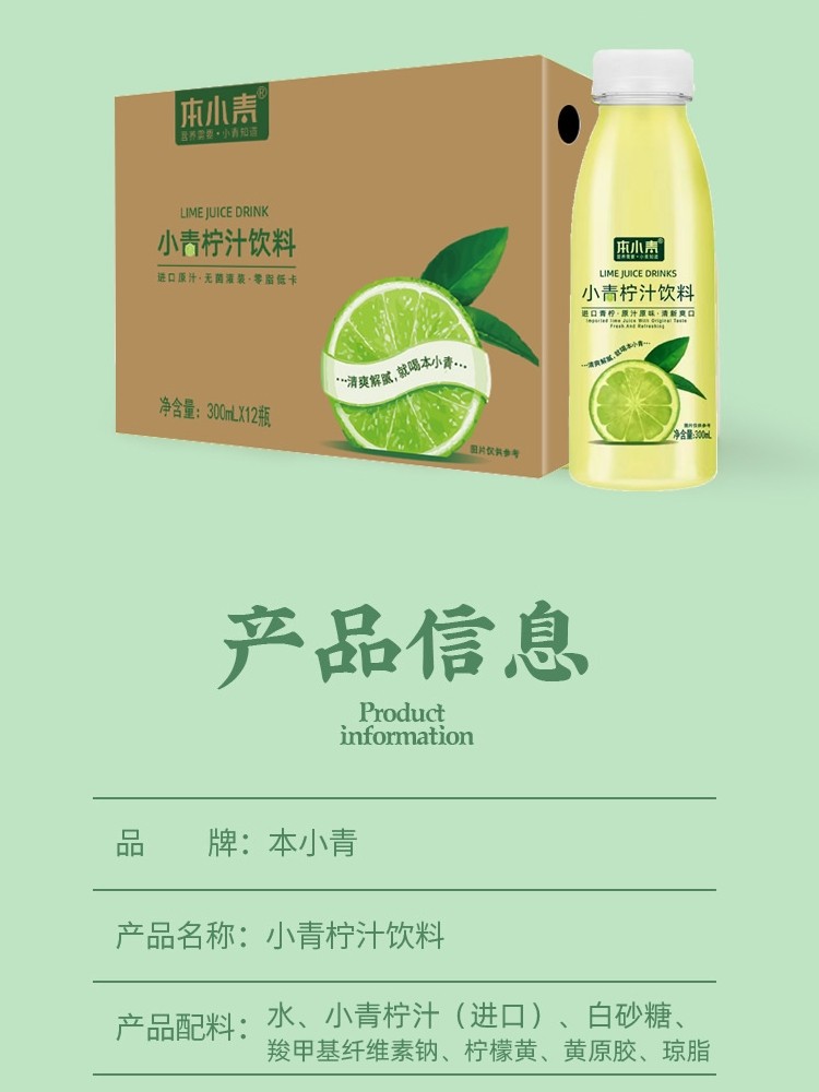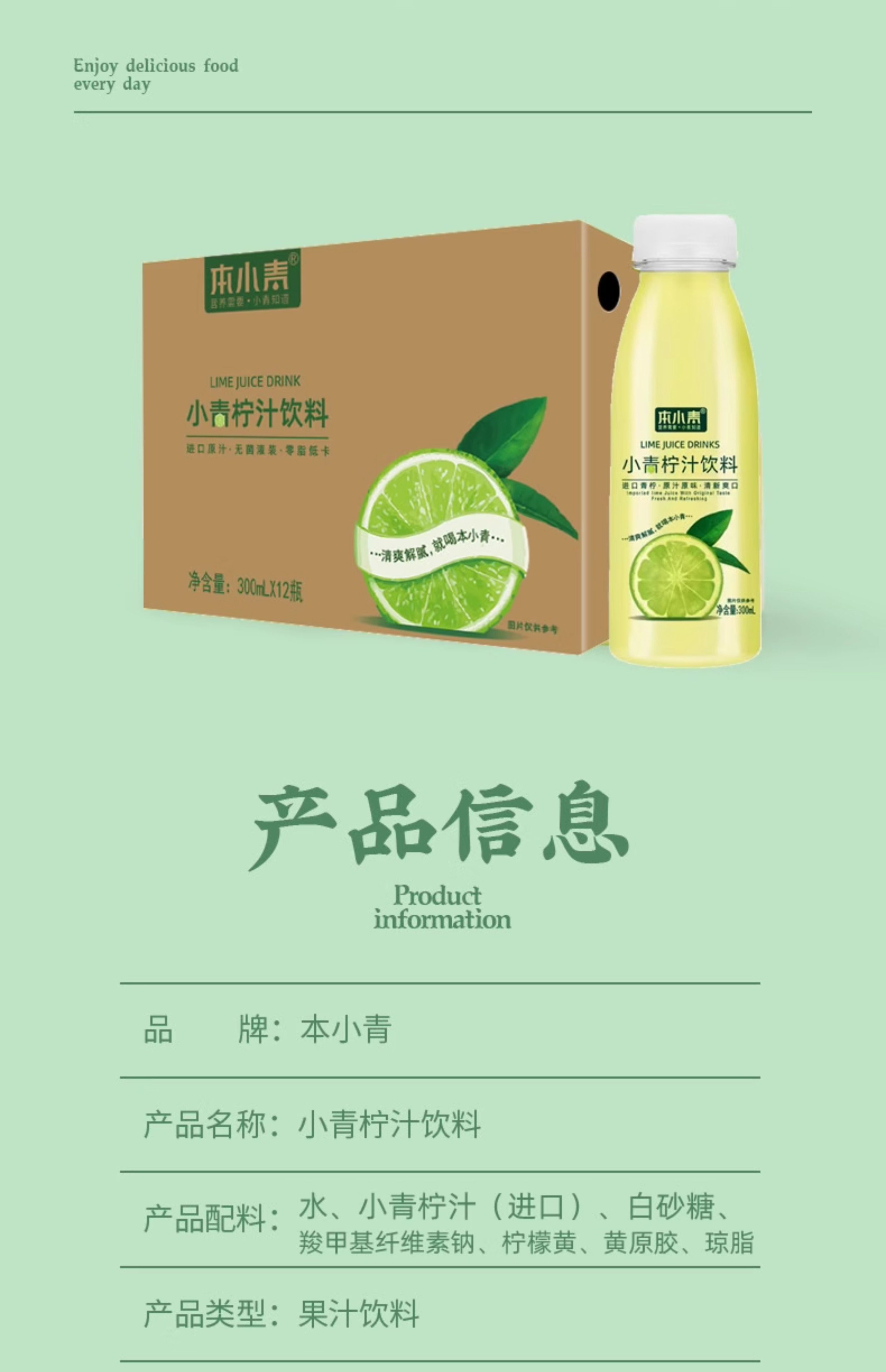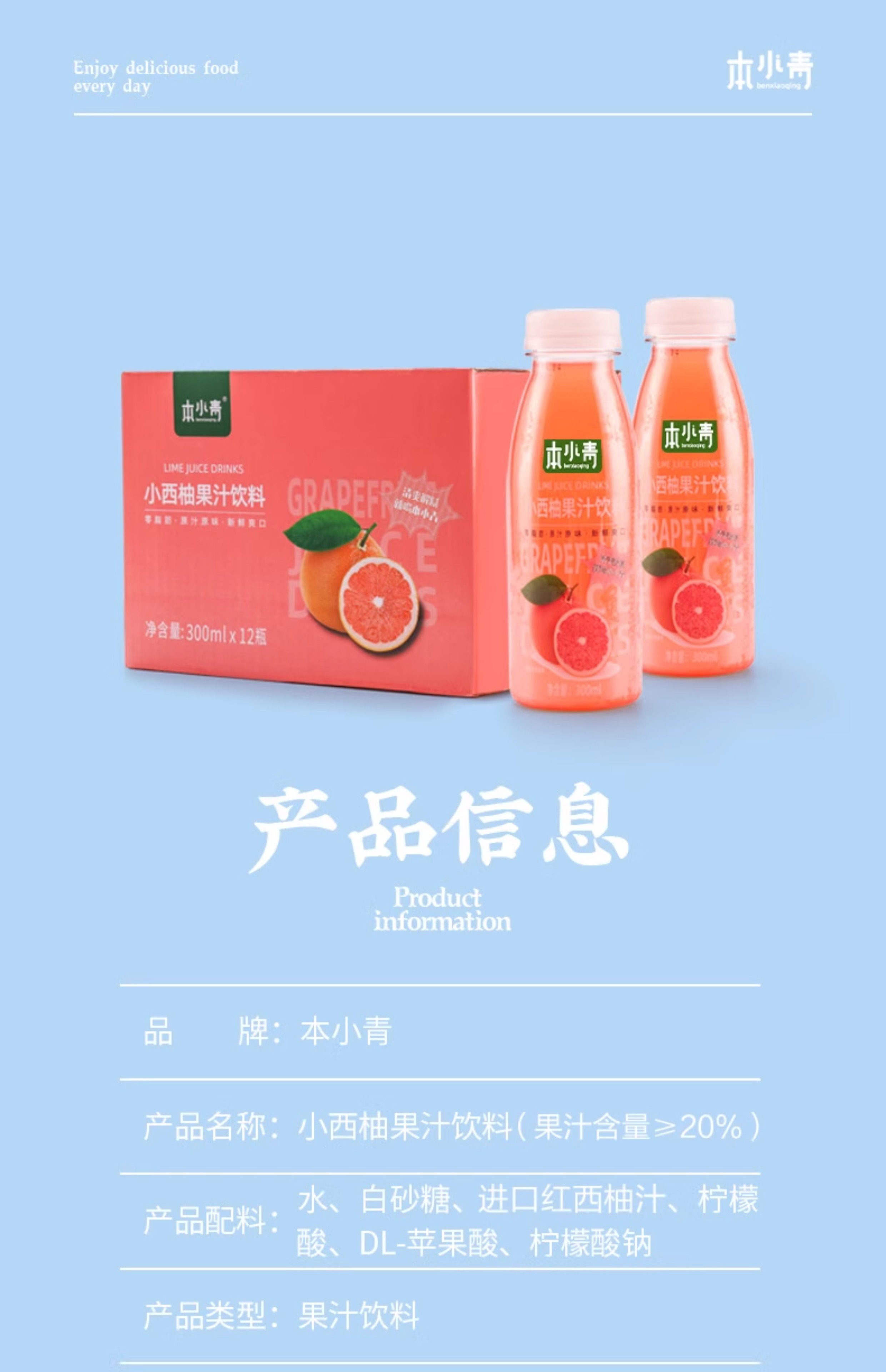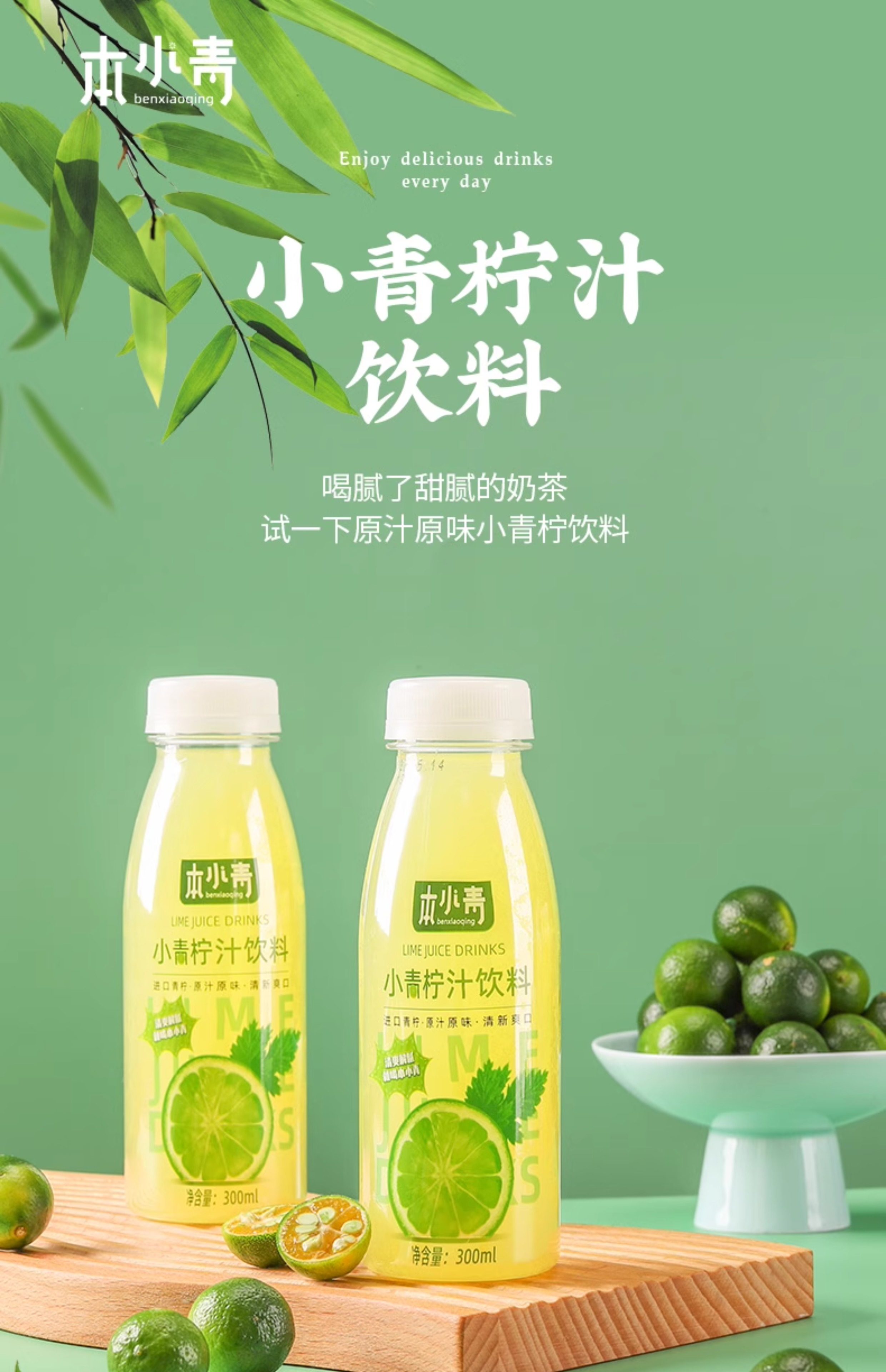 小青柠汁饮料柠檬汁新鲜进口维C果汁清爽解腻网红饮品西柚汁300ml