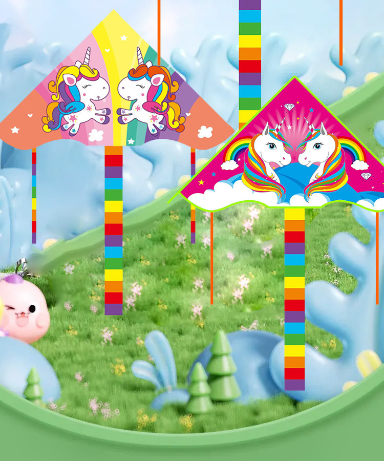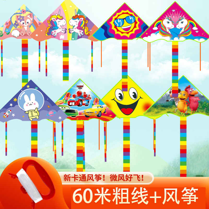 儿童风筝批发卡通新款风筝轮线地摊市场弯边小三角彩色易飞潍坊
