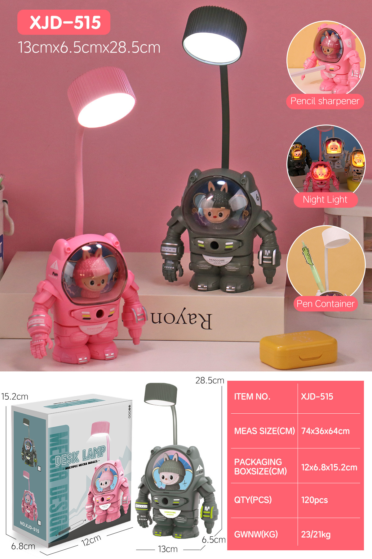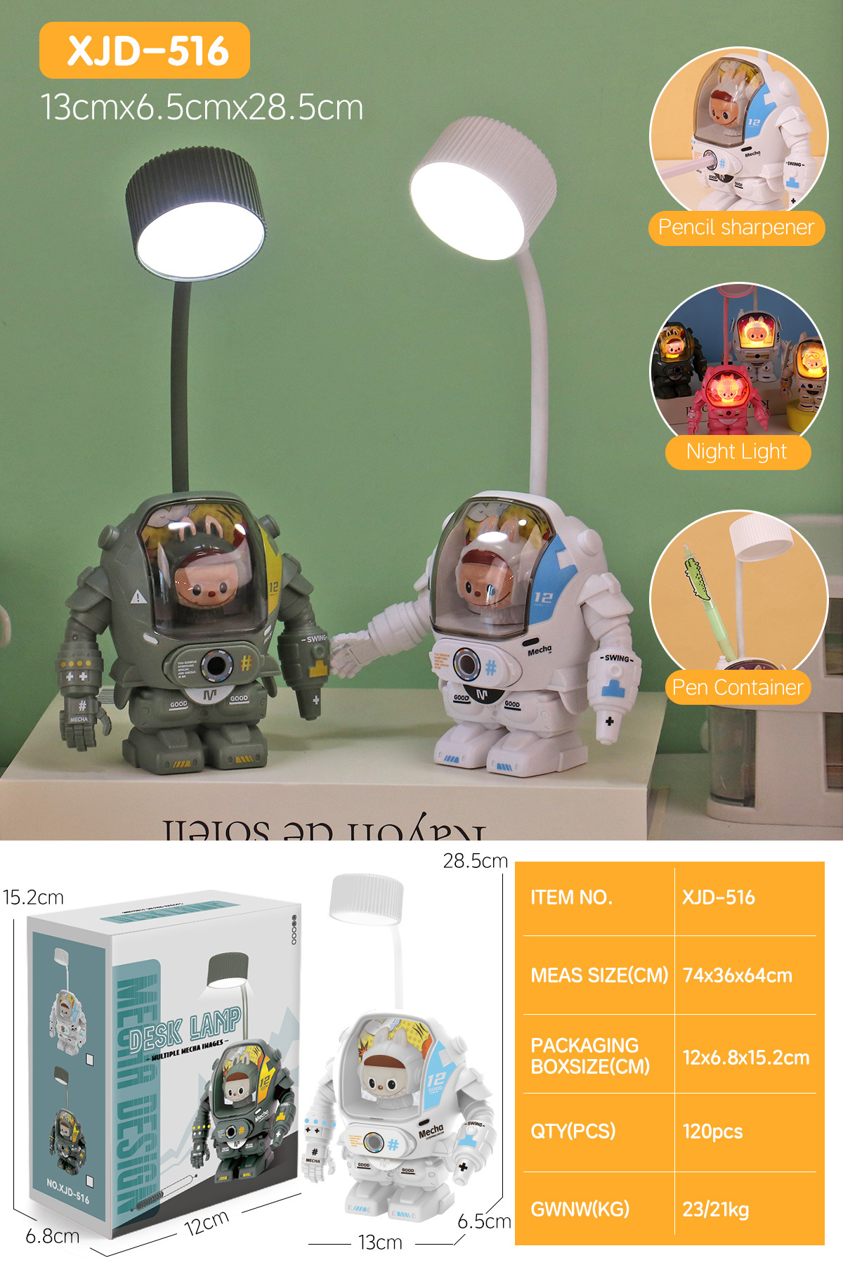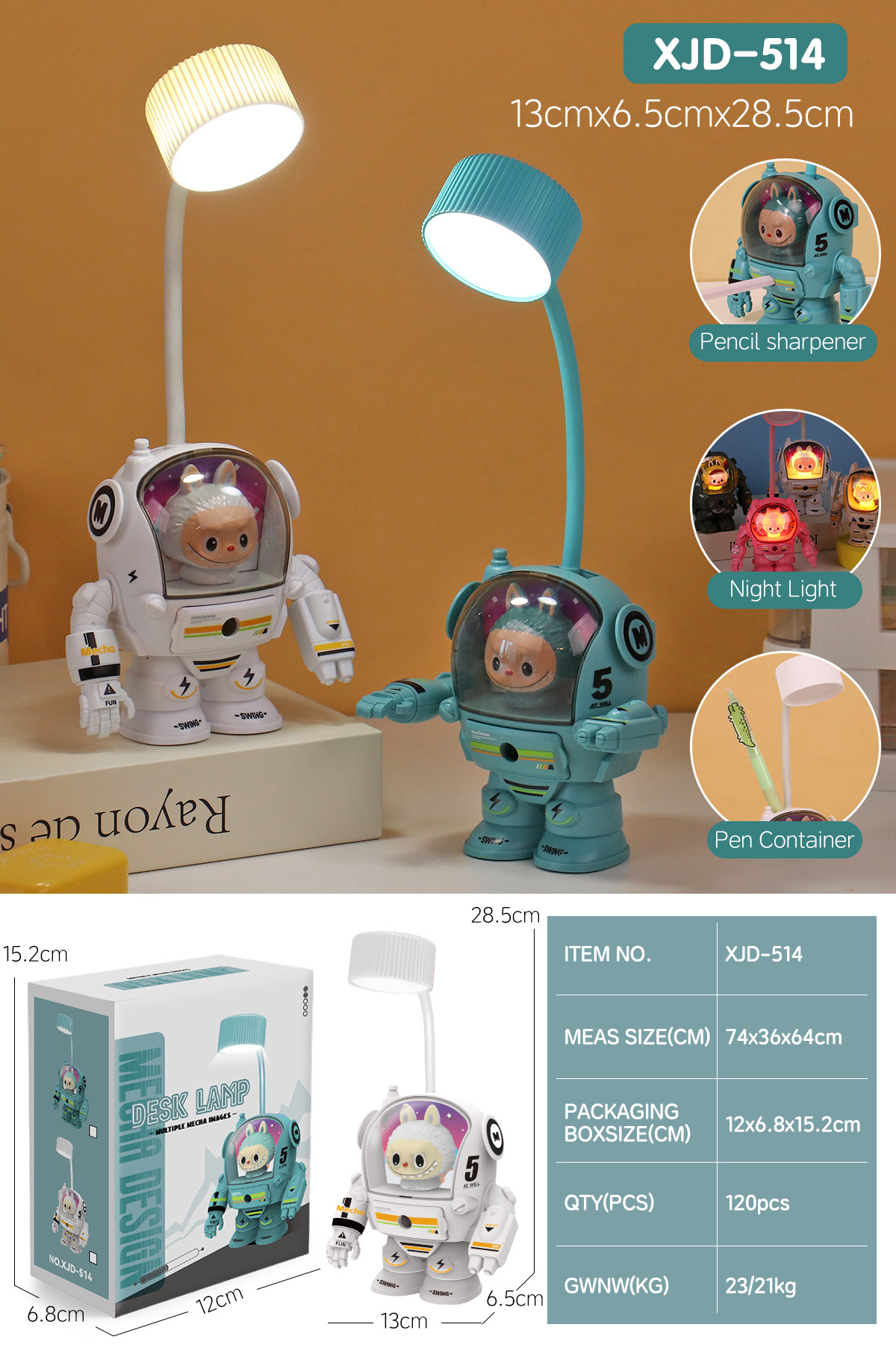 外贸新款卡通机器人台灯USB充电便携式LED桌面带削笔刀小台灯摆件
