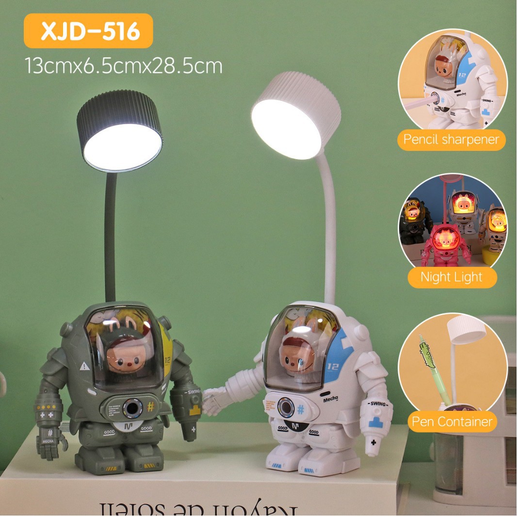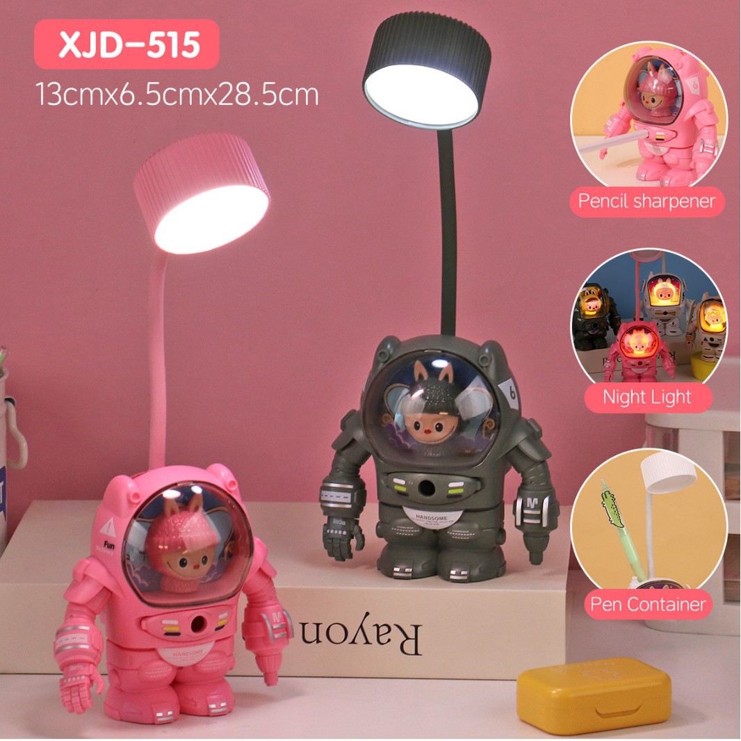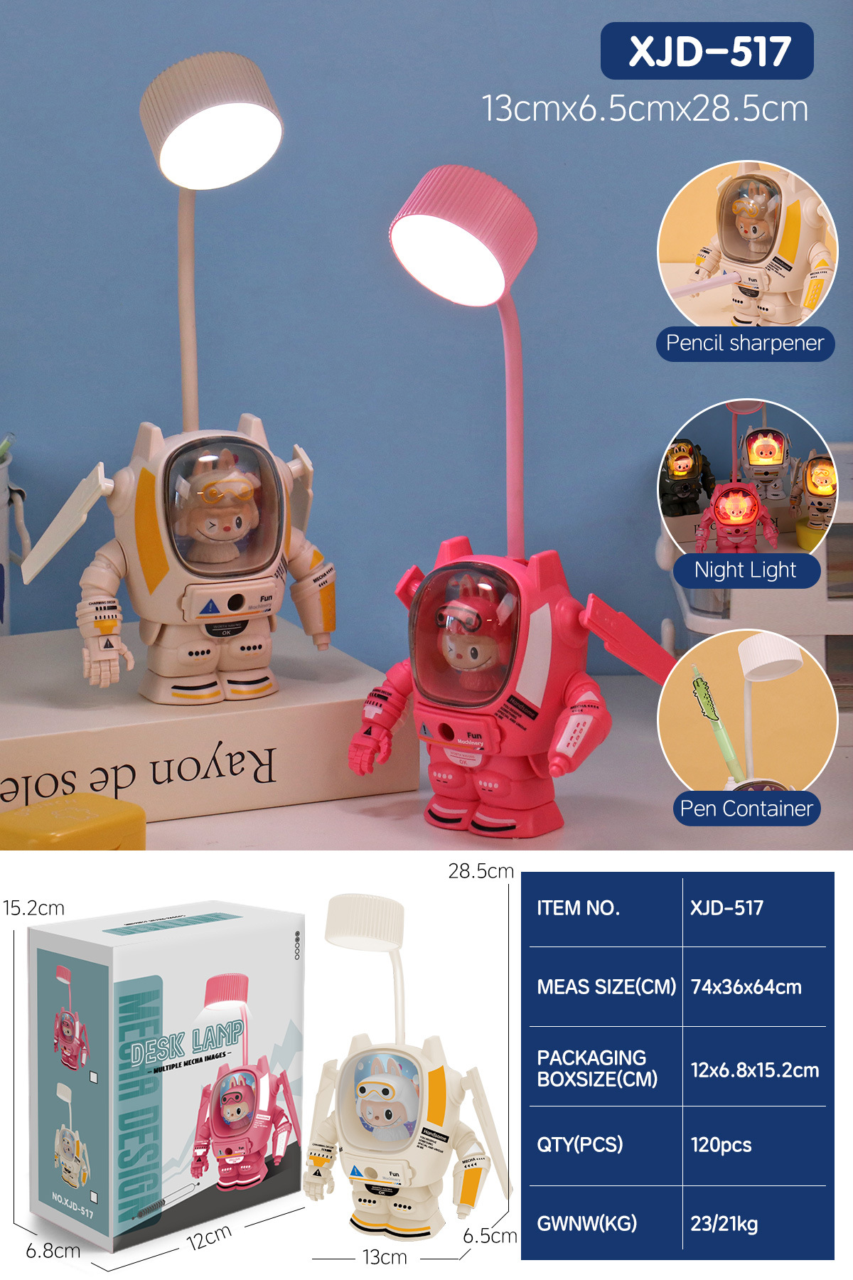 外贸新款卡通机器人台灯USB充电便携式LED桌面带削笔刀小台灯摆件