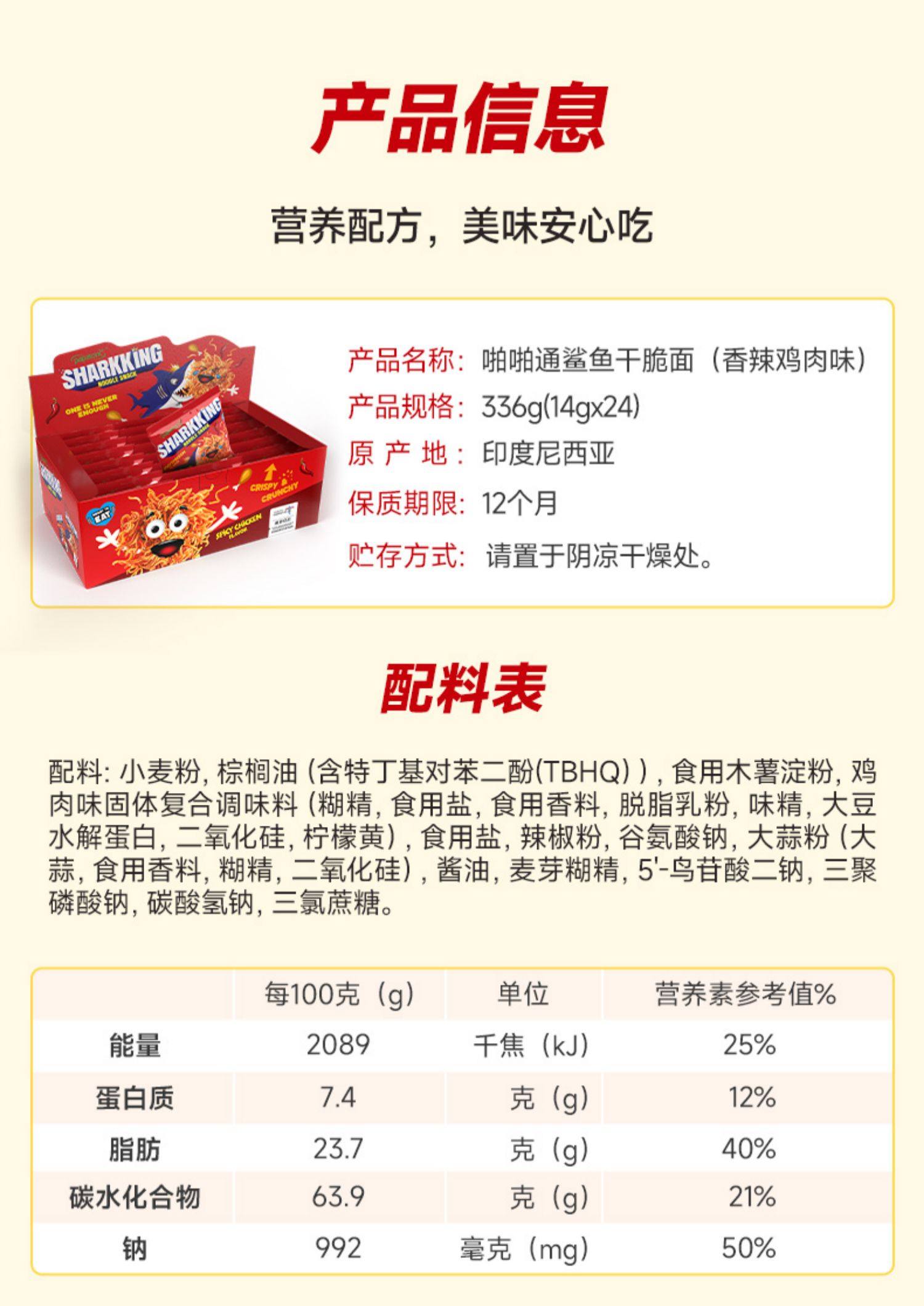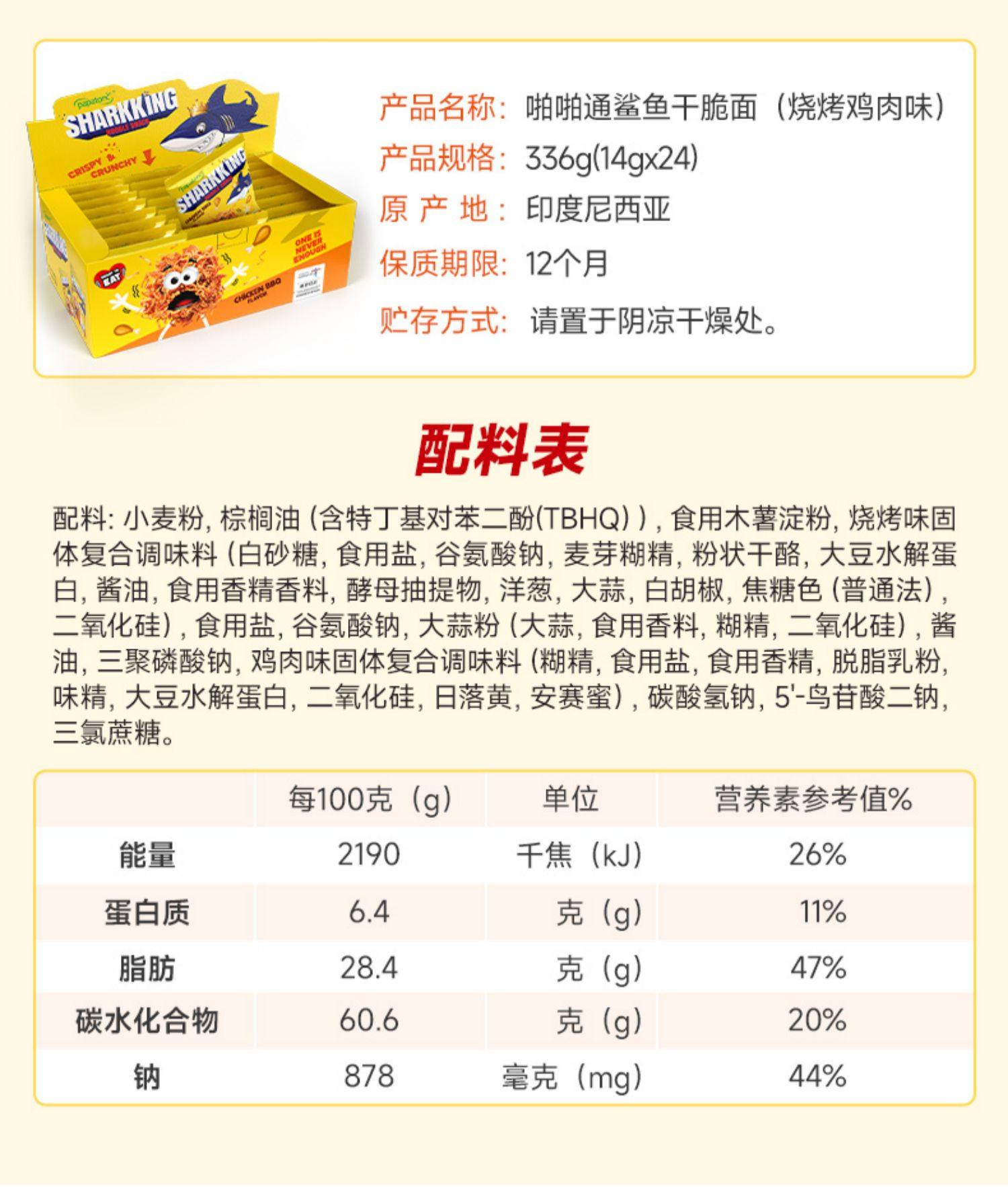 啪啪通鲨鱼面小鸡干脆面休闲网红零食儿童干吃面整箱装