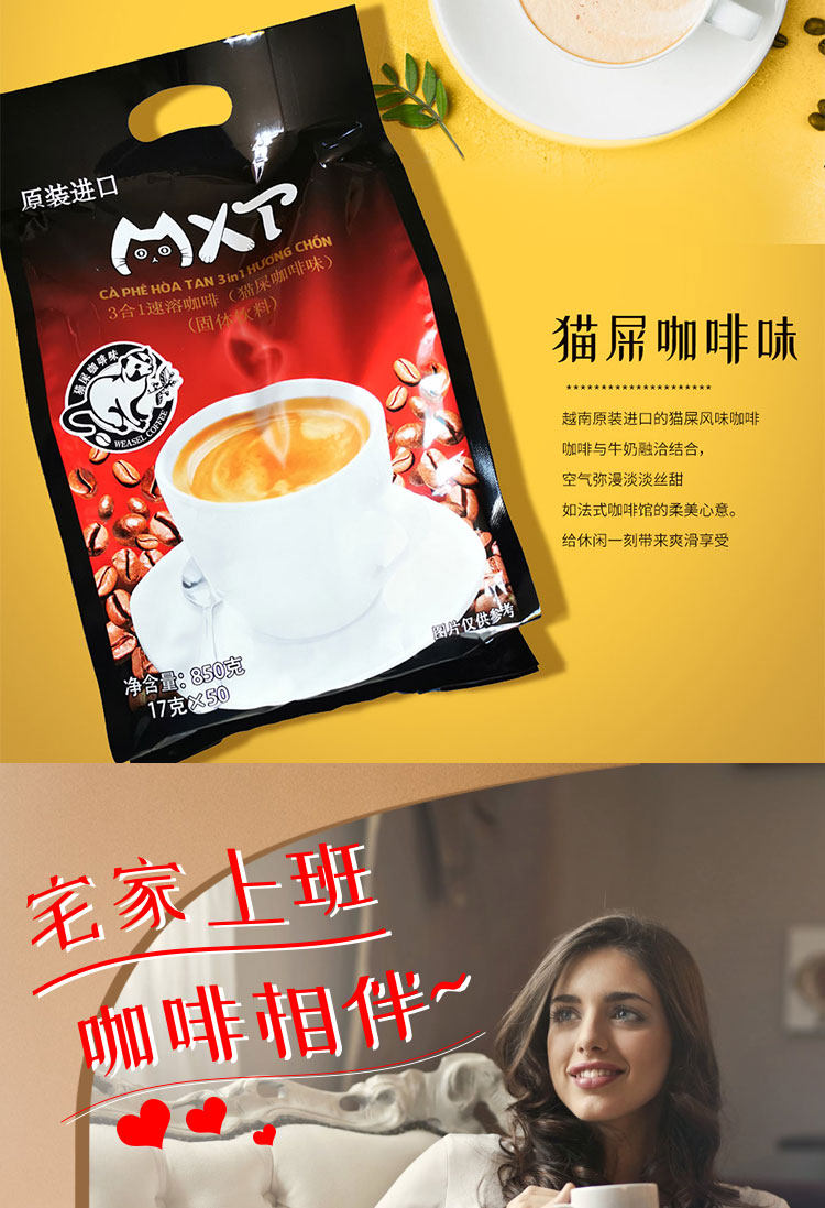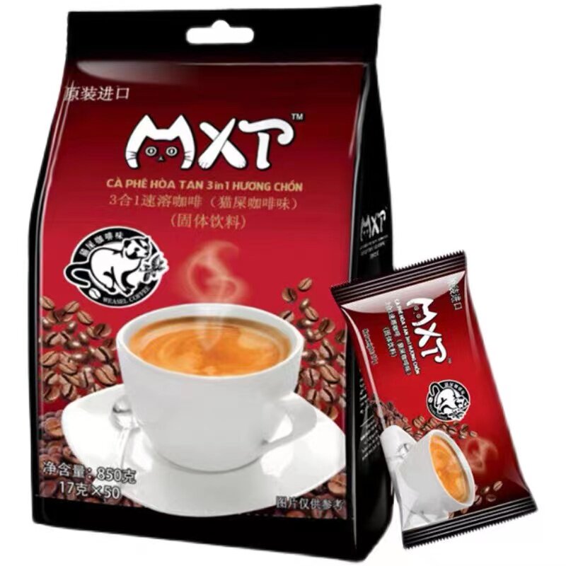 越南原装进口MXT猫屎咖啡味特浓三合一速溶粉850g/50小条袋装特产