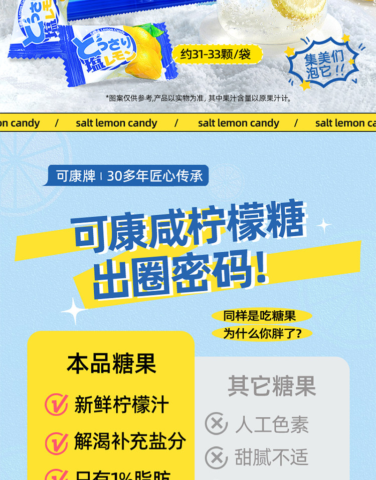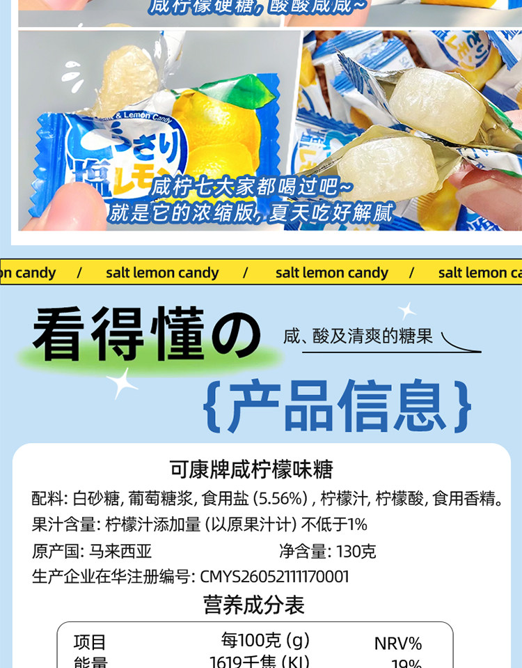 可康咸柠檬糖马来西亚进口糖果海盐薄荷糖硬糖多口味喜糖休闲零食